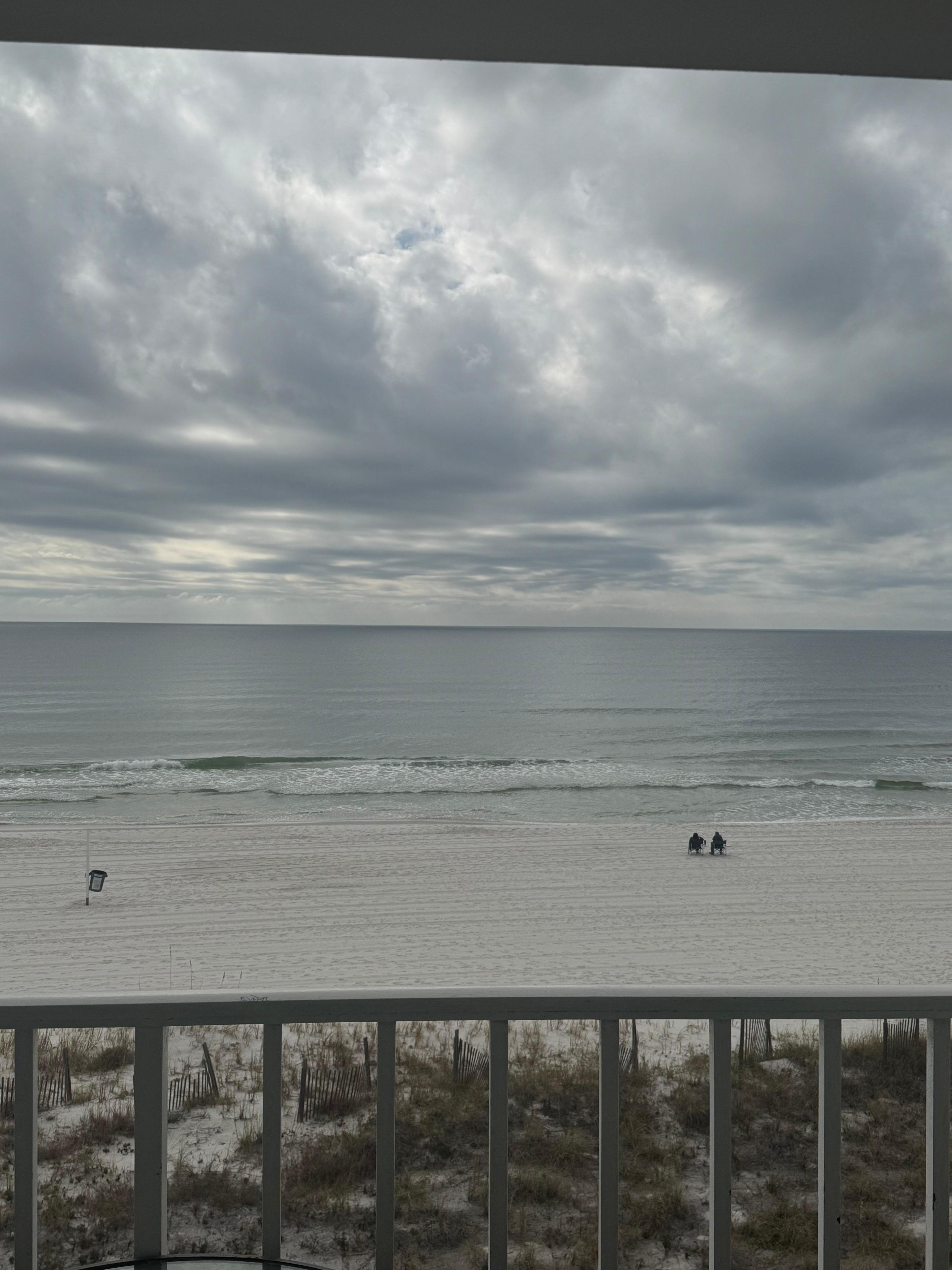 The living room has a floor to ceiling sliding glass door showing a stunning view of the sugar sand beach and sparkling blue waves below. From the balcony you will enjoy watching the activities on the beach, the red sunset or taking a nap listening to the methodical rolling of waves against the shore.