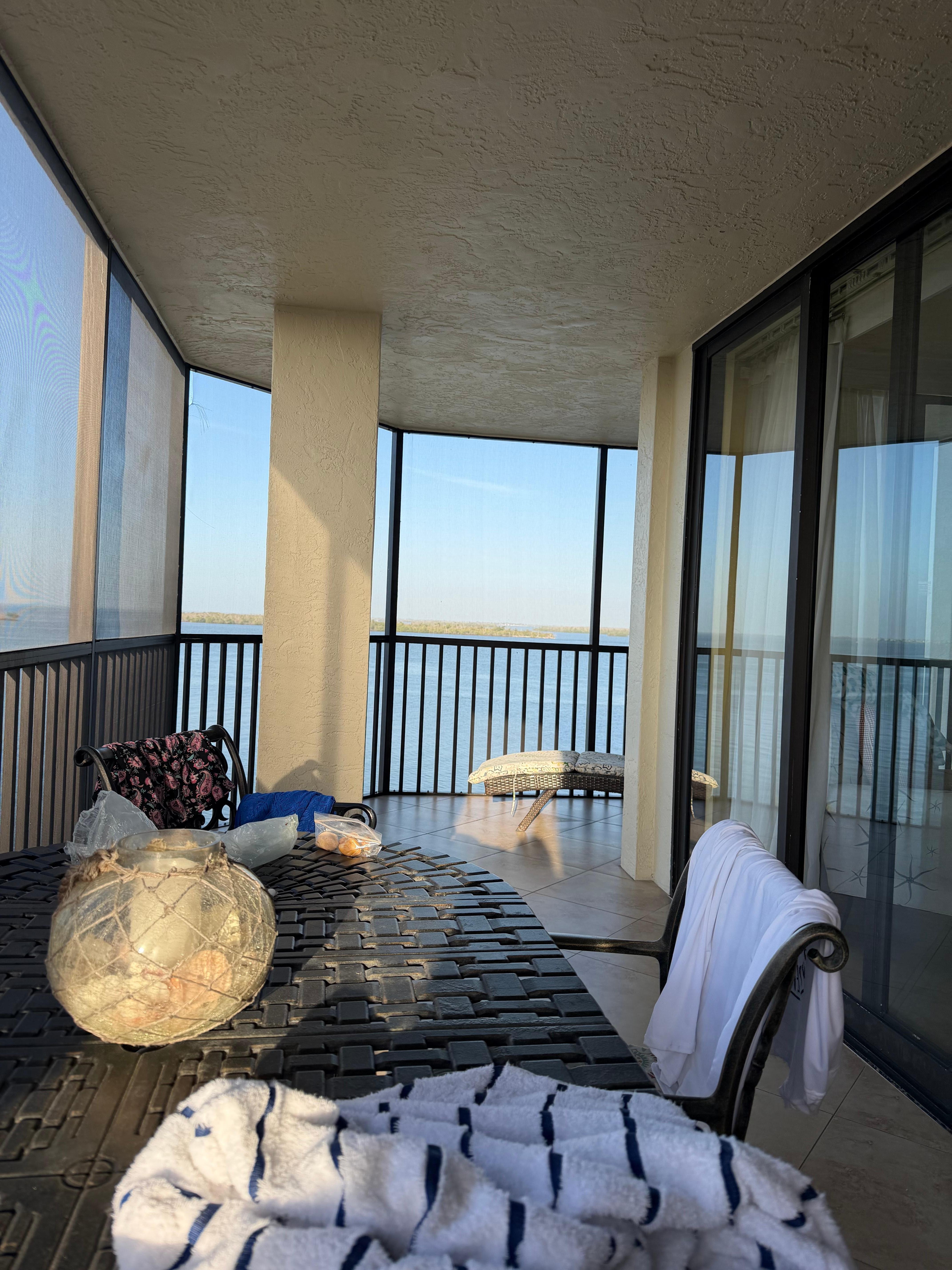 Watch the dolphins and enjoy romantic sunsets over San Carlos Bay from this 5th floor South/West corner condo and spacious L-shaped wrap around lanai/terrace