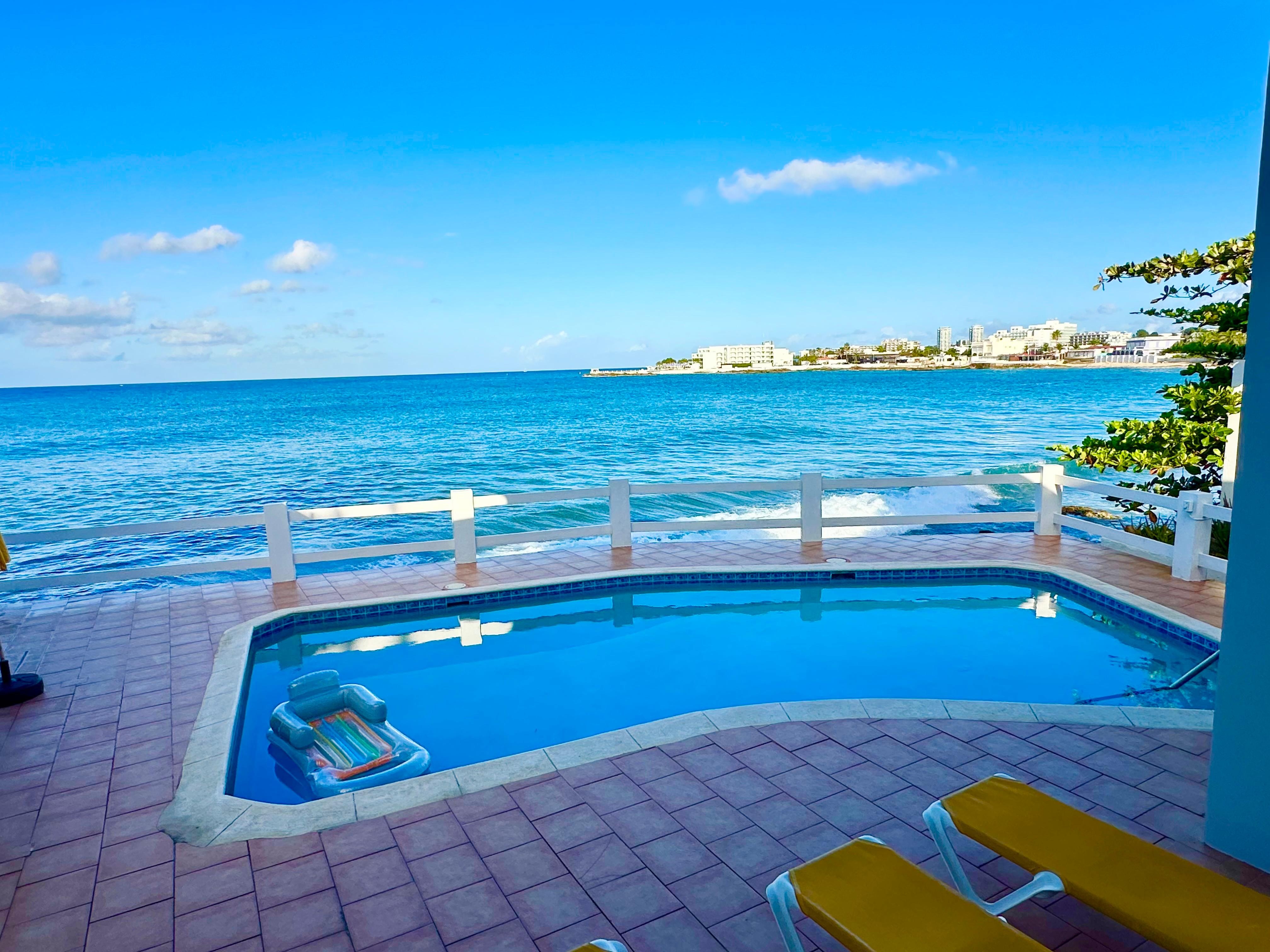 La Casita is an exceptional 3-bedroom, 3-bathroom private home located on the oceanfront. This villa is unique among St. Maarten rentals. It features a large pool directly on the ocean, open sundeck surrounding the pool and facing the ocean, outdoor covered eating area, spectacular sunsets, calming ocean waves, gourmet kitchen, and tropical gardens all in a quiet and private setting.