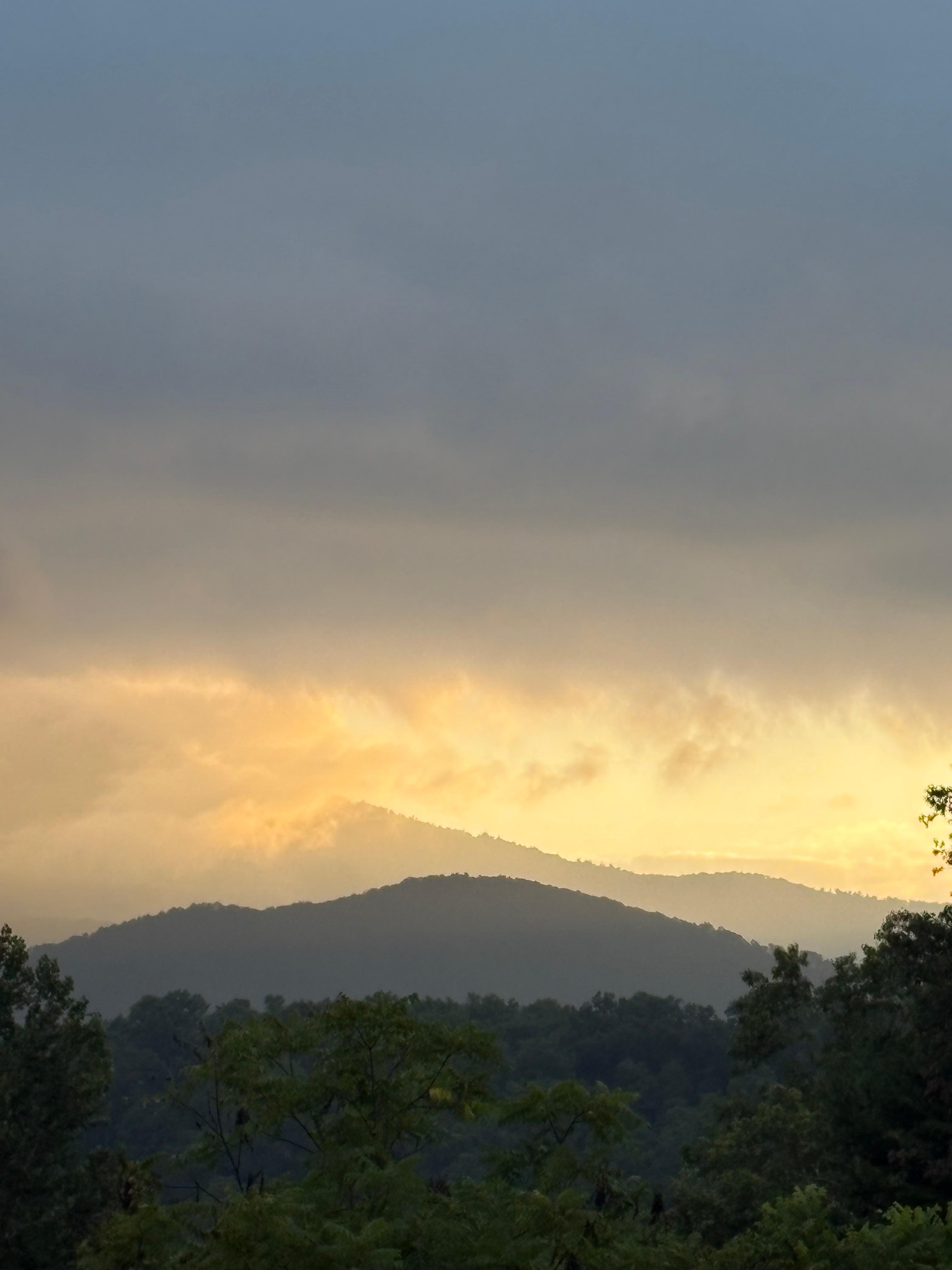 Late on a summer day you watched as the shaded green hues of evening drew their veil over the valley and the setting sun highlighted distant Celo Knob. You could hear the bullfrog call to the fireflies down by the pond where the old mare had, after a last long drink, headed for a barn far off. With the windows open you had to draw the covers up to your chin during the night. In the morning you wandered down to the rivers edge with your cup of coffee in hand. As you approached, the trout scattered. Puppy couldn't resist the temptation and got thoroughly wet. The mist on the river began to burn off as the sun climbed higher in the sky. No TV tonight, instead you'll have bonfire down by the river. In no hurry, you ambled back up the driveway past acres of summer blooms and lawn, thinking "I'm glad I don't have to mow". Instead, you spent the afternoon floating in an old inner-tube down the river all the way to Patience Park, someone was there to meet you and give you a ride home.