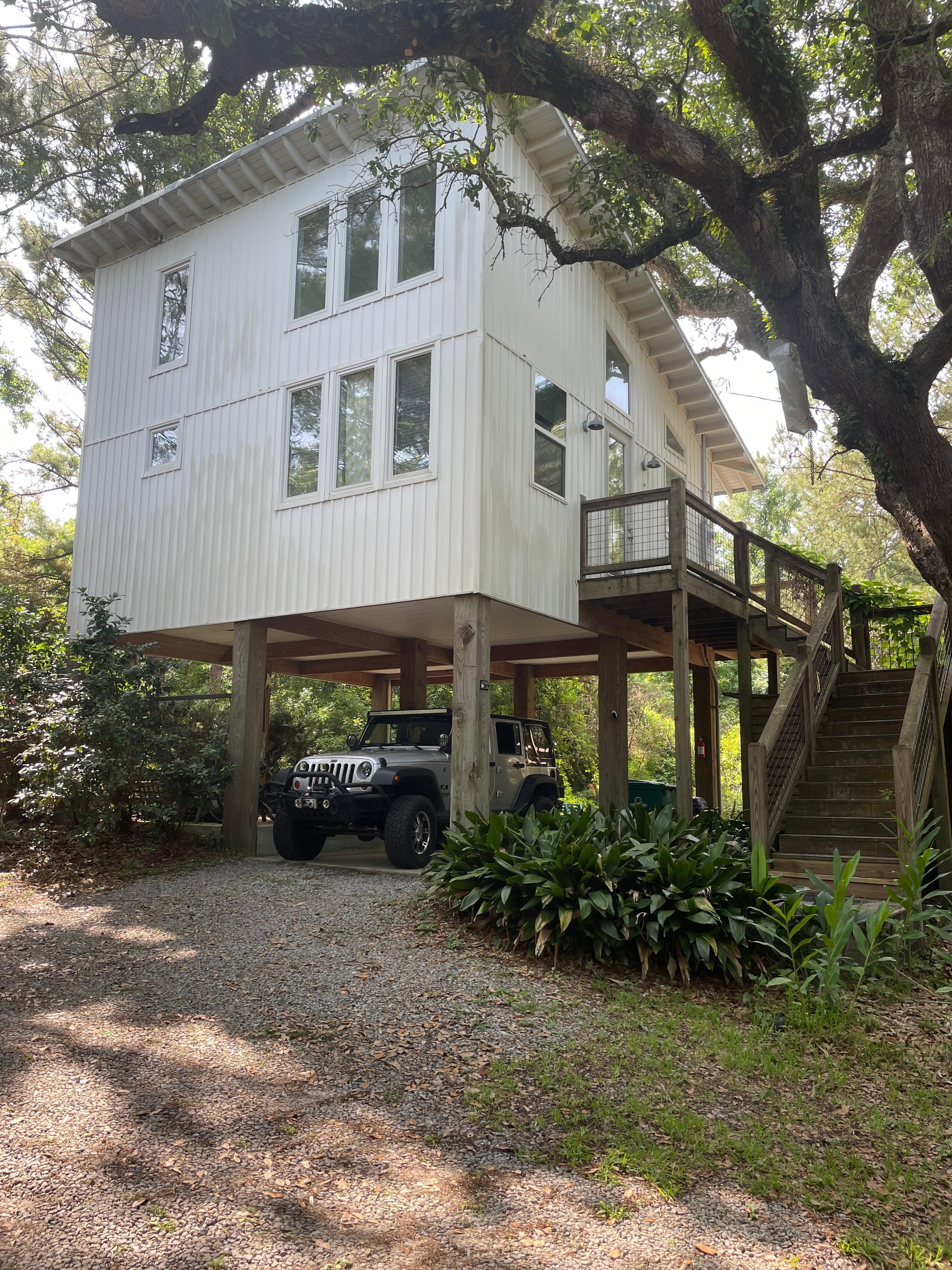 Nestled in a live oak, this one bedroom/one bath home is perfect for a "couples getaway" on a quiet wooded lot only 2 blocks from the beach. 15' in the air and surrounded by windows, you'll see birds, butterflies, and hummingbirds as they sing and feed on the nectar in the garden below! The beach is protected by barrier islands and fed by the Jordan River so it is nutrient rich (great for fishing and birding) and much more like a bay. Our garden is a work in progress with native longleaf pines, coastal prairie field, and various herbs for cocktails. You'll be relaxing in the summer breeze in no time! Please note this an ADULT ONLY (2 adults max) and absolutely NO PETS due to severe allergies and our effort to maintain the natural wildlife which you rarely see in an urban environment,. Not adhering to these rules will result in an automatic loss of deposit. Please confirm these when booking! Check IN 4pm - Check OUT NOON. We are happy to accommodate earlier/later if we can, but you will need prior approval.