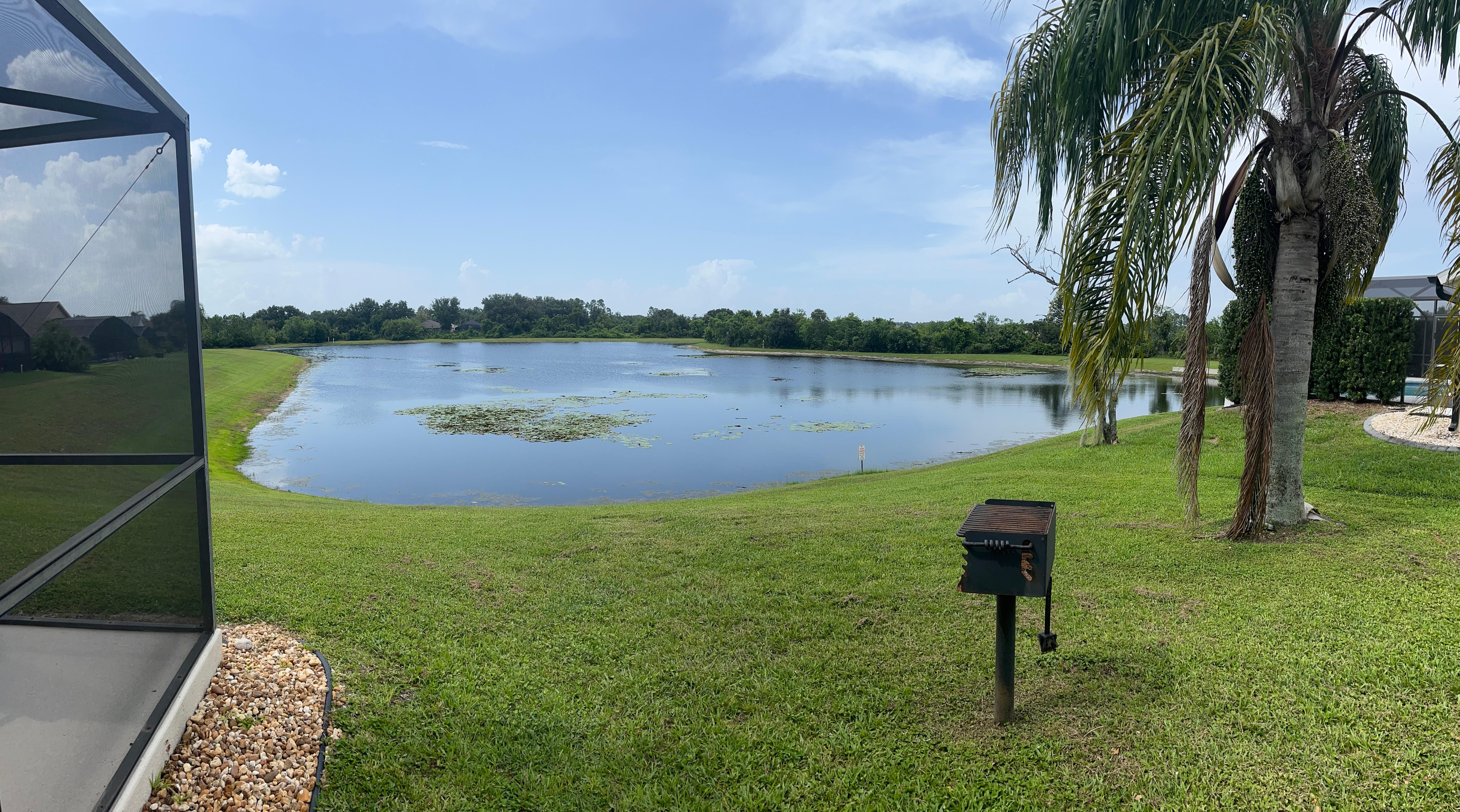 Outside, the professionally landscaped area with palm trees and other greenery overlooking the waterfront area add to the peaceful wildlife surroundings. The stunning sundeck area with a waterfall built into the pool area and covered patio with quality tables, sun loungers and chairs all provide ample opportunity to enjoy the Florida climate. NEW extended lanai area allows for full enjoyment of the lake during the entire day and evening.