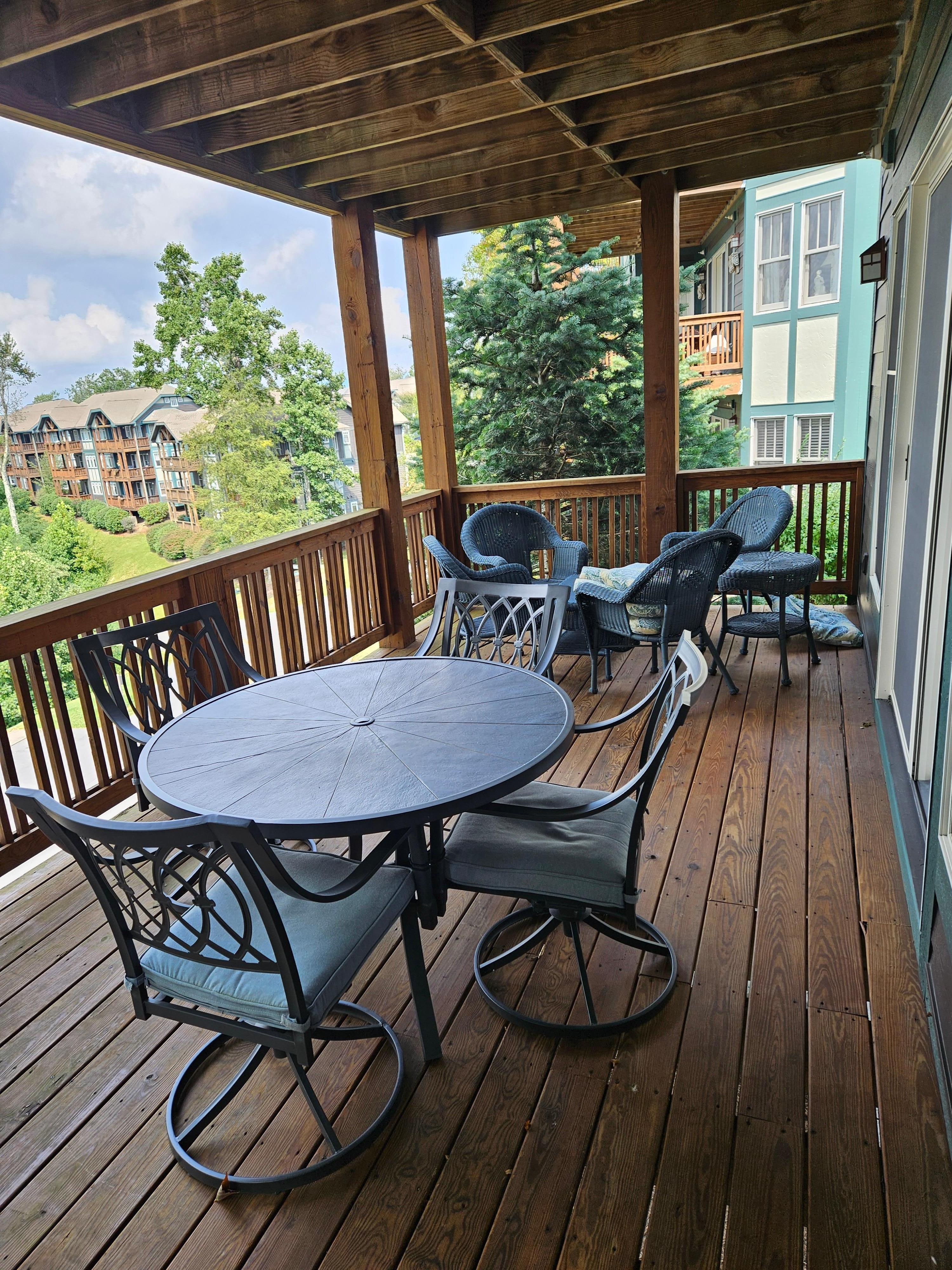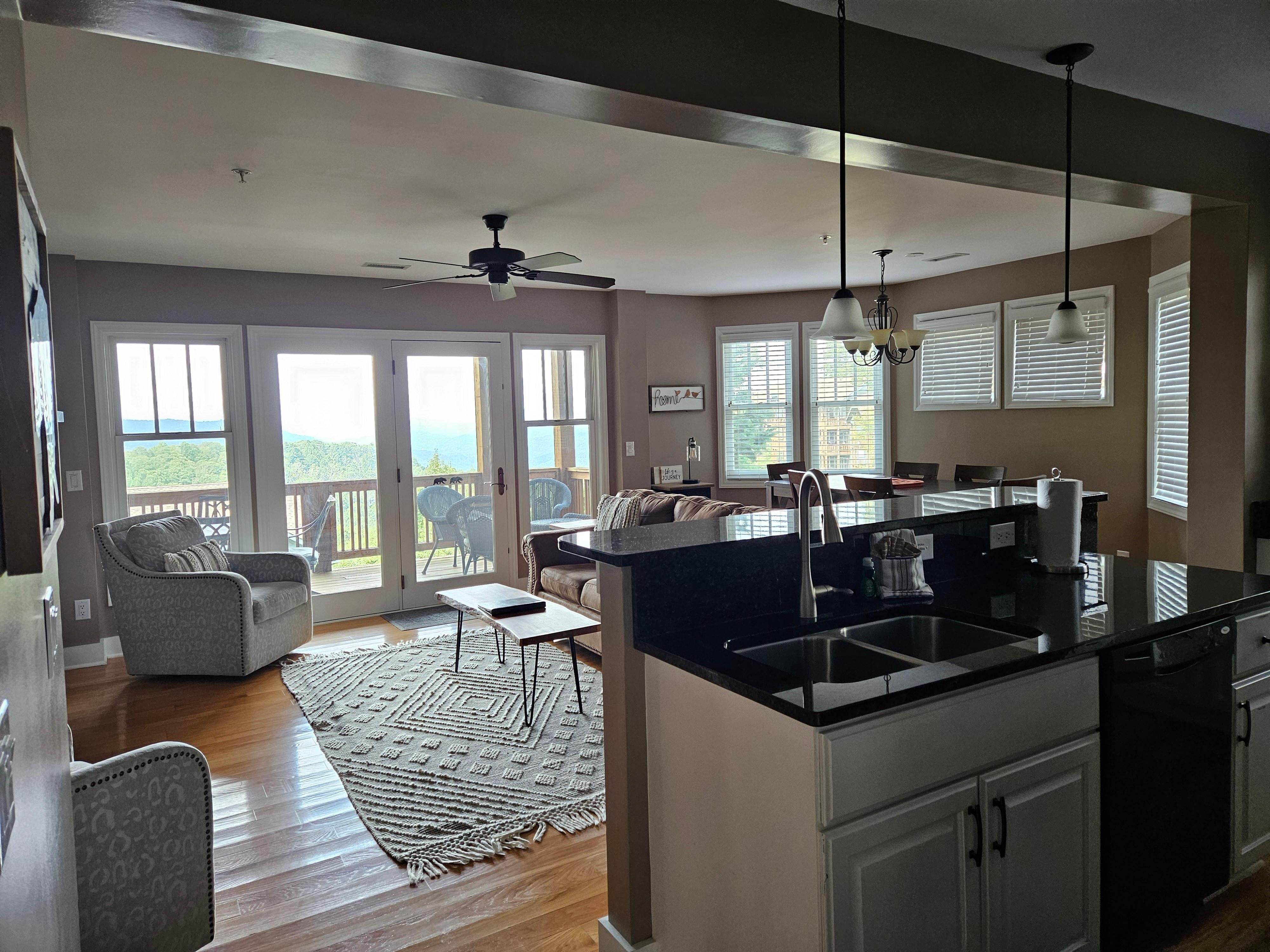 Description: Located in the beautiful development of Echota on the Ridge, this two-bedroom, two-bathroom downstairs (stair access only) condo is perfect for your next vacation. This condo is fully furnished with everything you would need for a long retreat or a short weekend getaway. The kitchen is well equipped to prepare meals and the living room is inviting with a gas log fireplace and amazing mountain views. Curl up, get cozy and read a book, watch TV or take a nap…. the choice is yours! Guests of this unit have access to the deck from the living room or primary bedroom where they can breathe in fresh mountain air while gazing at the mountains and listening to the sounds of nature. Enjoy a short mountain getaway to relax or an extended stay and explore all the High Country has to offer.