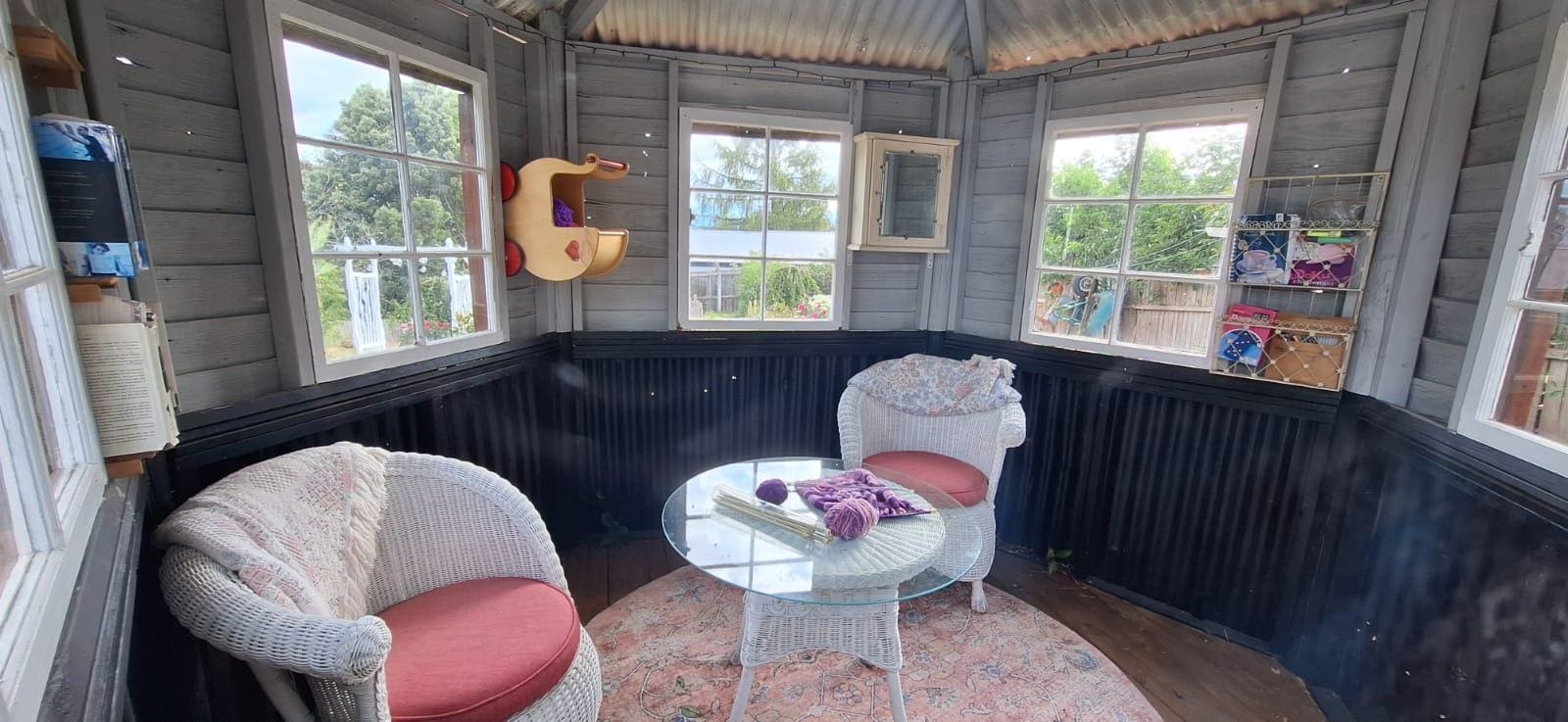 The back deck is enclosed with massage chair, TV, Children's play area, exercise bike and views of the Great Western Tiers.