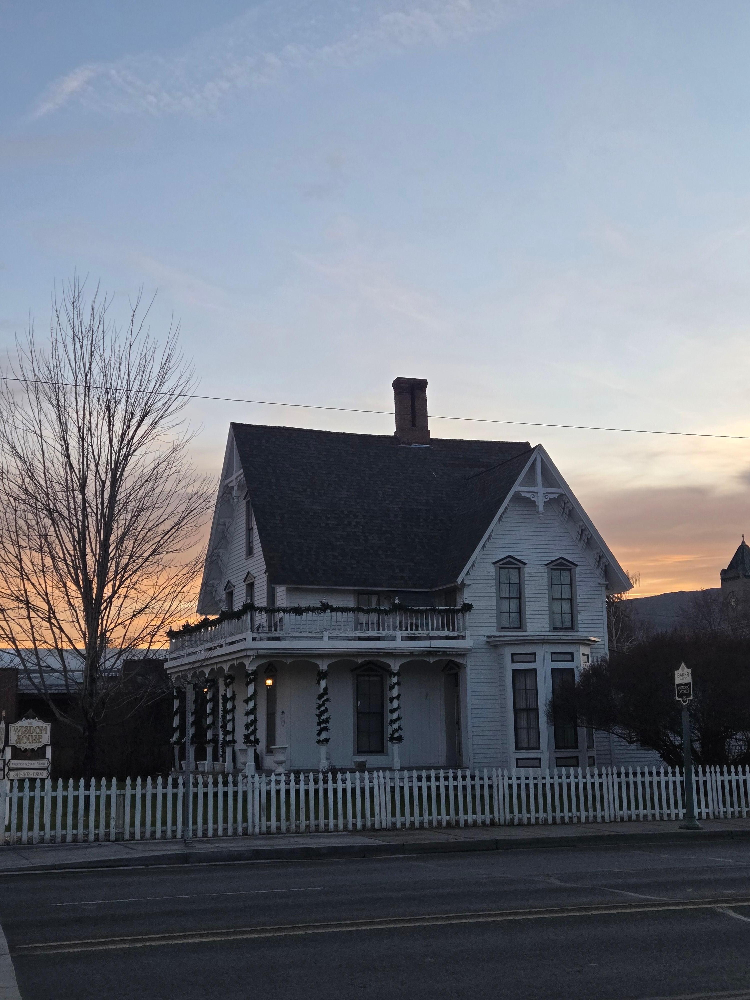 The perfect getaway in this restored Historic Home. The Wisdom House is the oldest home in Baker City, circa 1878. It is in the Heart of Downtown Historic District just walking distance to shops, restaurants, museums, parks and so much more. This Historic Home features 4 bedrooms, 2 baths, dining room, eat-in kitchen breakfast area and loft area. The upstairs 2nd floor bedrooms open up onto a Balcony overlooking Downtown Baker City. The 3rd floor is an open floor with 4 twin beds and 3/4 bed. One bedroom is located on the first floor. The upstairs bathroom features a claw-foot bathtub and Plush bathrobes are provided for your comfort. This home has Central Air-conditioning for those hot days. Free Wireless Internet. Three flat screen televisions are provided for each of the 3 floors with Roku, DVD`s.