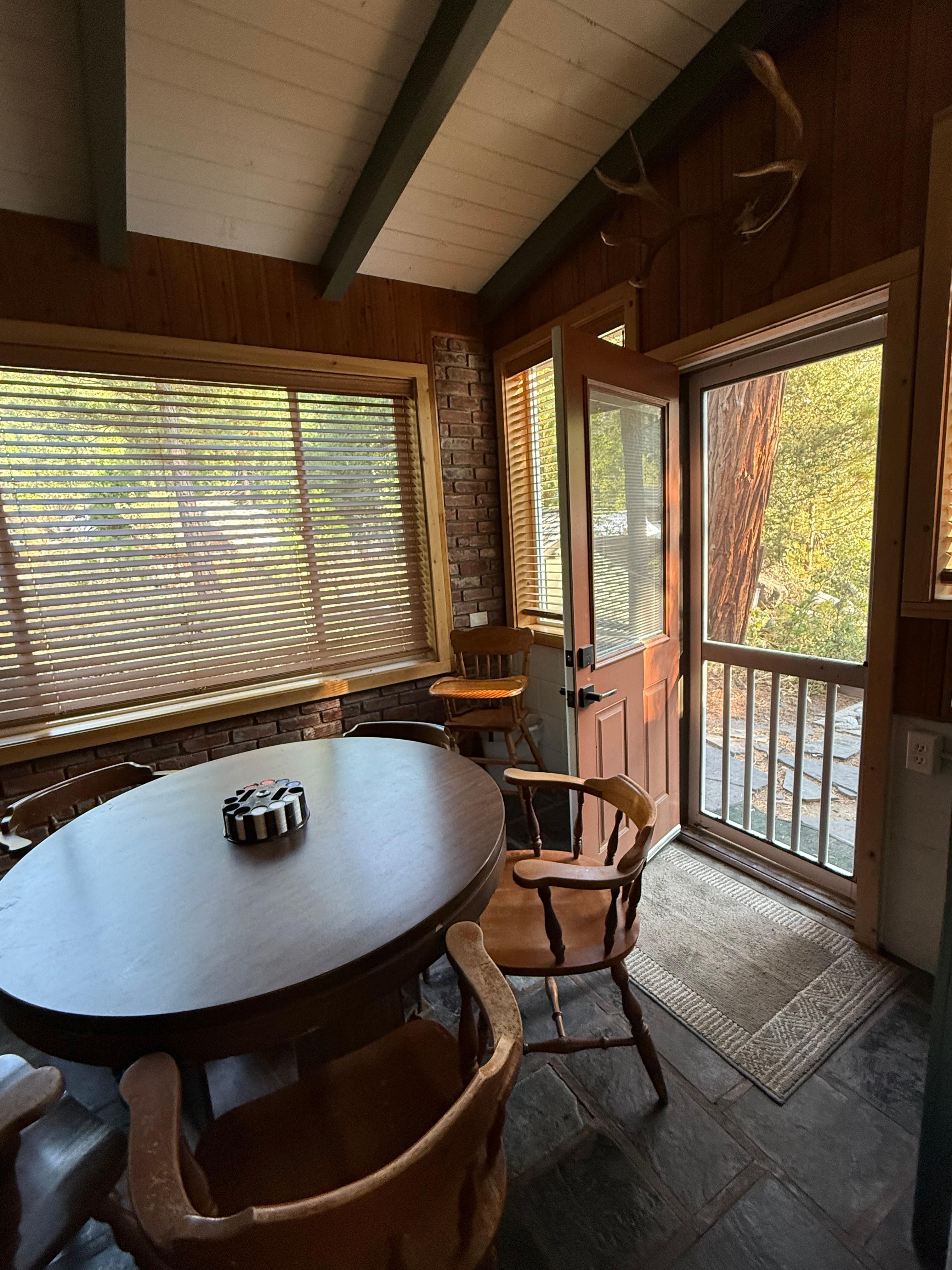 The Little Creek Cabin is a charming, 2 bedroom, 2 bathroom home that sleeps up to 9 guests. The fully equipped kitchen includes a dishwasher. The home also has a washer and dryer. The cabin also has Central heat and A/C. The family room has a fireplace (wood provided in season), satellite TV, Wifi, and plenty of seating, as well as a queen sofa sleeper. The bonus room has a second fireplace, a queen sofa sleeper, and a twin bed. The large, private deck has a gas BBQ and a covered area, perfect for grilling/dining under the stars. There is a bridge looking over a small creek that runs through the property. The back of the property backs up to an undeveloped Yosemite National forest, perfect for wildlife viewing and solitude. This home is * pet-friendly, maximum of 2 pets. "EV Charging Station available within five miles of the cabin"