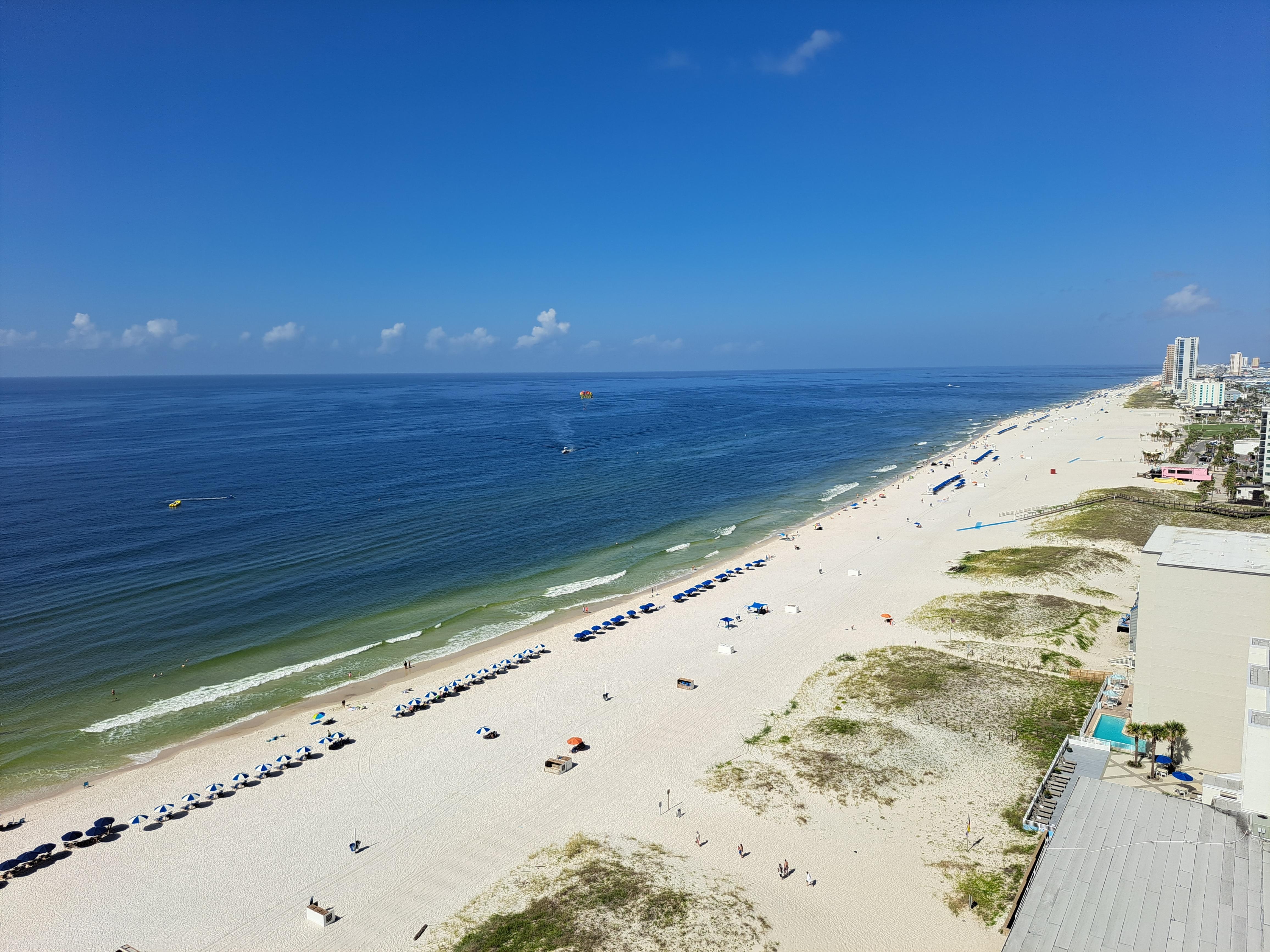 San Carlos Unit 1807 on the Beach in Gorgeous Gulf Shores, AL. This beautiful 3 bedroom and 3 bath San Carlos unit has a king bed in master, queen bed in guest, and a queen in other guest room. The sofa is also a queen sleeper. All bedrooms have flat screen tvs and views are direct beach front. San Carlos offers a large beach side pool as well as a sauna. You don't have to miss any workouts because the fully equipped fitness center overlooks the beach! Rental of wave runners, beach chairs and umbrellas are available with service provided directly in front of the condo! San Carlos has 1800 square foot of meeting space for rent with a fully equipped kitchen overlooking the Gulf of Mexico and is perfect for a beach wedding or family reunion. Don't miss out on the many recreational opportunities, including an outdoor pool, a spa tub, and a sauna. Additional amenities include complimentary wireless Internet access, a picnic area, and barbecue grills.