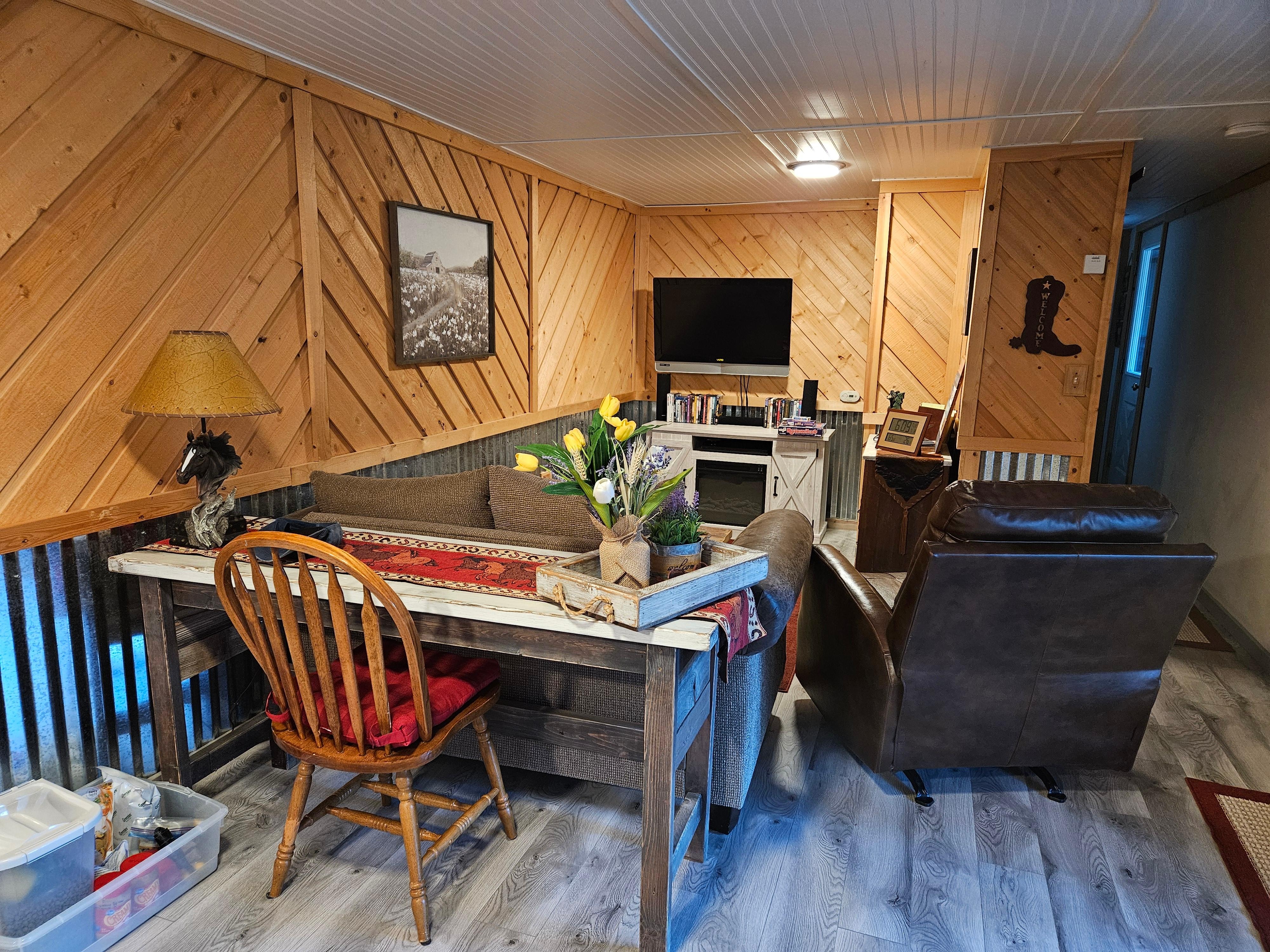 Come visit our "bunkhouse", a western style private cabin (attached but separate from our barn) on 20 acres bordering the National Forest, and only 5 minutes from town. We are a private horse boarding facility, and welcome riders who want to bring their own horses and explore the wonderful trails. Hikers, mountain bike riders, golfers, and fishermen, or just a couples get-a-way, will find their ideal settings just out the back door. Located halfway between Manitou Springs and Cripple Creek, Woodland Park is a delightful mountain community with great gift shops and restaurants. Our setting is quiet and convenient!