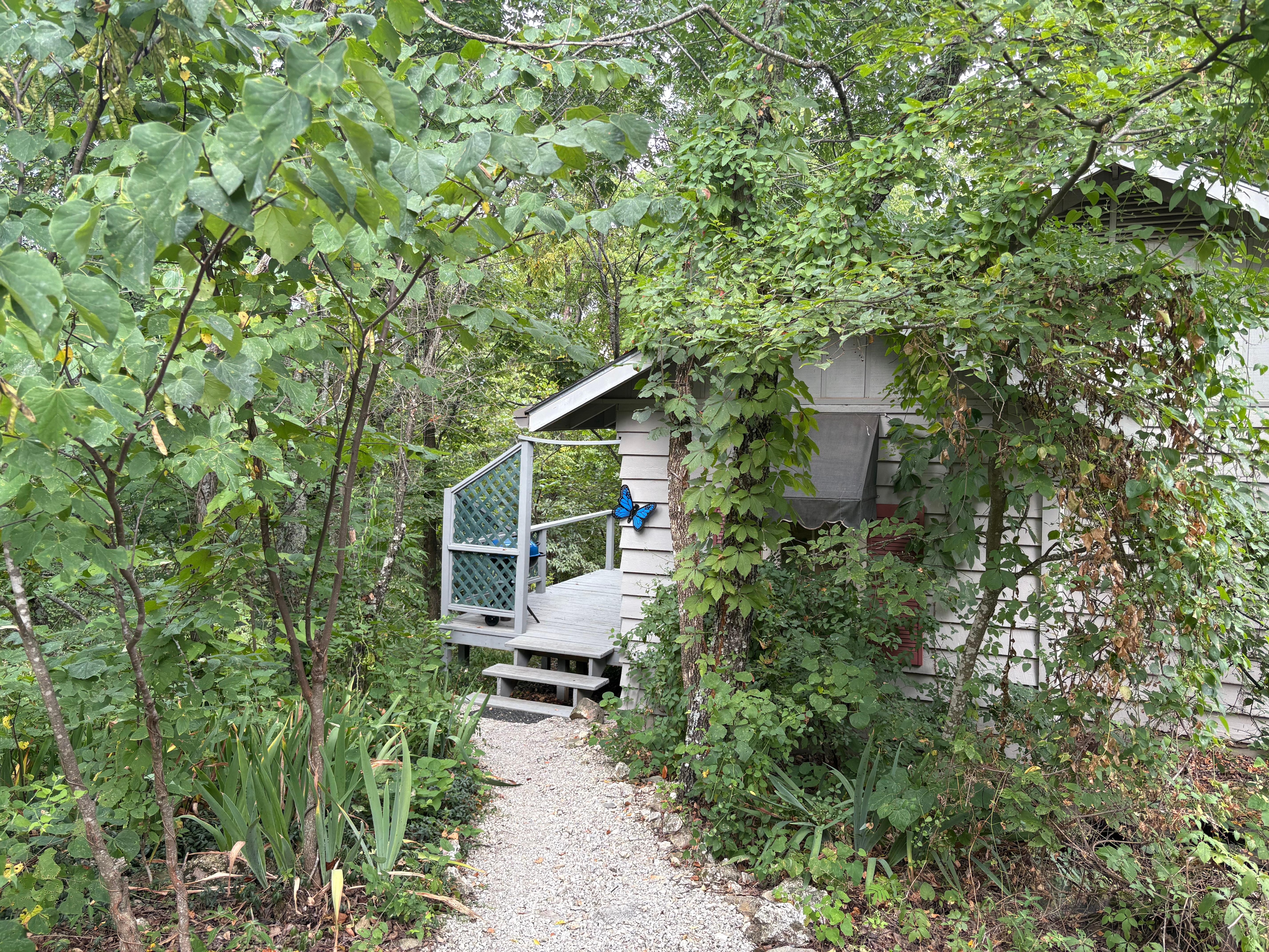 Garden of Eden - pleasures and delights... Follow your heart, just past the soft water sounds of the water garden, through the gated arch, down the little path to this country cottage. Small pained full glass front, vaulted ceiling of skylights invite the beauty of nature in, while you relax in the indoor waterfall jacuzzi (** NO OUTDOOR HOT-TUB ON PROPERTY **) or dream of the rainforest in your rain shower for 2! Lull away the hours in the cozy "mini loft" library... No forbidden fruit here!