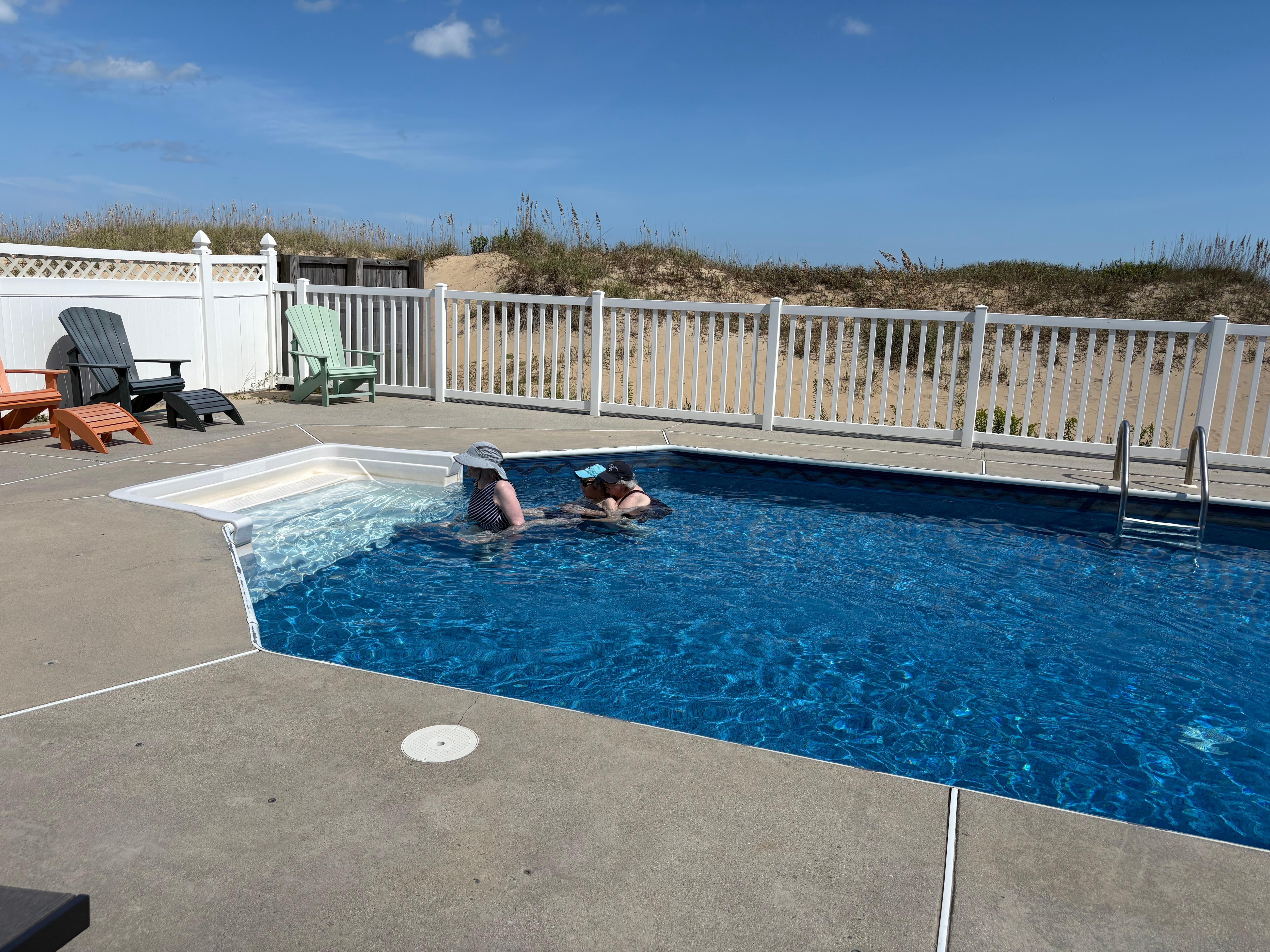 Two separate family room areas inside provide different areas for gathering, dolphin watching, or enjoying coffee or happy hour overlooking the ocean. Be sure to bring a basketball along if your group wants to utilize the two basketball hoops on either end of driveway for a full court basketball game. Nicely located and perfect for walking to the market, ice cream, and Sandbridge Island restaurant. Everyone needs a new “Pointe of View!”