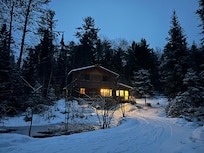 Build a fire in the woodstove on the 3-season screened porch. There are huge windows overlooking the forest and spring.