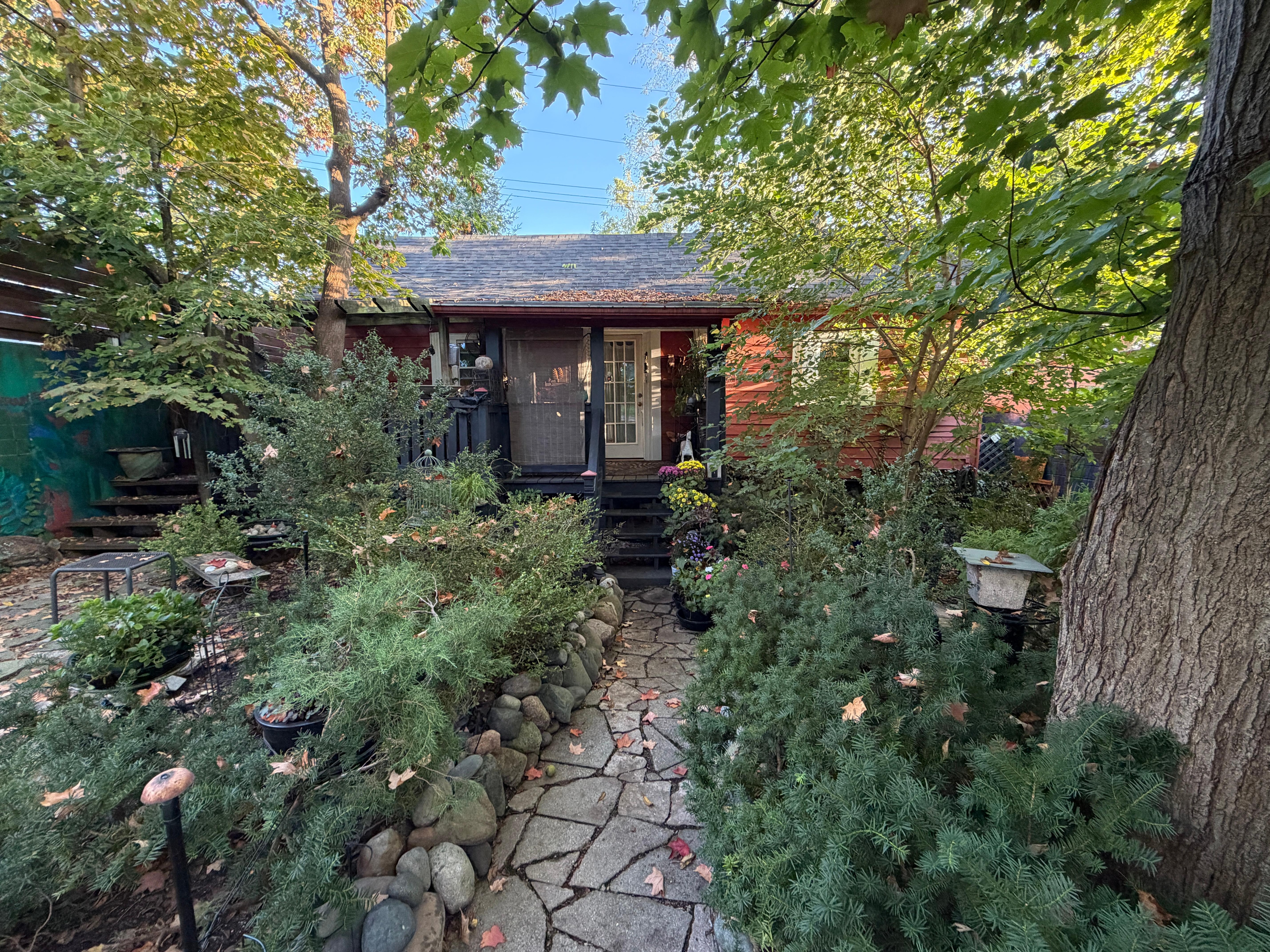 This 100 year old "tiny house" (476 sq.ft) was showcased in the 2014 Historical Old West Side Home Tour and enjoys the largest yard on a two-block street. The secluded locale is hidden under a canopy of walnut and maple trees with lush foliage, bordered by a large hand painted mural wall, making it unseen by passer bys and when Googled. This is a "shabby-chic" cottage with understated interior "mood" lighting, paintings and artifacts which make for a unique and inviting retreat located just 5.5 blocks from a sea of University of Michigan home games' "frenzy". The cottage is perfect for one-two people, but the living room sofa/bed will accommodate one more nicely...perfect for one-two night visits but may be tight for longer stays. The driveway will accommodate 2 cars which makes for a perfect tailgating setting. This secluded cottage has been praised by visitors for being an inviting and magical hideaway, feeling large and spacious for its actual size (14' x 34'). It is located in a very quiet neighborhood of professionals and academicians, offering a soothing "retreat" for temporary or possibly long term professional stays. It is hidden steps away from the U-M "Big House", numerous downtown restaurants, bars and shops, plus The University of Michigan's main campus and University Hospital...virtually all within walking distance. Auto, public bus or train provides easy access to Detroit, Lansing, the Detroit Metro International Airport or Chicago. The neighborhood consists primarily of professionals working at the University of Michigan, the Michigan Hospital network,, Google and various research companies located in Ann Arbor and Detroit.