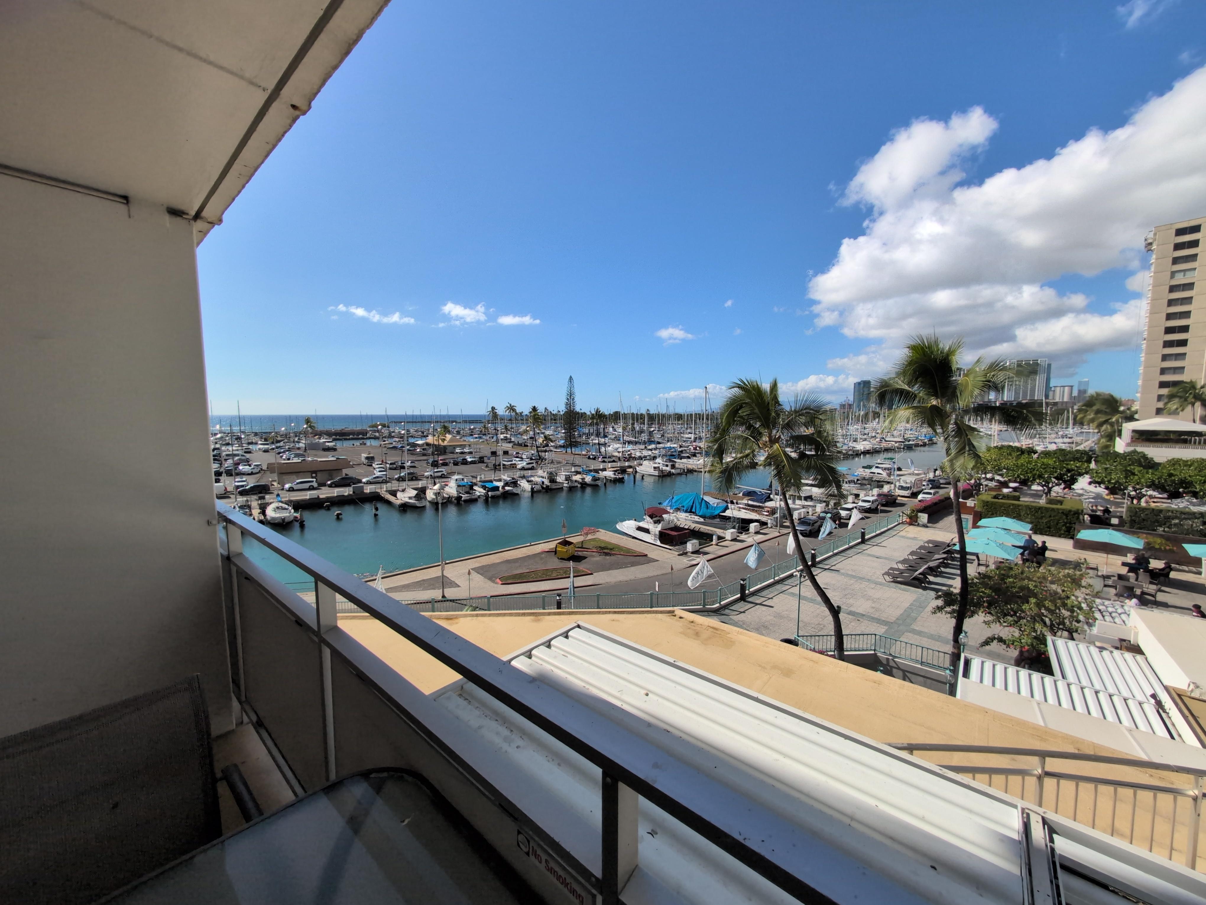 For those who prefer a lower floor and still enjoy great marina and Pacific Ocean views, you'll love this inviting 3rd floor studio at the Ilikai, the Waikiki landmark made world-famous by Hawaii Five-O! Enjoy your morning coffee or a cool beverage from the ocean view lanai. 4-person max.