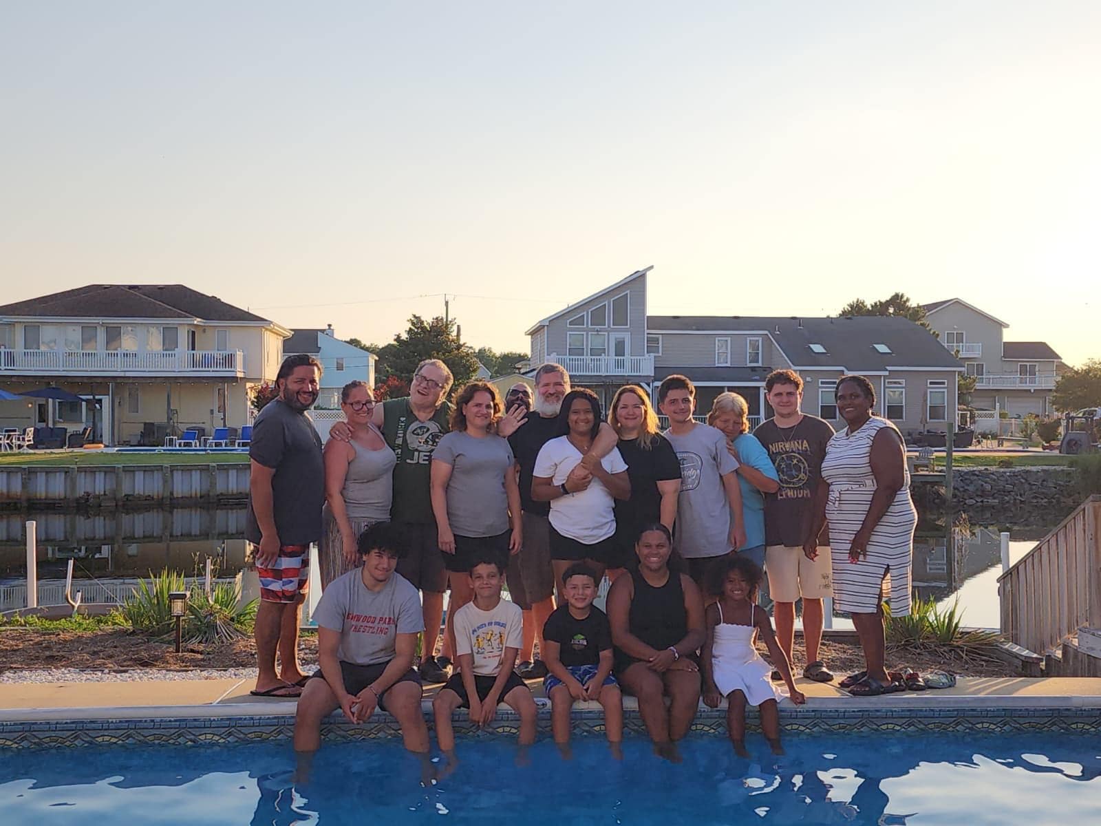 Enjoy Sandpiper Crossing with its featured quality amenities for your next family vacation in Sandbridge. This fabulous vacation home (3200 sqft) is situated on a wildlife canal that allows watersports, fishing, or just scenic viewing! It has a 18' x 32' private saltwater pool, sunken hot tub/spa that seats 6 and a 12' x 17' poolside cedar-lined cabana/sports bar complete with commercial ice maker (75 pounds per day), oversized 15 qt cooler to stock all of your refreshments and a 58” poolside LCD TV. There is an additional 10' x 14' granite bar that wraps around the covered Northside lower deck, which allows for a combined cabana/deck bar seating with 12 polywood stools overlooking the pool. This backyard entertainment area also offers a boat dock, two decks with lighted stairs, stainless-steel gas grill, 10 lounge chairs, 2 kid polywood chairs and table, an outdoor poolside hot/cold shower, a picnic table, and a play area with a pirate ship sandbox for smaller children.