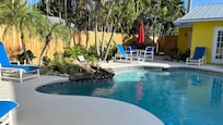 Shell Cottage is situated towards the top end of Anna Maria Island. It is one of a cluster of the 3 cottages sharing the free form pool with waterfall (at most there would be 8 people using the pool).