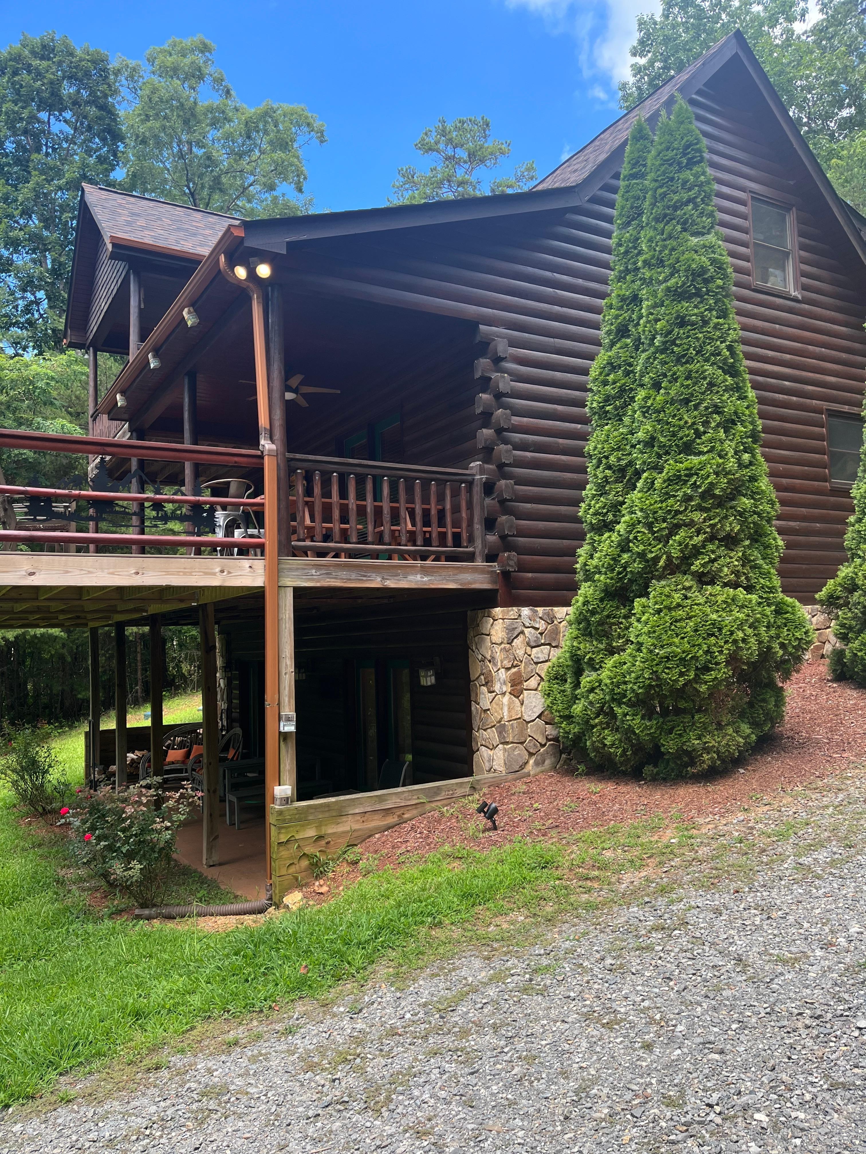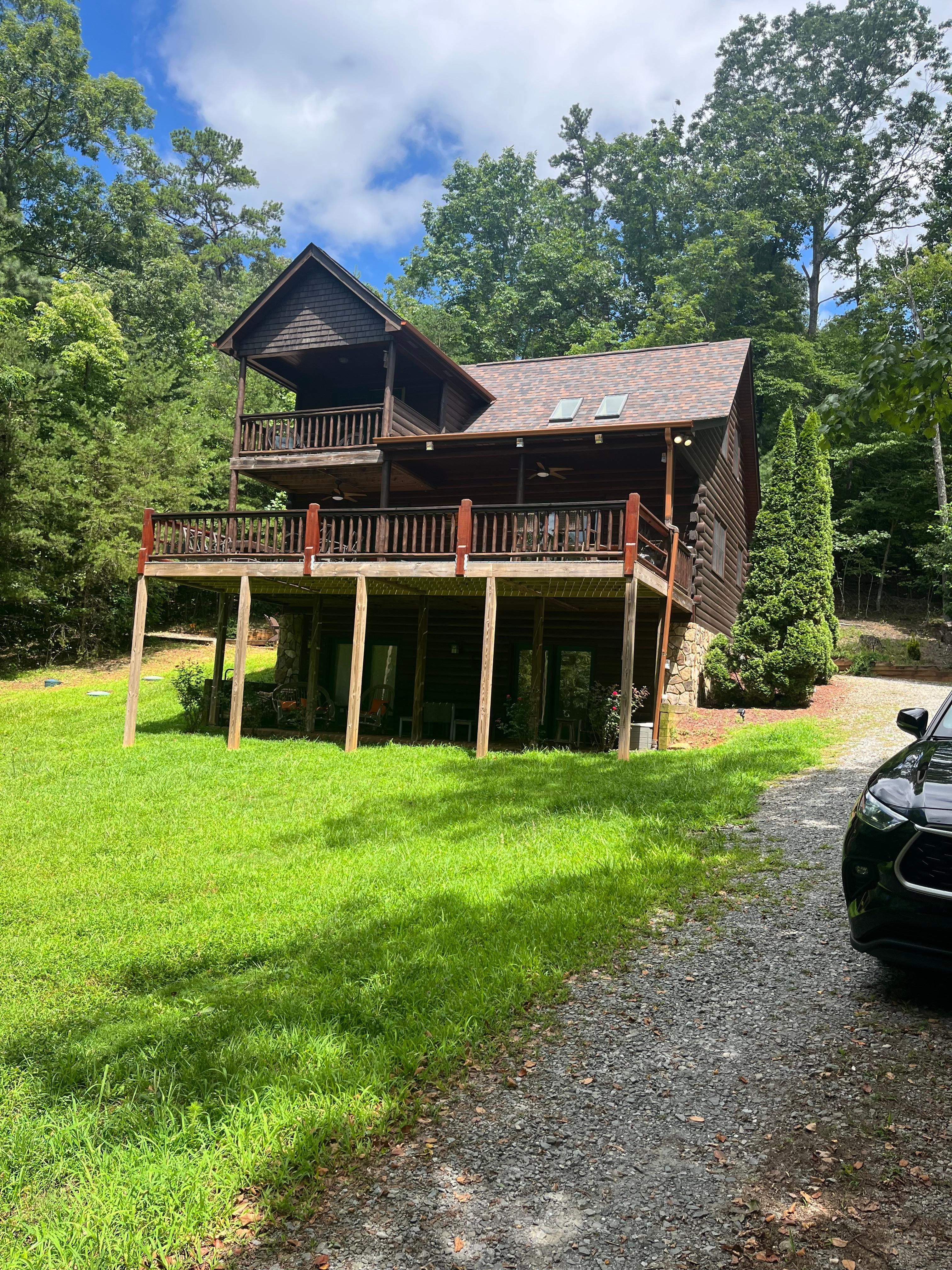 🎄🎄Short walk down the hill to stunning Lake Blue Ridge, this well maintained log sided cabin is located in the desirable Aska Adventure Area and within a convenient 10 minute drive to historic downtown Blue Ridge GA. This well appointed cabin has mountain views on top level and three levels of finished living space all nestled on 1.6 wooded acres on a private dead end road. Two KING bedded bedrooms. Potential 4th bedroom is the recreation room which offers bunk beds and loft is semi private with queen bed. This cabin offers a 6 person hot tub, outdoor fire pit, game room in basement including pool table, Jenga, foosball table and corn hole. Swimming and fishing are available within minutes of the cabin by either (10 mins)walking or driving. National Forest Service land is at the bottom of the foothill and it is used for swimming or fishing with little lake traffic. A public boat ramp is available as well. Max 2 pets allowed.