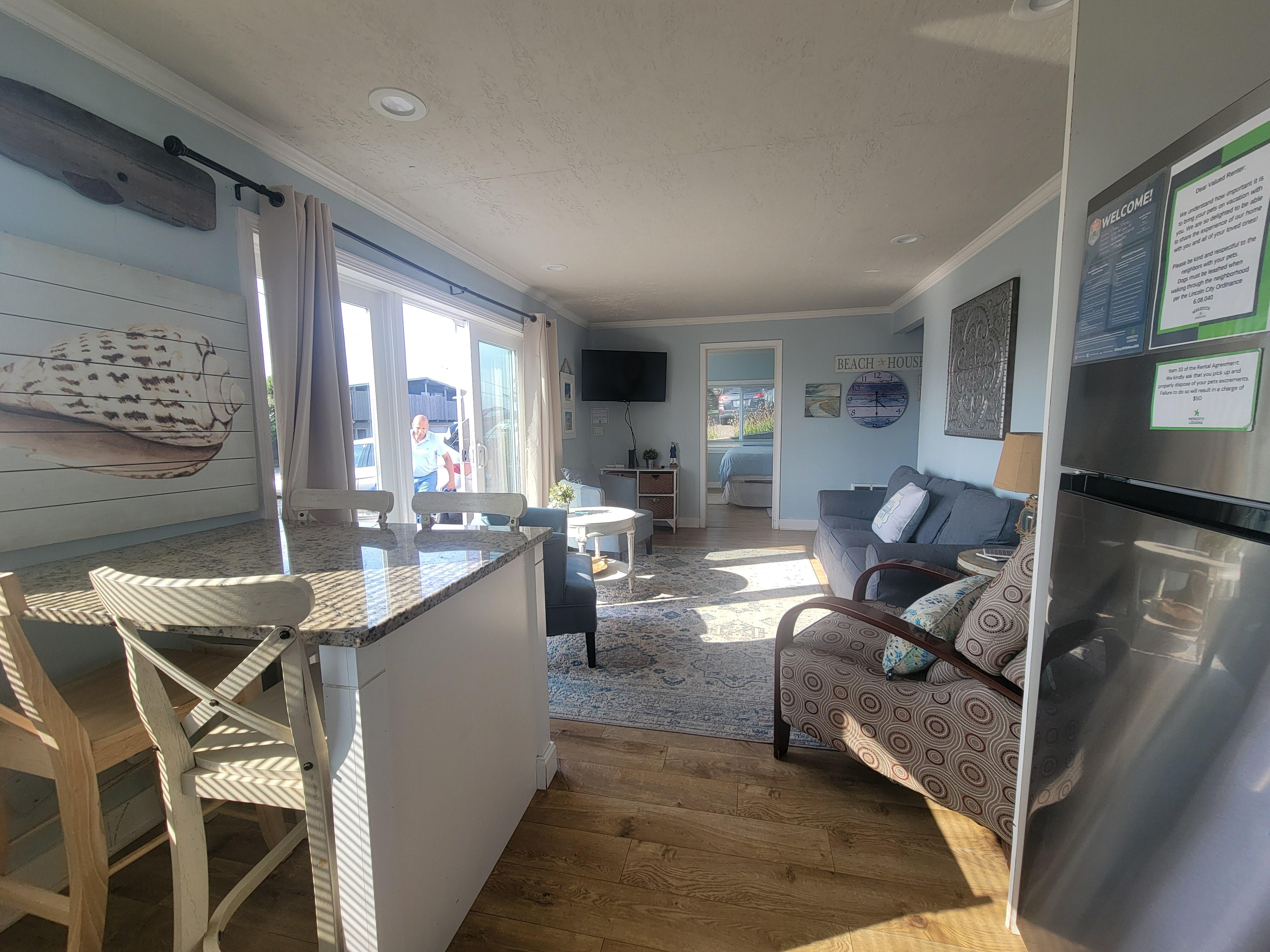 Don’t let Ohana Shores’ simple appearance fool you—it has everything you need for a terrific stay at the beach! If the beach is why you’re here, relax in the living room and watch the ever-changing surf. Better yet, walk right through the sliding glass door across the street to Roads End State Park for surfing, parasailing, tide-pooling or endless strolls on the sand. You’ll love the updates in this home, including hardwood floors, modern lighting, granite countertops, and stainless steel appliances. The king bedroom has an ocean view; a cozy second bedroom has a queen bed. There’s an additional single rollaway bed at the home. A TV and Roku are there for your entertainment, but you might prefer an evening on the deck watching the sunset over the Pacific. You’re in Roads End, which puts you minutes from shopping, dining, a McMenamins brewpub, and the Chinook Winds Casino. You’re also a quick drive to golf or water fun on sunny Devils Lake. Don’t be surprised if this little beach beauty becomes your favorite way to enjoy a quick coastal getaway!