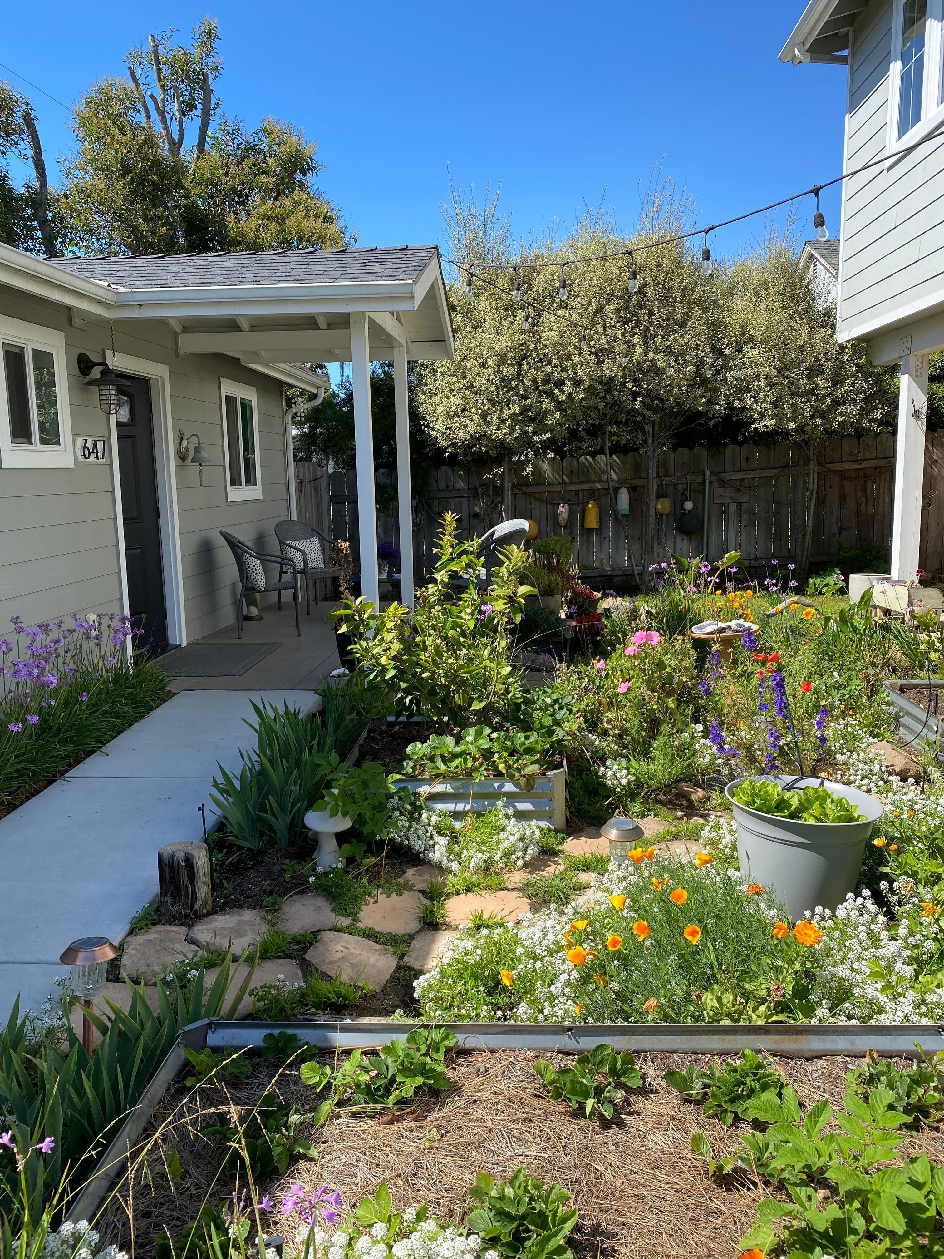 The garden area offers ample seating on the porch to relax with early morning coffee or evening Happy Hour. Fresh herbs & veggies are sometimes available near the walkways to add to your meals. We offer private off-street parking next to the Cottage with easy walkability to the entrance.