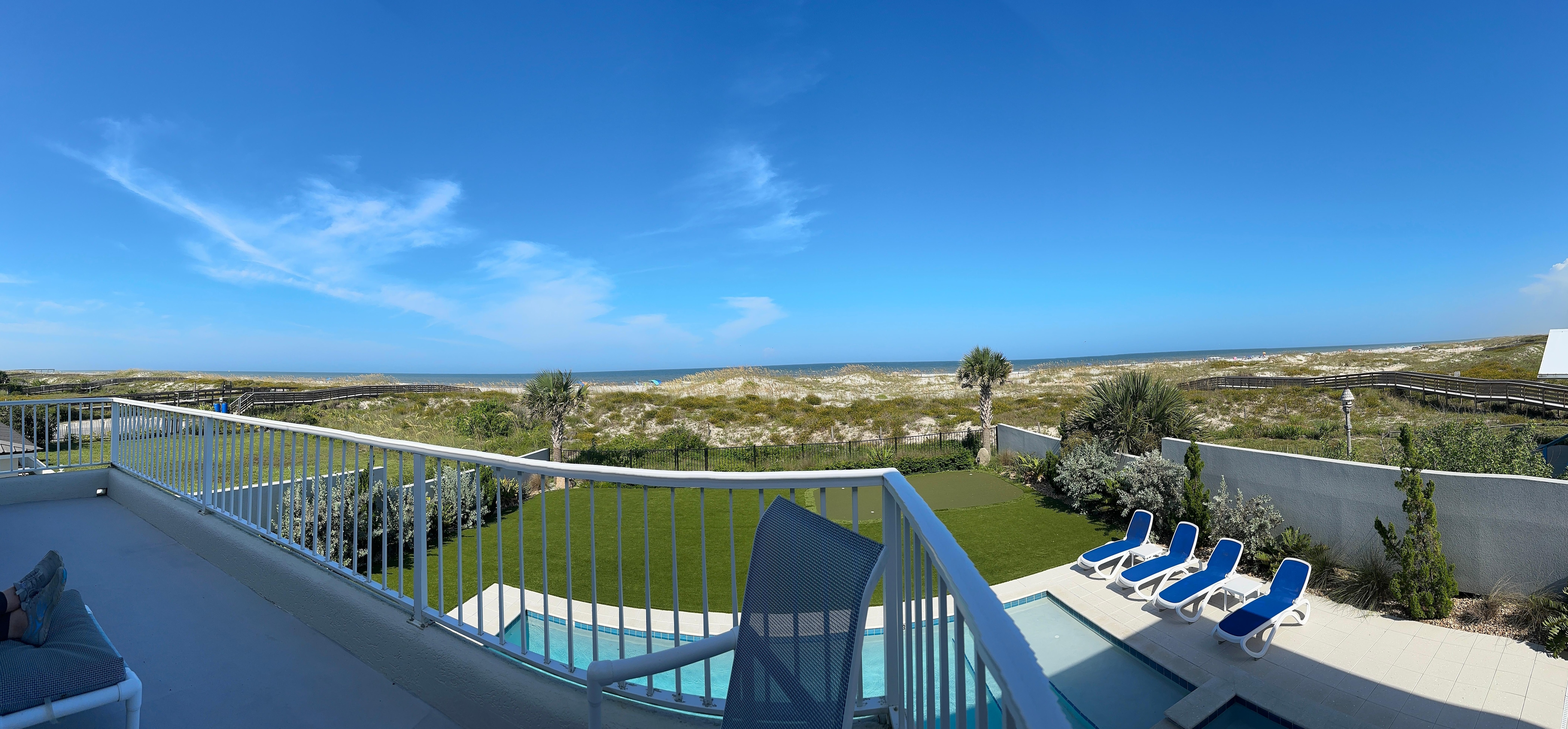 A contemporary and comfortable beachfront home with three bedrooms and three full bathrooms. The open floor plan provides views of the Atlantic Ocean from the living room, dining room and kitchen through 32 feet of glass. An upper balcony is great for sunning and sipping.