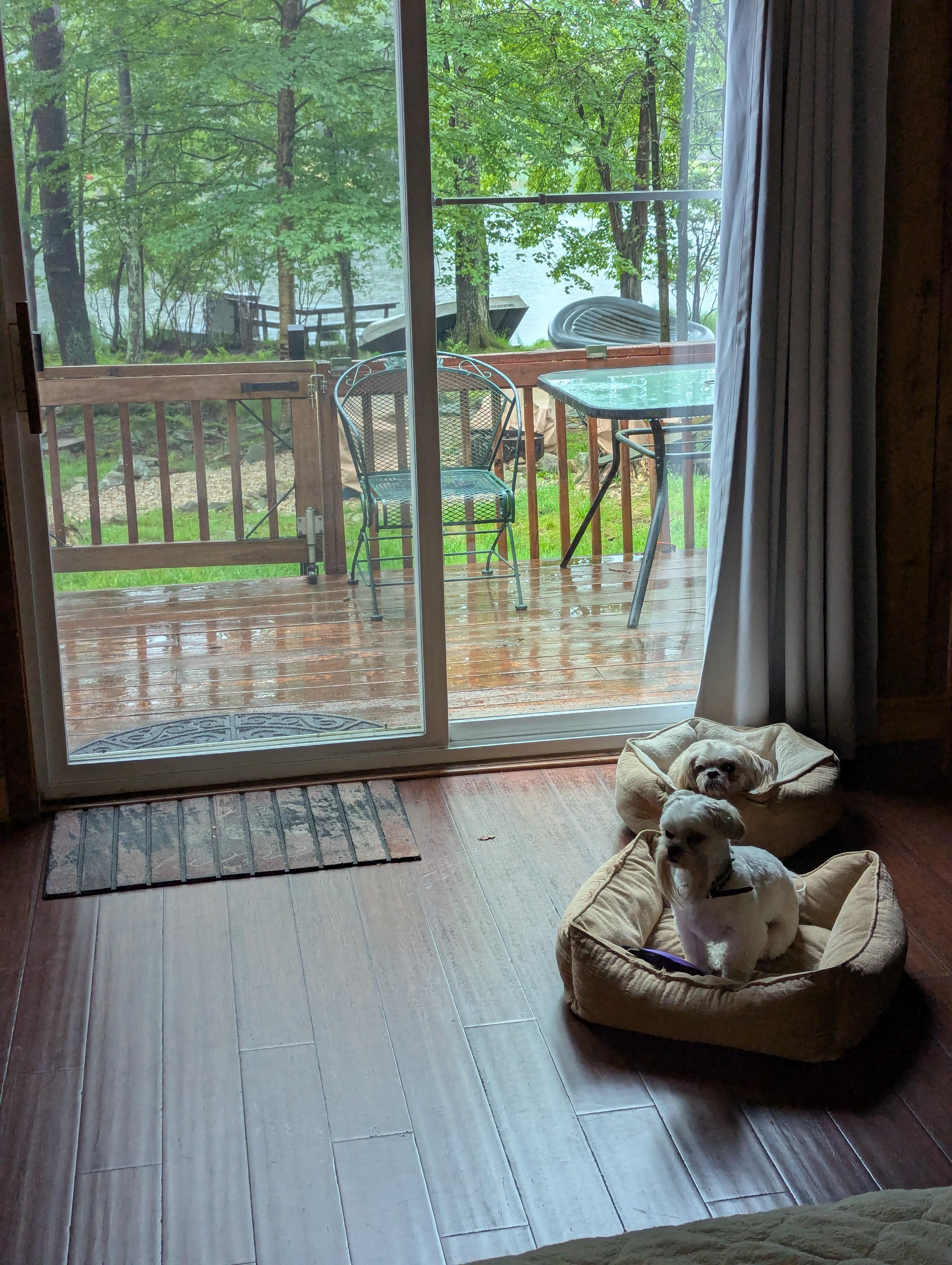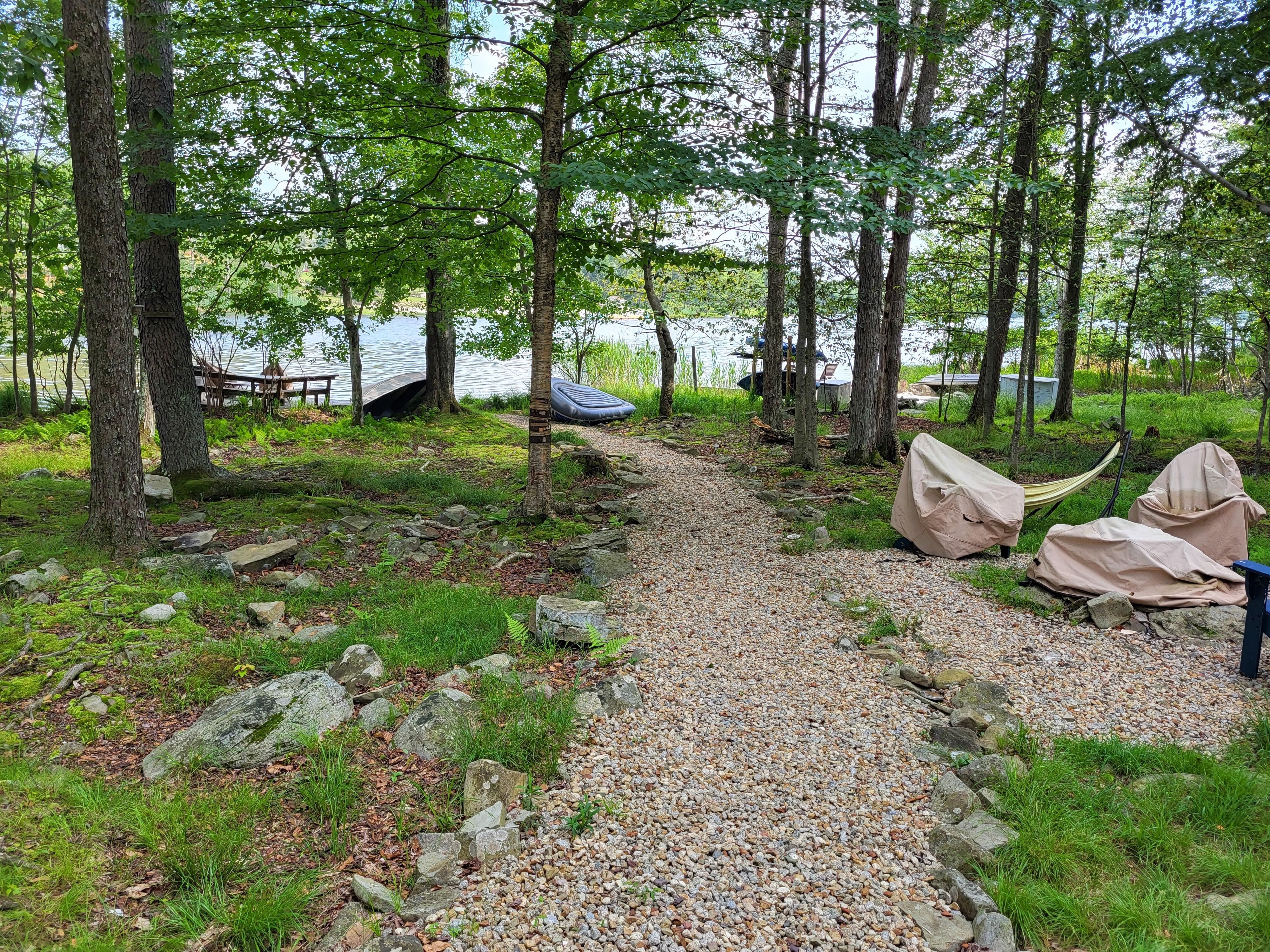 Outdoor spaces include a large deck with a propane grill (propane is provided) and dining area, a dock with a full view of the lake with a seating area, and a large umbrella with LED lighting so you can enjoy it day or night. The property comes with a choice of 2 boats: a 5-person inflatable boat or a 14' aluminum rowboat and with life vests so you can get out on the lake. A fire pit with a bench and adirondack chairs is perfect for making s'mores to end the day.