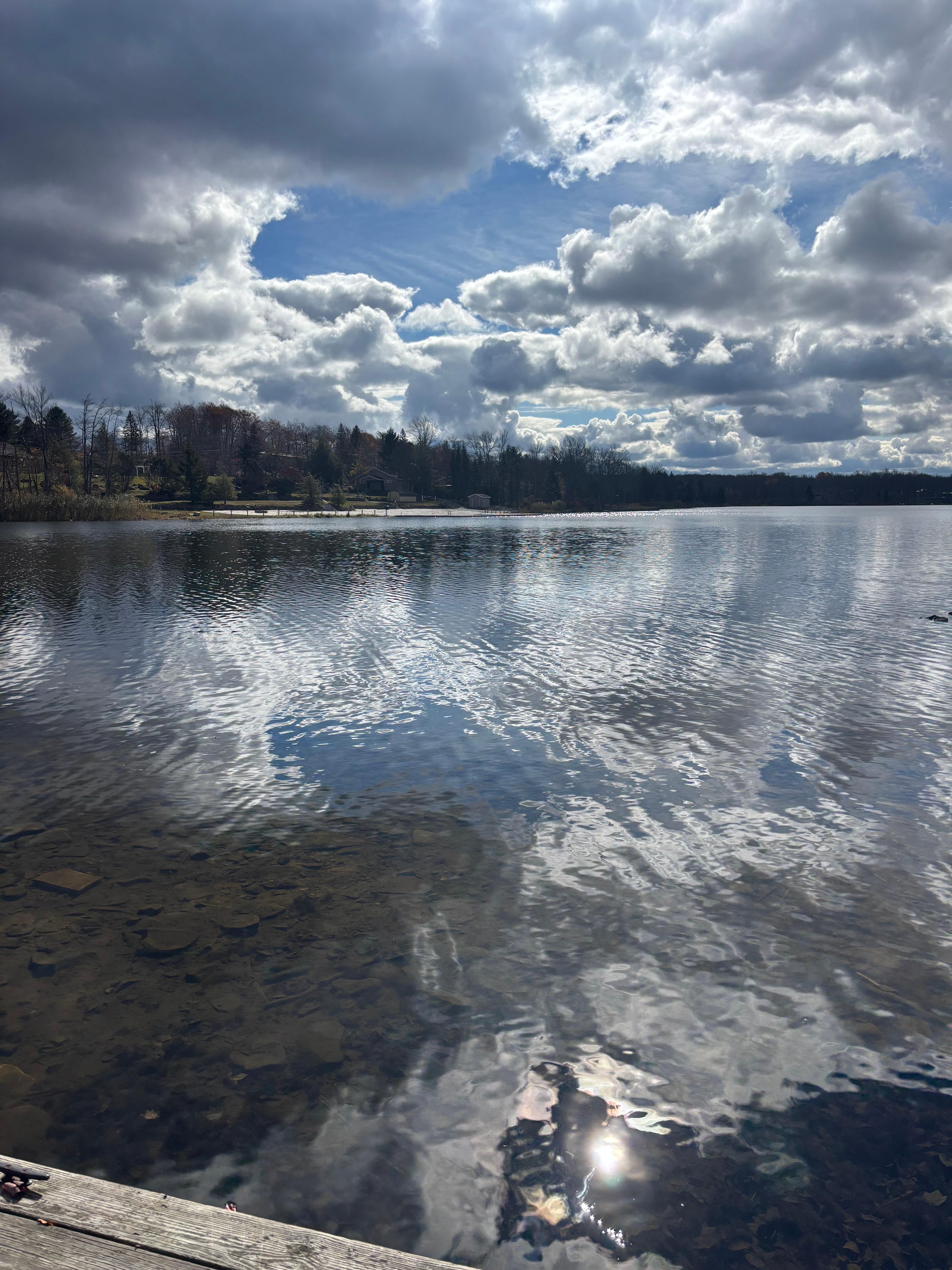 Large, comfy sofa in front of the pellet stove fireplace with a view of the lake and a 55" flat-screen TV with Hulu and several other streaming channels. Open layout with the kitchen and dining room, the dining table is extendable and can easily accommodate a large group. The kitchen has all the essentials you may need. Newly renovated bathroom with washer & dryer.