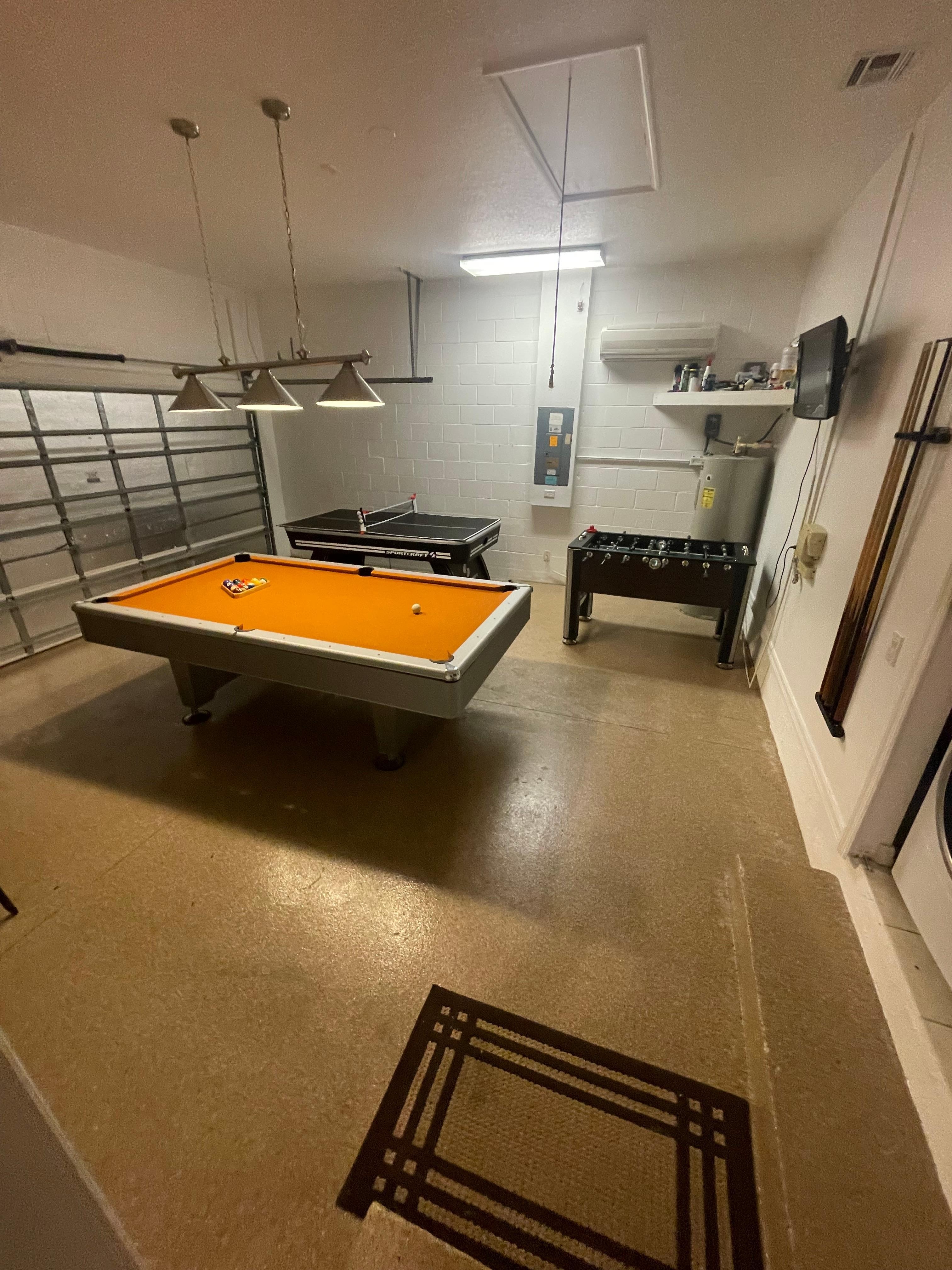 We chose this house based on the great reviews for cleanliness, the bedroom/bathroom space and private pool. Overall, this house met our needs. The linens were clean, Wi-Fi was good for the kids and for working remotely when we needed to do some work. The kitchen is fully stocked with what we needed (pots/pans and utensils); there were no spices to found anywhere. The pool was fairly private, the house next door seems unoccupied, and we never saw any neighbors from the pool area. The biggest downfall of this house was the cleanliness. The carpets are horribly stained and dirty. There are large rugs covering a lot of the main floor carpet but those seem old and dirty as well. We did find out the owner is planning to replace the flooring after we leave…too bad we missed the update. We wiped up the dirty tile floors ourselves upon arrival. All the corners and floorboards are very dirty. The whole house needs a very thorough clean. The front door latch broke and we got locked out of the house. The property manager helped us get in and we remedied the latch to get us through our last couple days. We were not able to use foosball or ping pong due to lack of correct balls. The pool table had all the balls and good cues to play pool, but the triangle is needing to be replaced (it is broken). The board games were all mixed up and we could not find all the pieces to some of the games. Overall, if the owner gets the house a deep, thorough cleaning, this would be a nice place to stay.