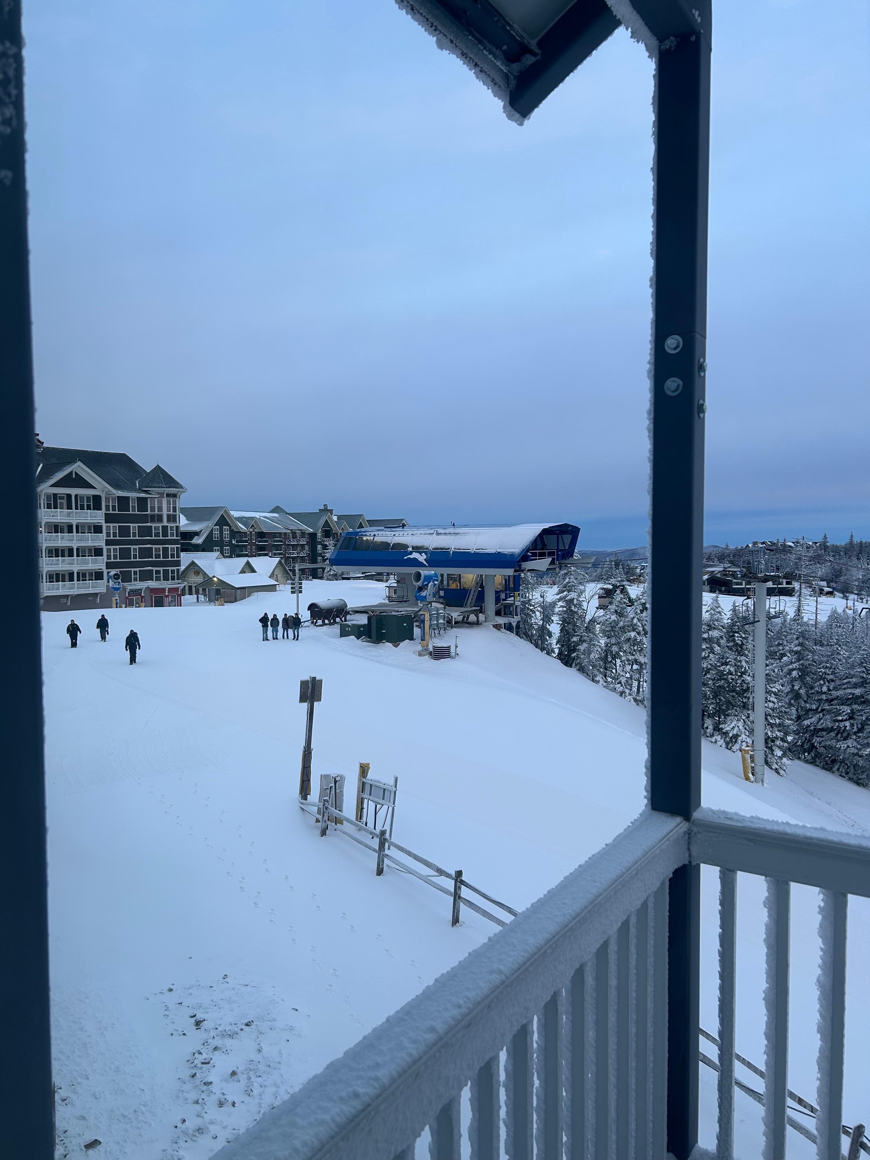 Mountain Lodge is one of the older buildings in Village Central, and as it was here first, it arguably occupies the best spot on the mountain. You would be hard-pressed to find another building in the village with better views, or that is more ski-in, ski-out than this one. It is adjacent to the Ballhooter lift, has easy access to a beginner slope, or you can ski down on a green or blue run. For the utmost in convenience, there are ski/bike lockers you can rent just inside the exit to the slopes. Mountain Lodge has it's own private parking lot (rare on the mountaintop), which is free to Mountain Lodge guests. It is walking distance to the Village shops (including ski rentals), several restaurants, and Split Rock Pools with heated pool, hot tub, and sauna (additional charges apply). During prime ski season, there is even a restaurant in the basement of the building, so on those really cold nights, you can go out to eat without even going outside!