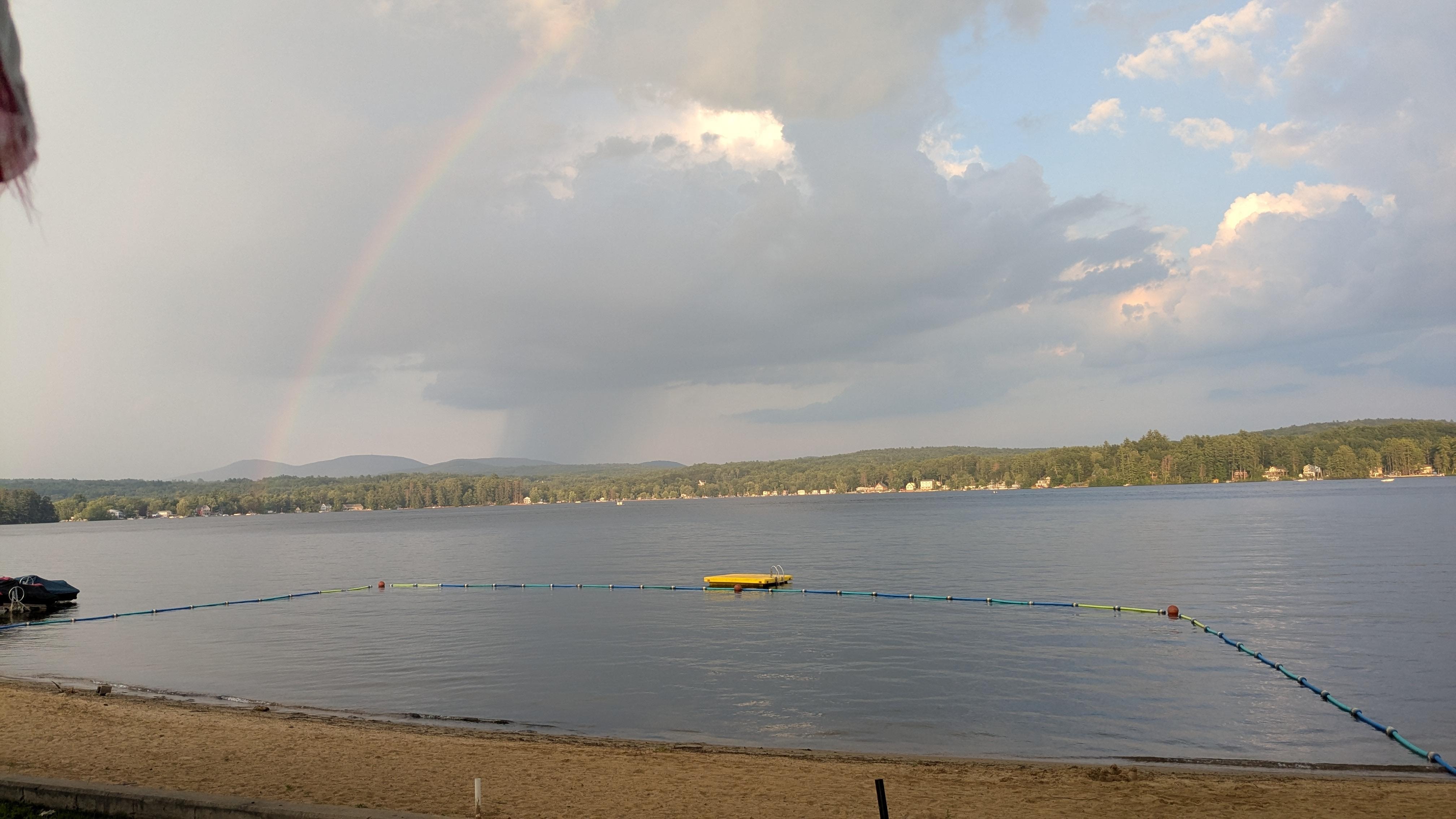 BEACHFRONT COTTAGE with spectacular views of Lake Winnisquam and mountains from your own private enclosed porch. Only steps to our sandy beach!