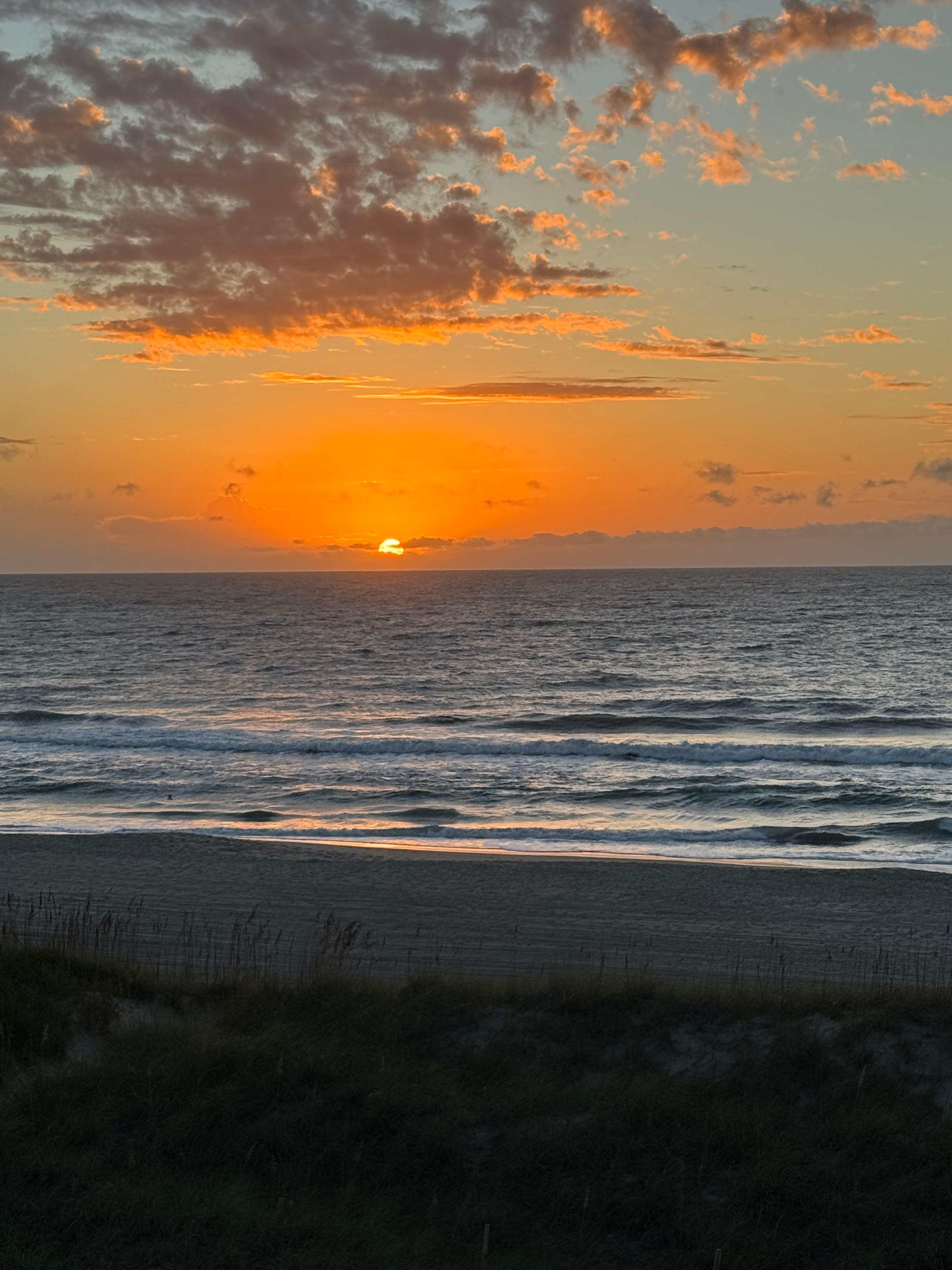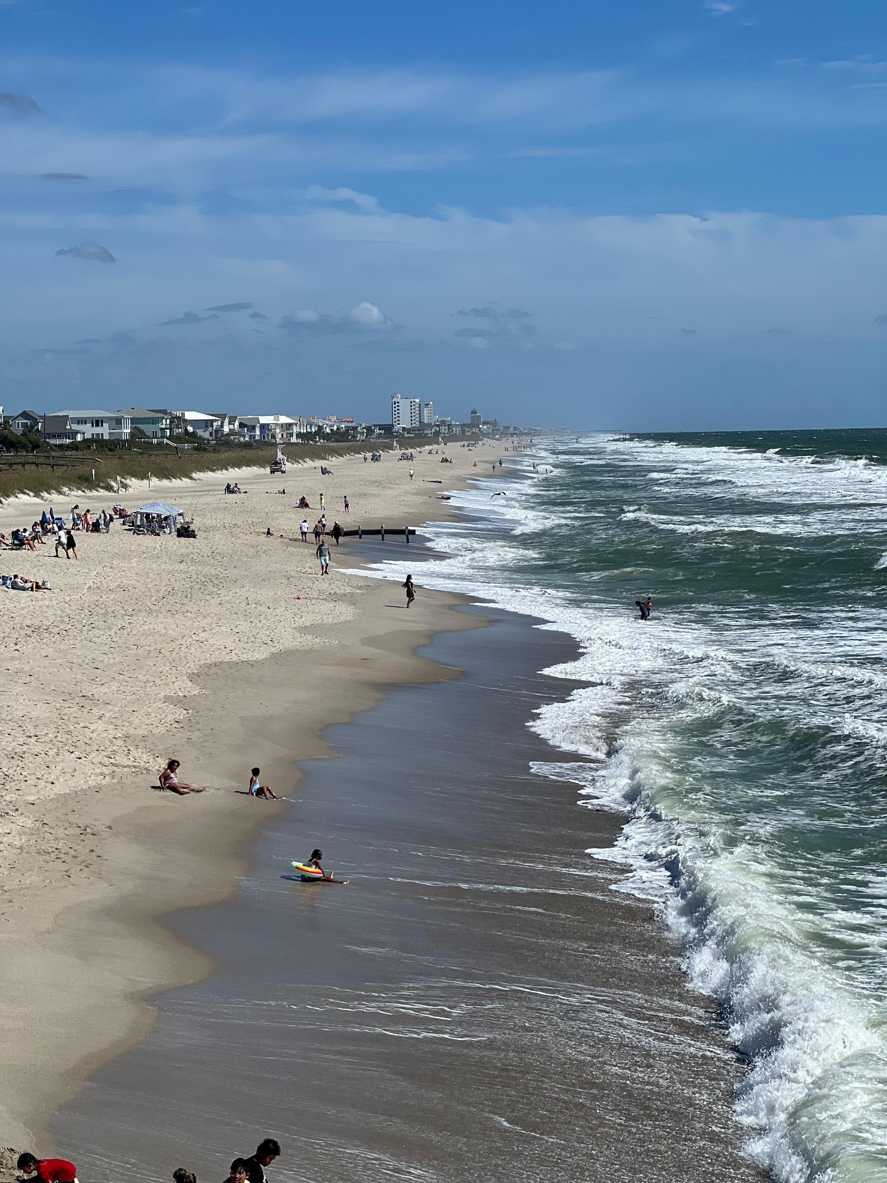 One of the most popular spots on Carolina Beach! Only a few steps to the white sandy beach where you can enjoy the entire day starting with a beautiful sunrise. This unit is located oceanfront on the top floor with panoramic views of the Atlantic Ocean. If you prefer not to go to the beach the deck located off the living room and master bedroom offers plenty of space to relax and is covered from the afternoon sun. There is a large kitchen that comes fully equipped with complete cooking essentials and appliances. A dining area for four is provided and additional seating for three at the at the breakfast bar. This is the first time renting our unit so expect all of the comforts of home.