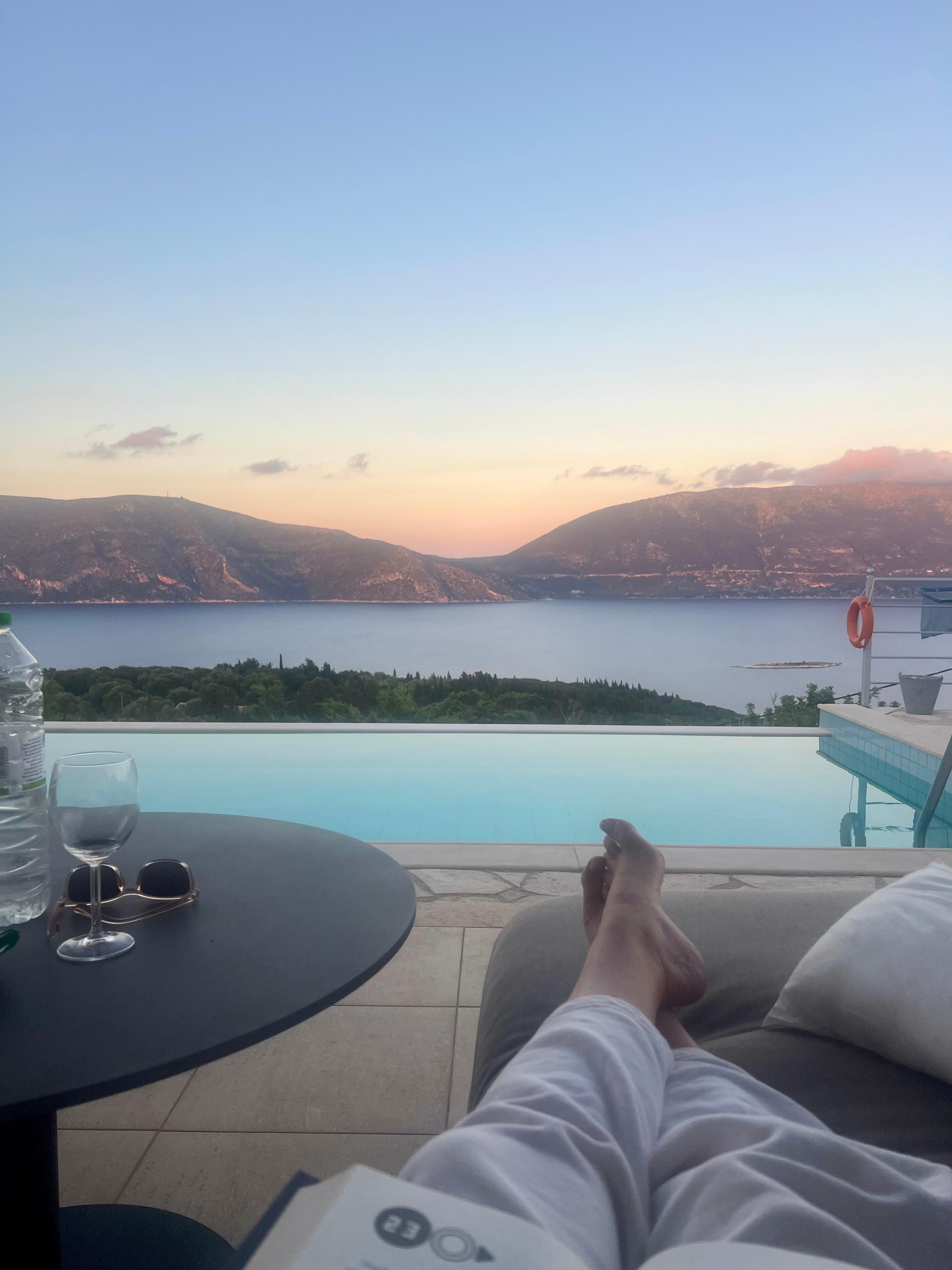 As one of the previous reviewers said, it is with some reluctance that I share our lovely experience, as it will make it harder to book in future. I travelled to Kefalonia with my two daughters (aged 10 and 8) in May 2017 and stayed at Evreti Blue for 14 nights. The long drive from the airport is certainly worth it, and after parking up at the back of the property and then walking around to the pool area, you are met with the most breathtaking view, across the sea to Ithaca, Lefkas and beyond. The photos don't do it justice.