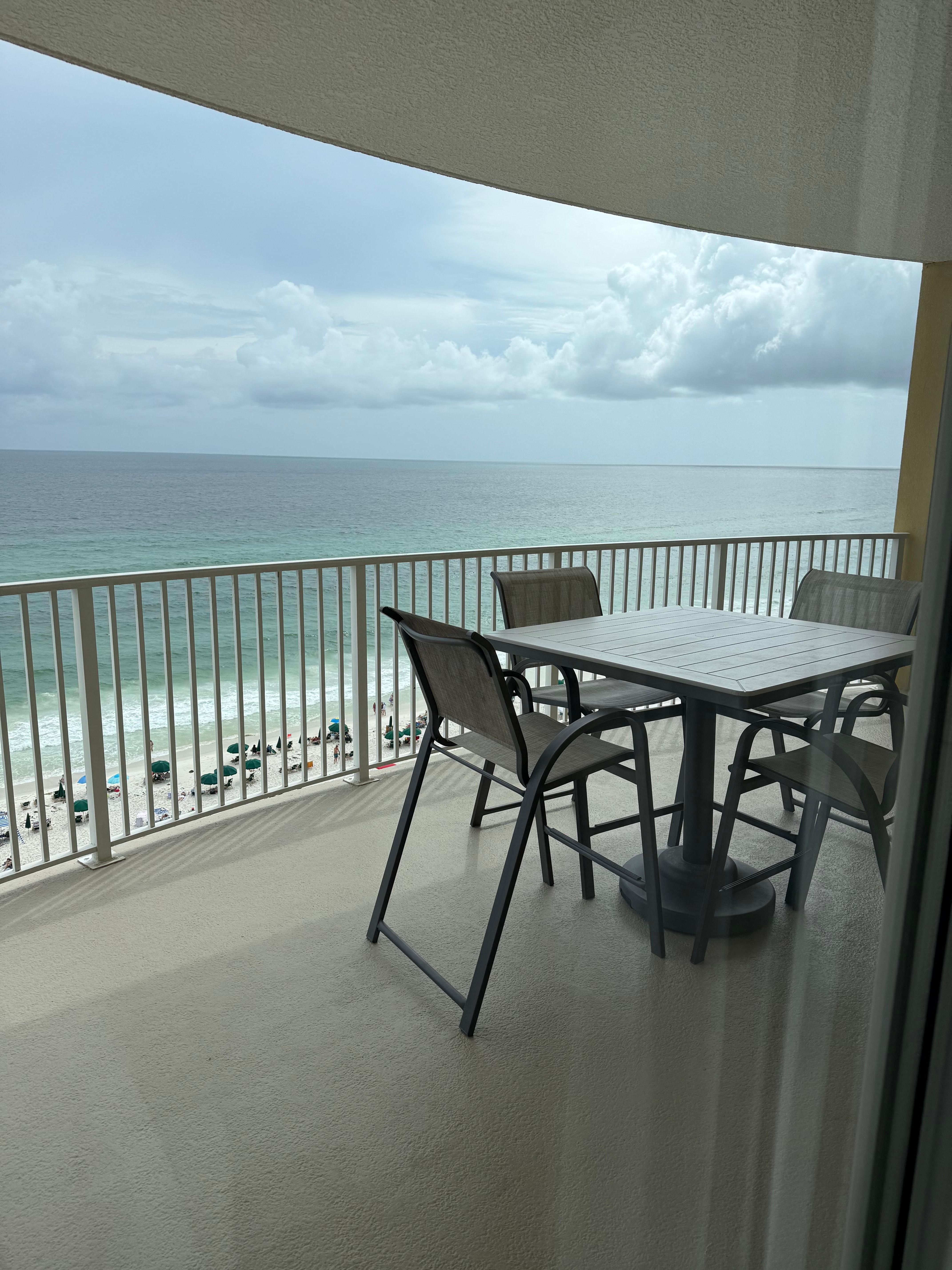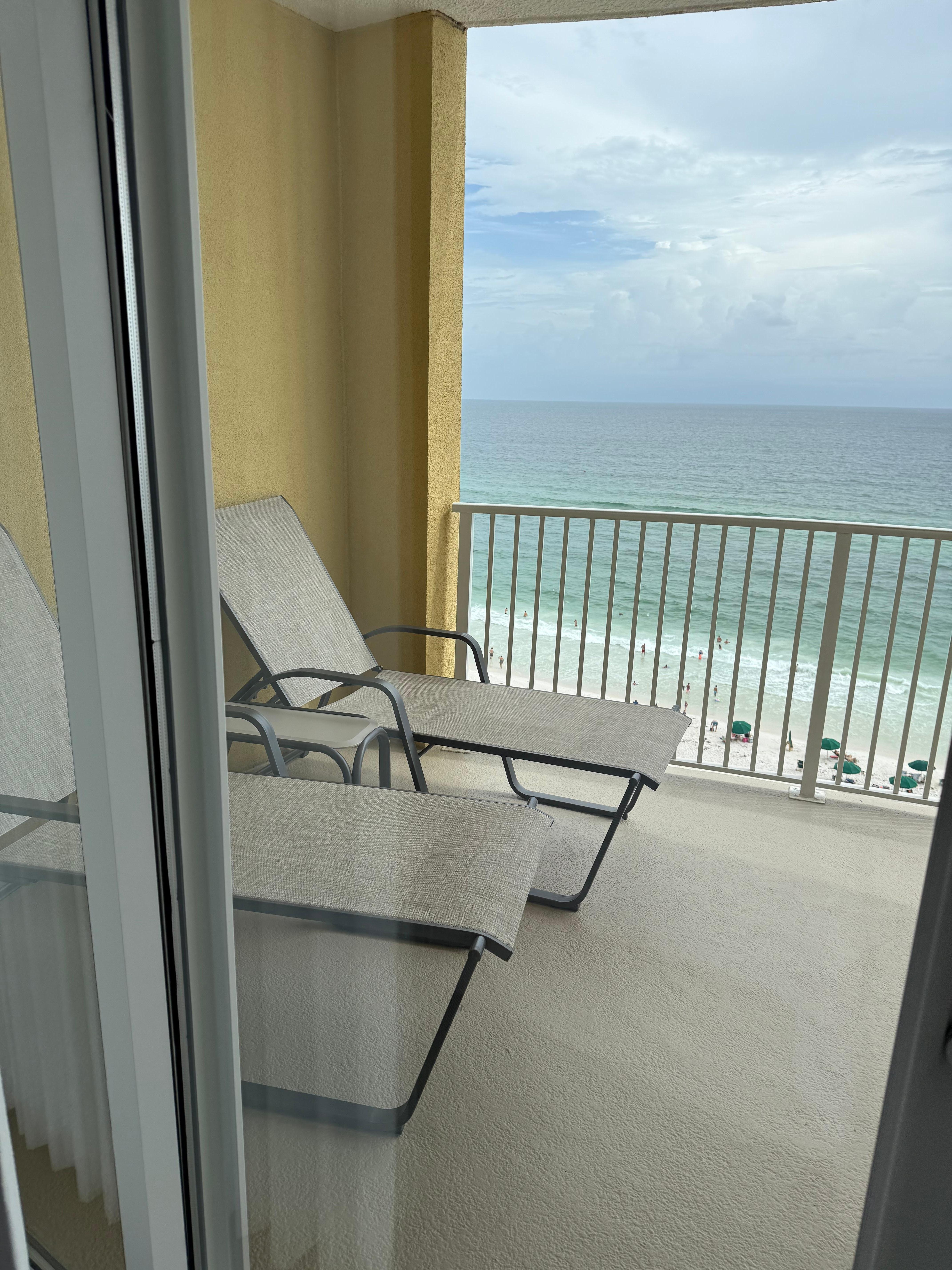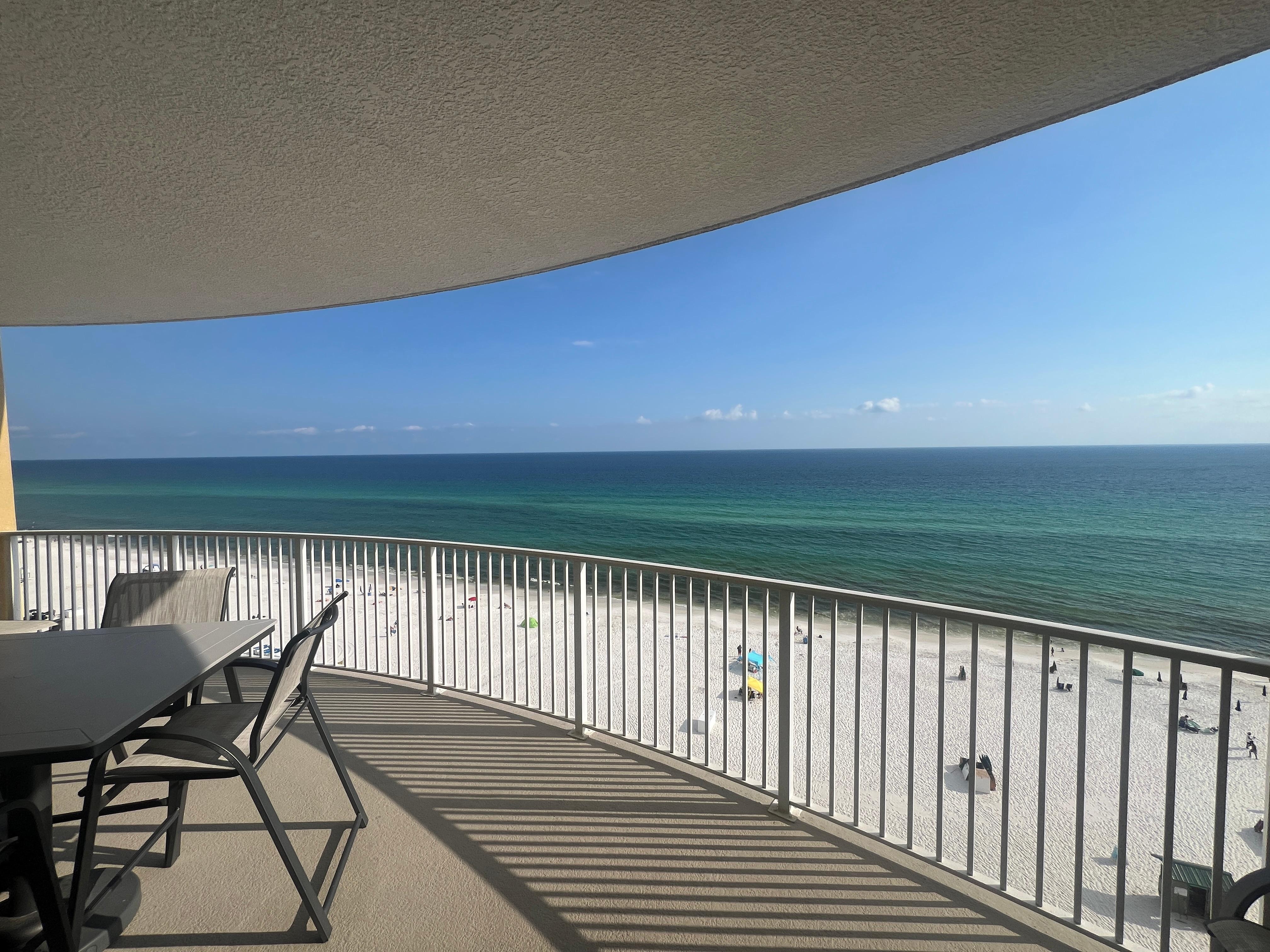Enjoy beautiful white sand beach and ocean views from the fabulous oversized balcony. The large 271 sq ft balcony is accessible from the living room and main bedroom. Lounging and dining furniture create an outdoor living area from which the sun will dazzle you during the day, and in the evening will entertain you as it sinks into the Gulf of Mexico/America with its breathtaking kaleidoscope of colors.
