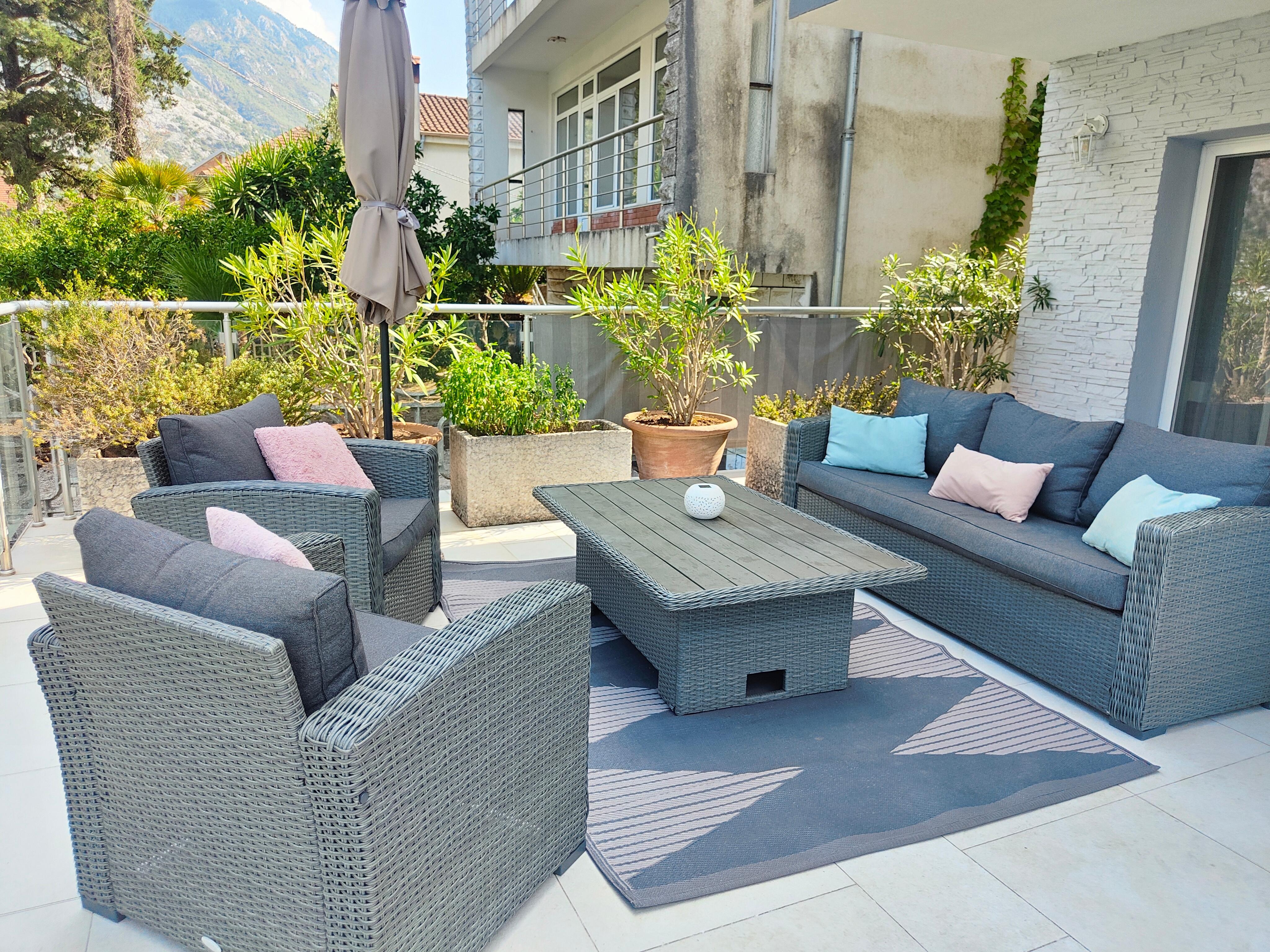 Front line to the sea with one of the best views of Kotor Old Town and fortress. By day watch the luxury cruisers and yachts come in to the marina and by night the beautiful fortress lit up creating a magnificent heart shape on the water.