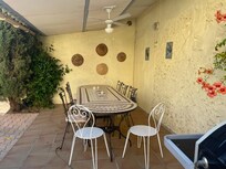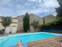 Renovated Maison de Maitre near the centre of a picturesque village in the Cathar region of Languedoc, midway between Carcassonne, Beziers and Narbonne, with patio, private swimming pool and large secluded garden with children's swing and slide. The village has its own shop/cafe. Bank, post office, chemist can be found in nearby village of Ginestas 5 minutes away. Nearest supermarkets are 10 minutes drive. Beautiful views from top of house over vineyards towards the Montagne Noire. Undulating countryside ideal for walks and cycling. There are many local restaurants in the vicinity, and a small "epicerie" (general store) in the village. The house is a high-ceilinged characterful property built in the 1870s. Its thick stone walls ensures that it stays relatively cool in the heat. There are electric fans in every room but no air-conditioning. This is a much-loved family home rather than a purpose-built holiday villa; hence some of the furniture and fittings are well-used. It has five bedrooms and four bathrooms, a large living/dining room and a separate TV room with Broadband WiFi and UK Freeview TV/Netflix etc. The renovated kitchen is fully equipped and gives on to the patio, pergola and swimming pool. The large garden ensures privacy and there are vineyards to the rear. The picturesque Canal du Midi is 3 kms away. Historic Narbonne is 25 mins and the nearest beaches 45 mins.