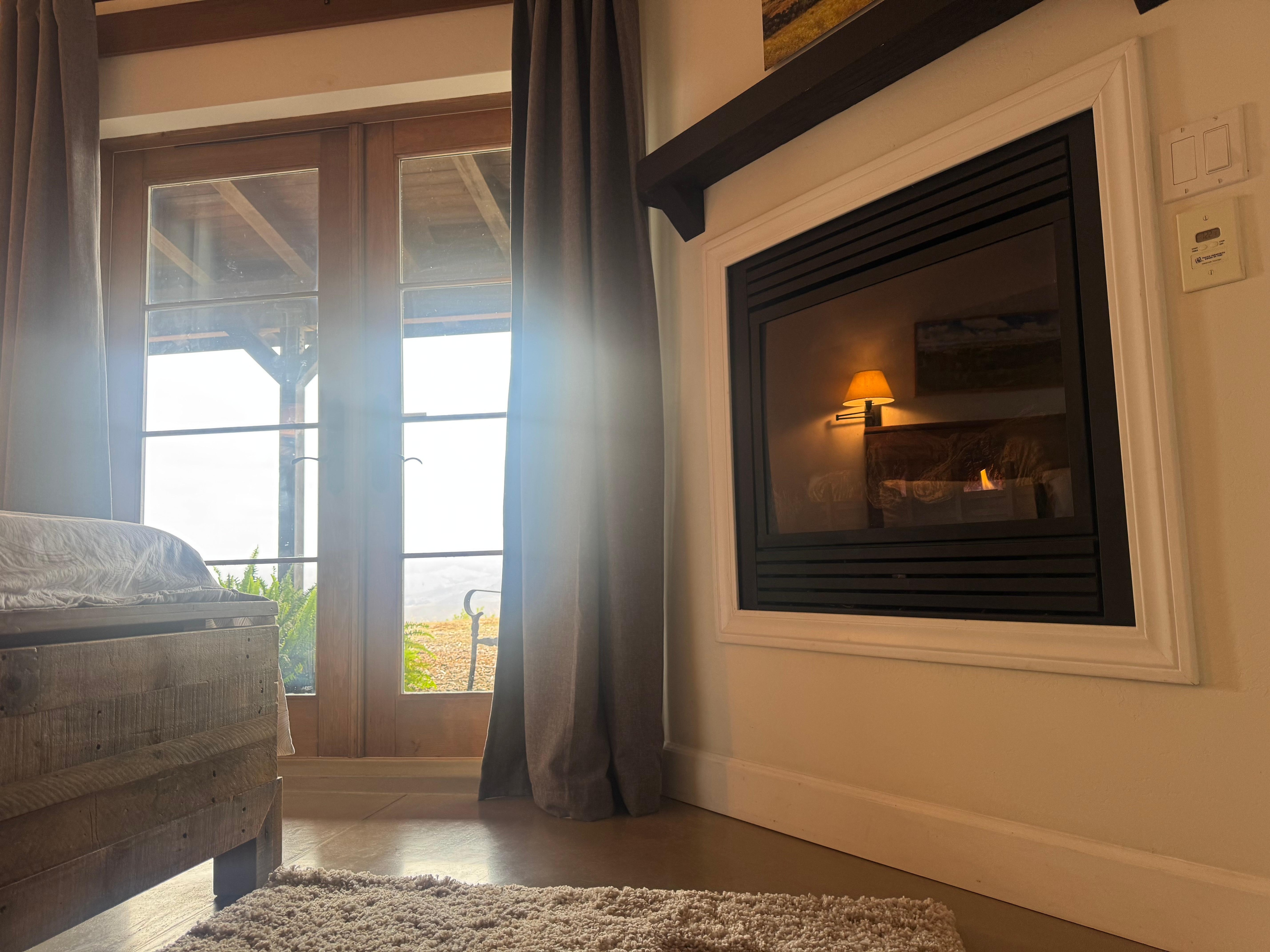 Prefumo Crest Inn has 3 master suites with en-suites, and an open floor plan kitchen and great room. The indoor spaces are open and airy, with high ceilings, plenty of natural light and endless views. All rooms have french doors overlooking a private covered patio and garden. Each suite has a king size memory foam bed, Brooklinen luxury bedding, couch, fireplace, smart-tv, wi-fi and iPhone compatible radio. En-suites have a whirlpool tub, open-air shower and water closet.