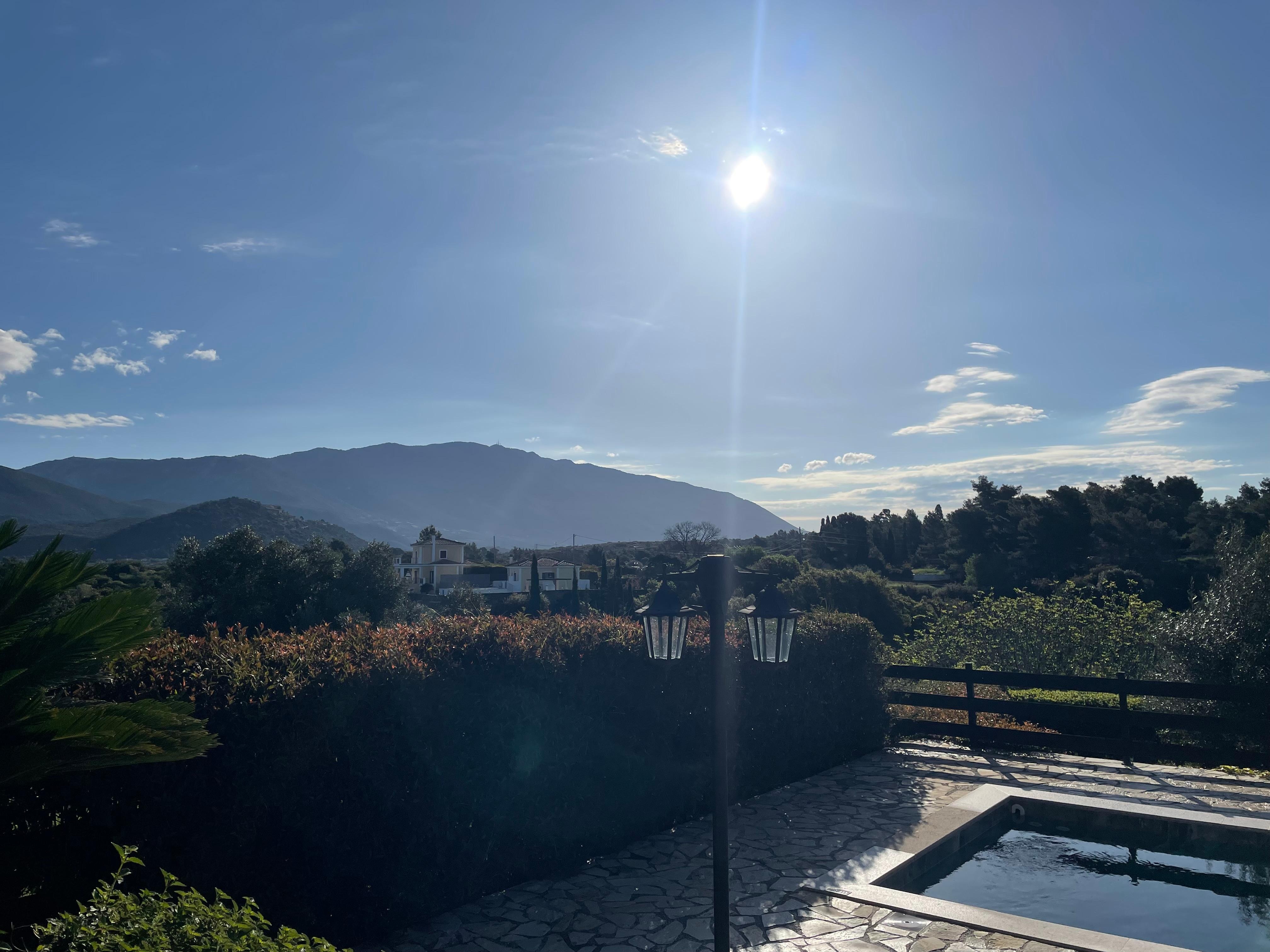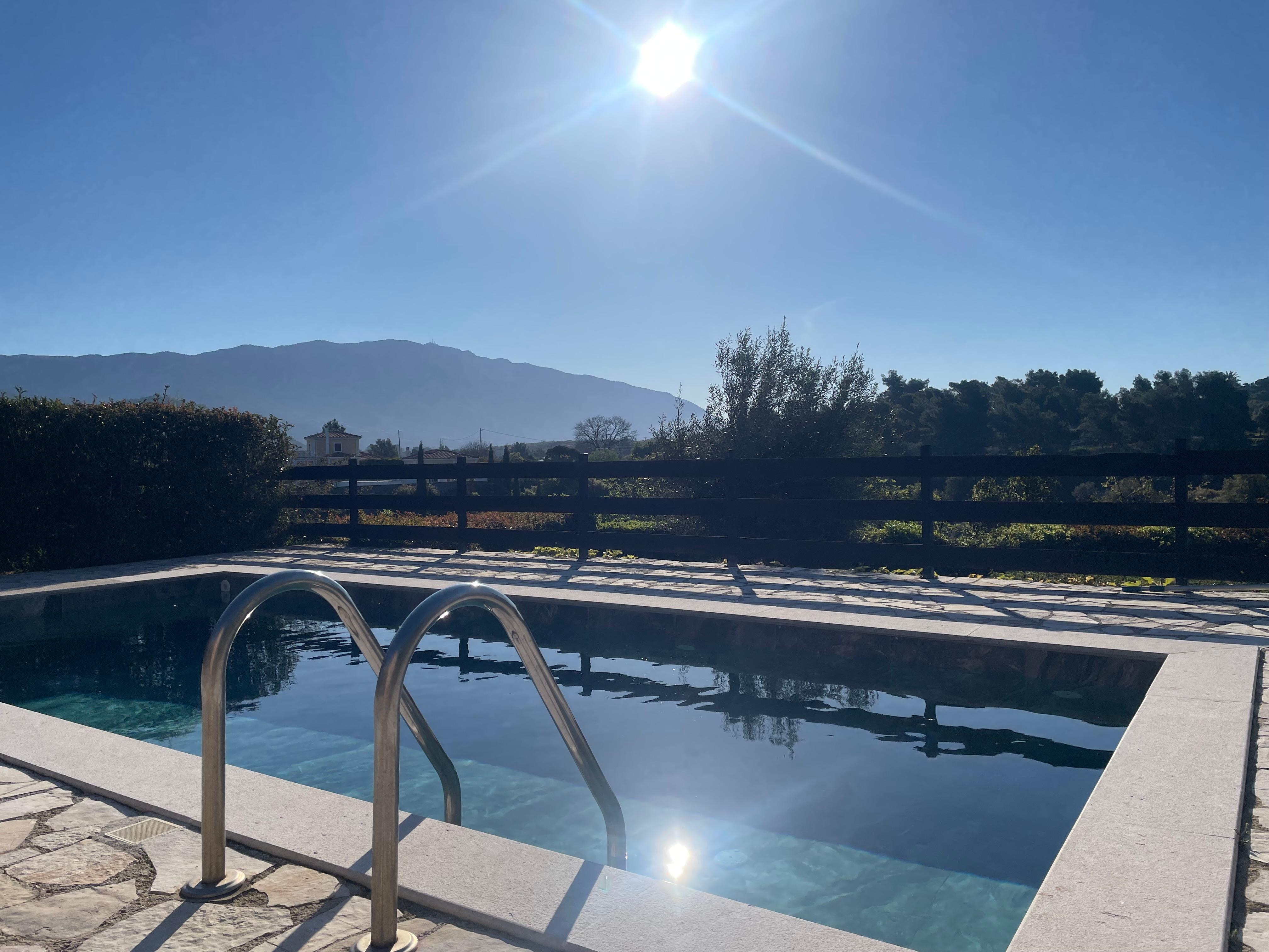 Lovely villa with fantastic views of mountains and countryside, very peaceful, just birdsong and the churchbells from the local village which is just a few minutes away, the village has great restaurants and bakeries and a bar and small supermarket, it's in an ideal location for exploring the island and has plenty of great beaches a short drive away, some great coffee shops a 5 minute drive away and only 10 minutes into argistoli, John cleaned the pool every couple of days and kept the outside area tidy, you wouldn't even have known he was there, they left some supplies in the fridge, very useful for the first night and a home cooked meal was waiting on arrival which was delicious, the villa was cleaned more often than you usually get and the bedding and towels were also done, John gave us notice when this would be done which was very useful, really and enjoyed our stay, so relaxing, would love to stay again.
