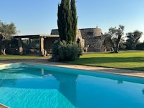 After buying the property, we personally over-viewed the restoration of this typical stone house (locally called "pajara") composed of two connected blocks, one of which is circular in shape. Originally built to store agricultural tools and occasionally supply a roof to olive pickers in the autumn months, it is now a fully equipped villa with a rural character. The outside space is ideally organized to enjoy the long sunny days and cool summer evenings by the pool and under the large canopy or the shade of the olive trees. There is an outdoor shower next to the pool (10m x 5m). The house has a Wi-Fi connection. Especially during the summer months, visitors can enjoy numerous religious and cultural events. Food festivals are organized almost daily by the surrounding villages where a variety of local delicacies and wines can be tasted. Numerous beautiful sandy and rock beaches are reachable within a short drive, the closest being 8min away.