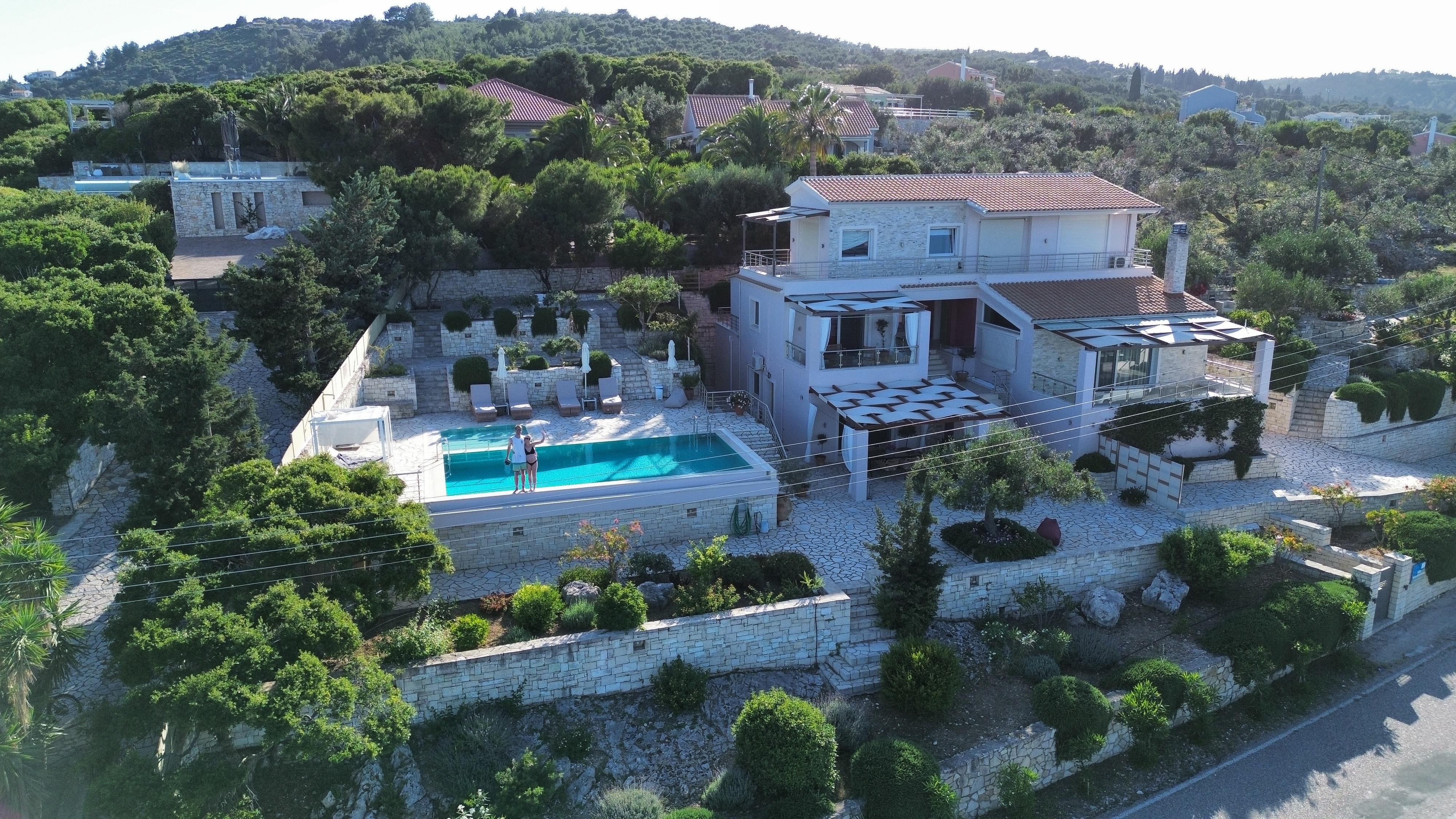This magnificent seafront villa is within close proximity to Gaios Port and the main town and it offers a very unique sunrise, as it is facing the mountains of the Greek mainland from where the sun climbs their tops and gently strokes your pillow. This gentle awakening will be followed by a nice breakfast on the balcony or the terrace looking at the Monastry island of Panagia. The accommodation provides you a very relaxing time in the pool and in the garden. Views of the small islands of Panagia and Aghios Nicolaos and the mountains of mainland Epirus in the distance, set against the vivid blue Ionian Sea, do not disappoint. Two large lime green umbrellas offer shade from the strong Greek sunshine around the main terrace, and the infinity pool merges effortlessly into the horizon of blue sea and sky. The interior of the house is delightfully decorated, with a blend of calm neutral shades highlighted by bold splashes of colour.