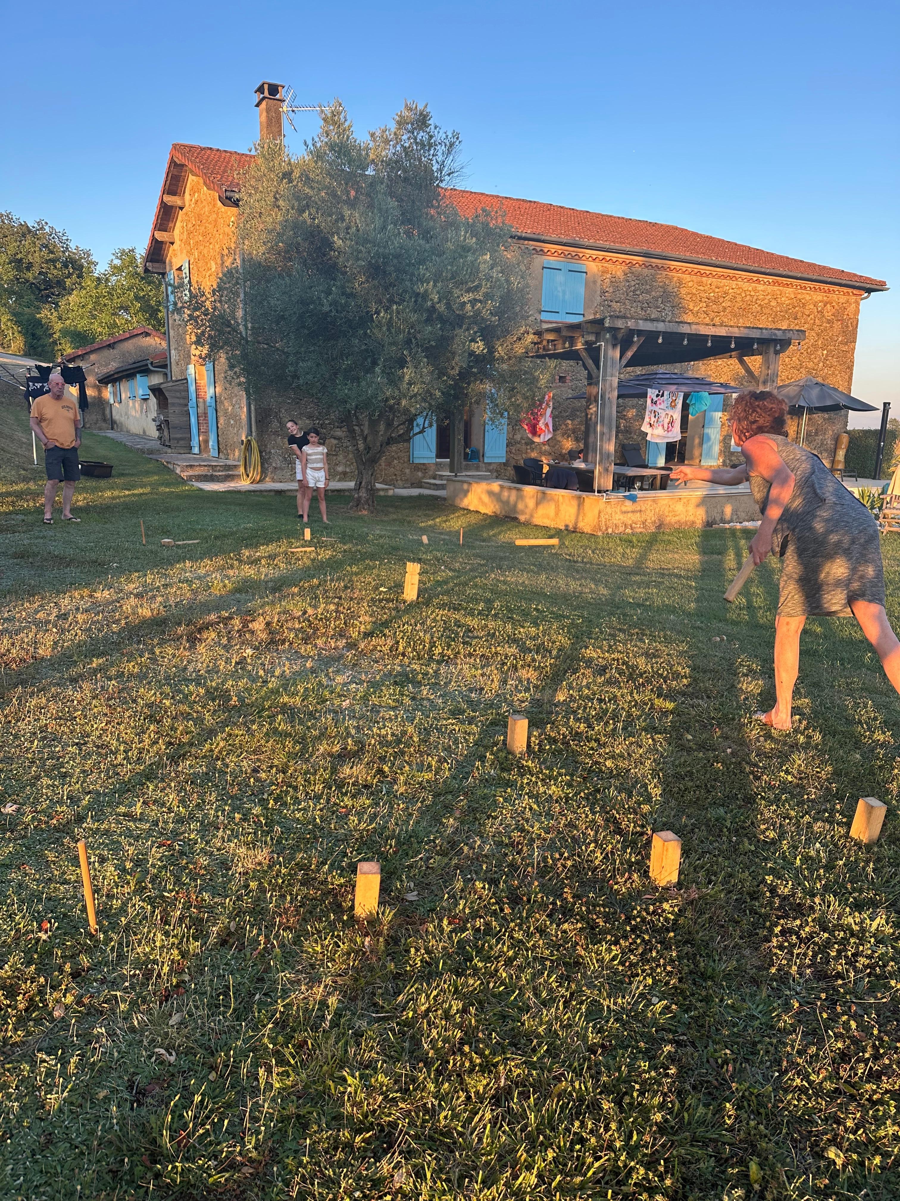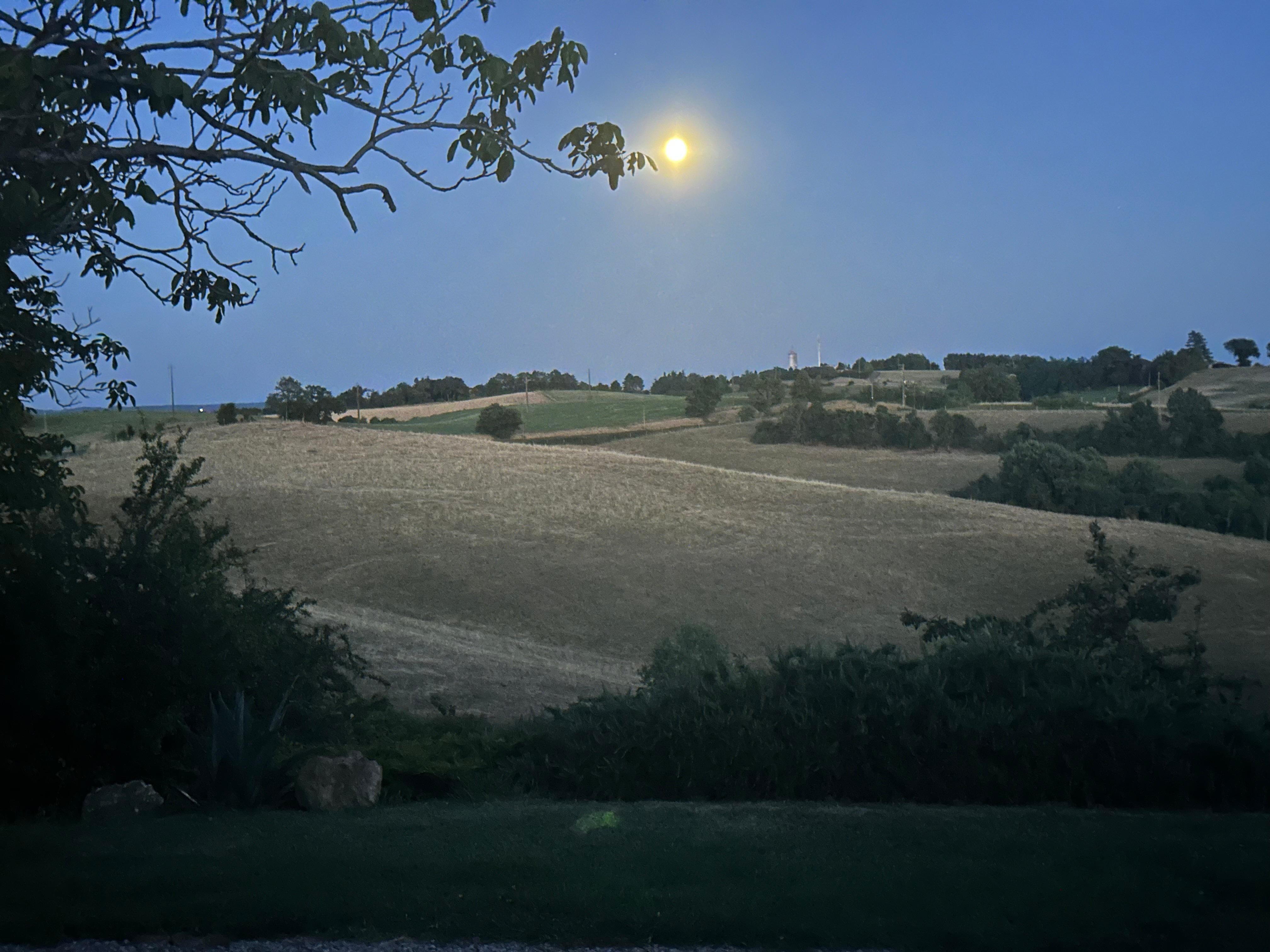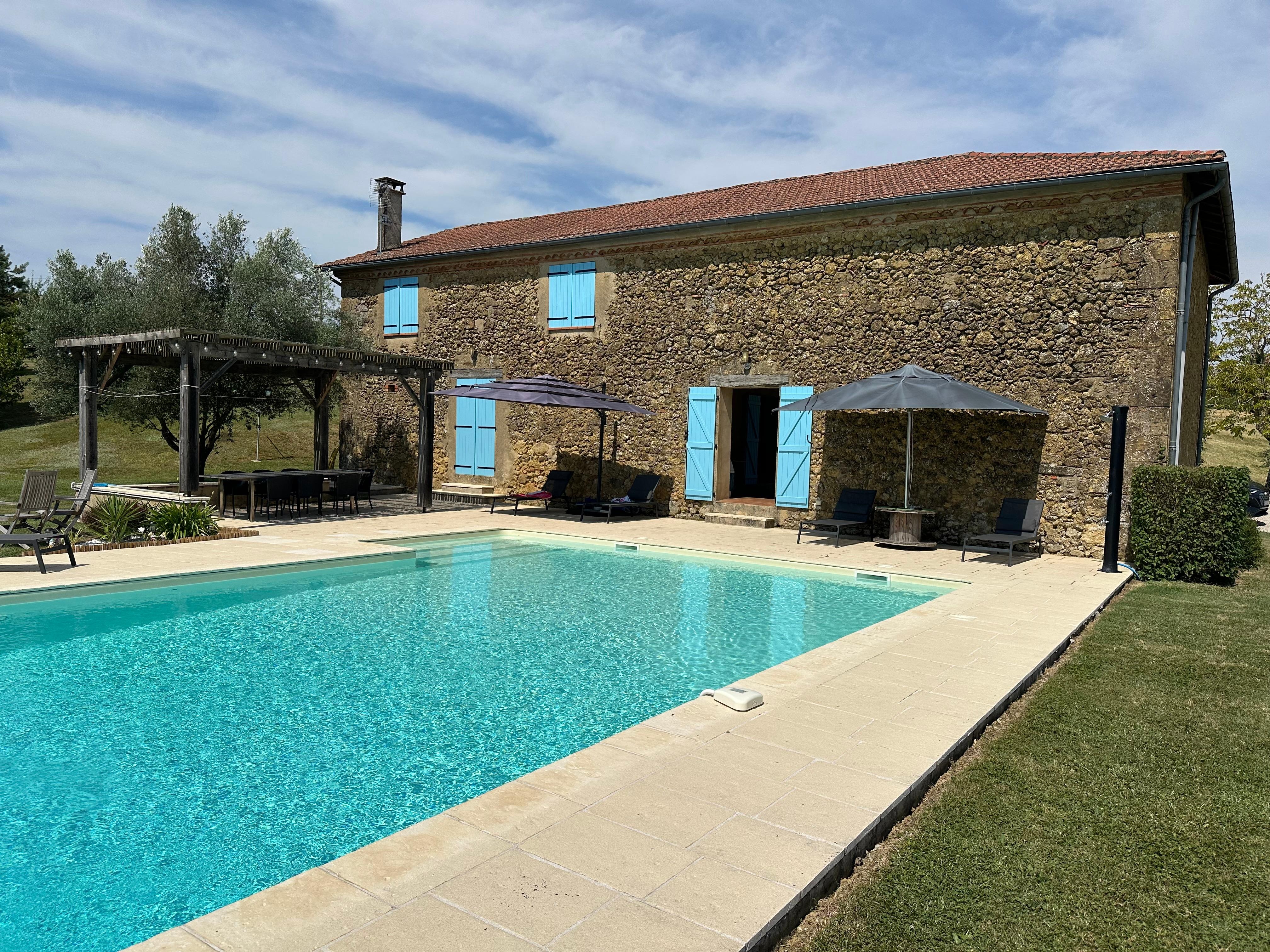 Labeau has a truly wonderful position. Sitting high on a hillside, it commands a view that is quite breath-taking. You can see for miles across rolling green wooded hills and valleys, against the stunning back drop of the snow capped Pyrénées. It is accessed by a small lane, only 2 minutes off the main road. Neighbours comprise only of the tiny medieval church of Vicnau, which was recently renovated and a handful of small houses positioned further down the lane. Labeau is nestled into the hillside with enough surrounding land to provide plenty of outside space for sitting and relaxing or for children to play and explore. The swimming pool is positioned just off the main living area so perfect for lounging by and safe for those with small children. Since the views are glorious, we chose to keep the grounds open to the countryside, but trees have been planted around the pool area to ensure privacy.