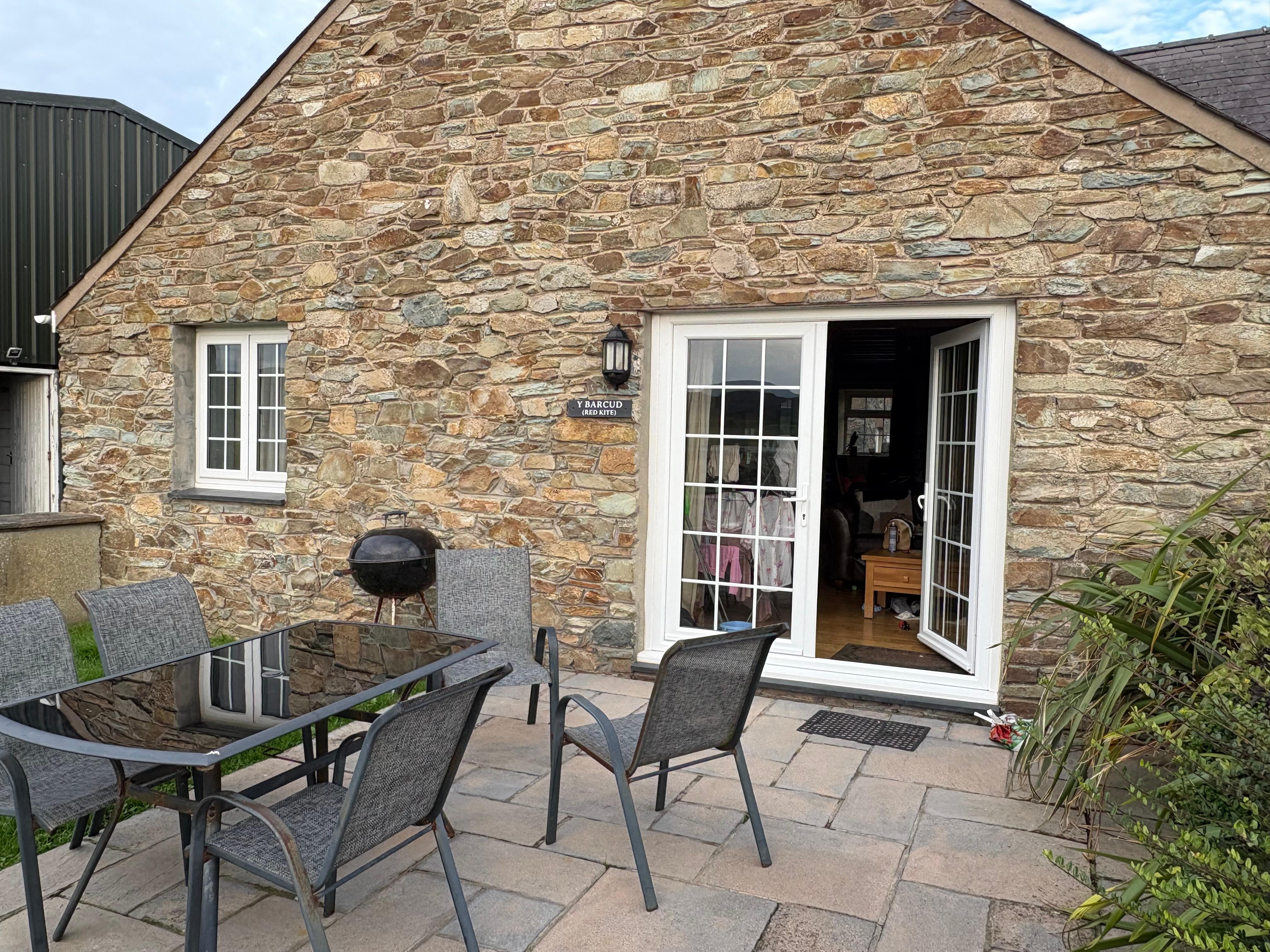 Y Barcud is a delightful end-terrace, stone-built barn conversion situated on the owners' livestock farm, 1.3 miles from the town and port of Holyhead. This cottage sleeps six people and is set mostly on the ground floor. It has a first floor mezzanine king-size double, a double and a twin, together with a bathroom and an open plan living area with a kitchen, dining area and sitting area. Outside there's off road parking for three cars in a shared courtyard and an enclosed garden with lawn, patio and furniture. Y Barcud is an ideal family base.