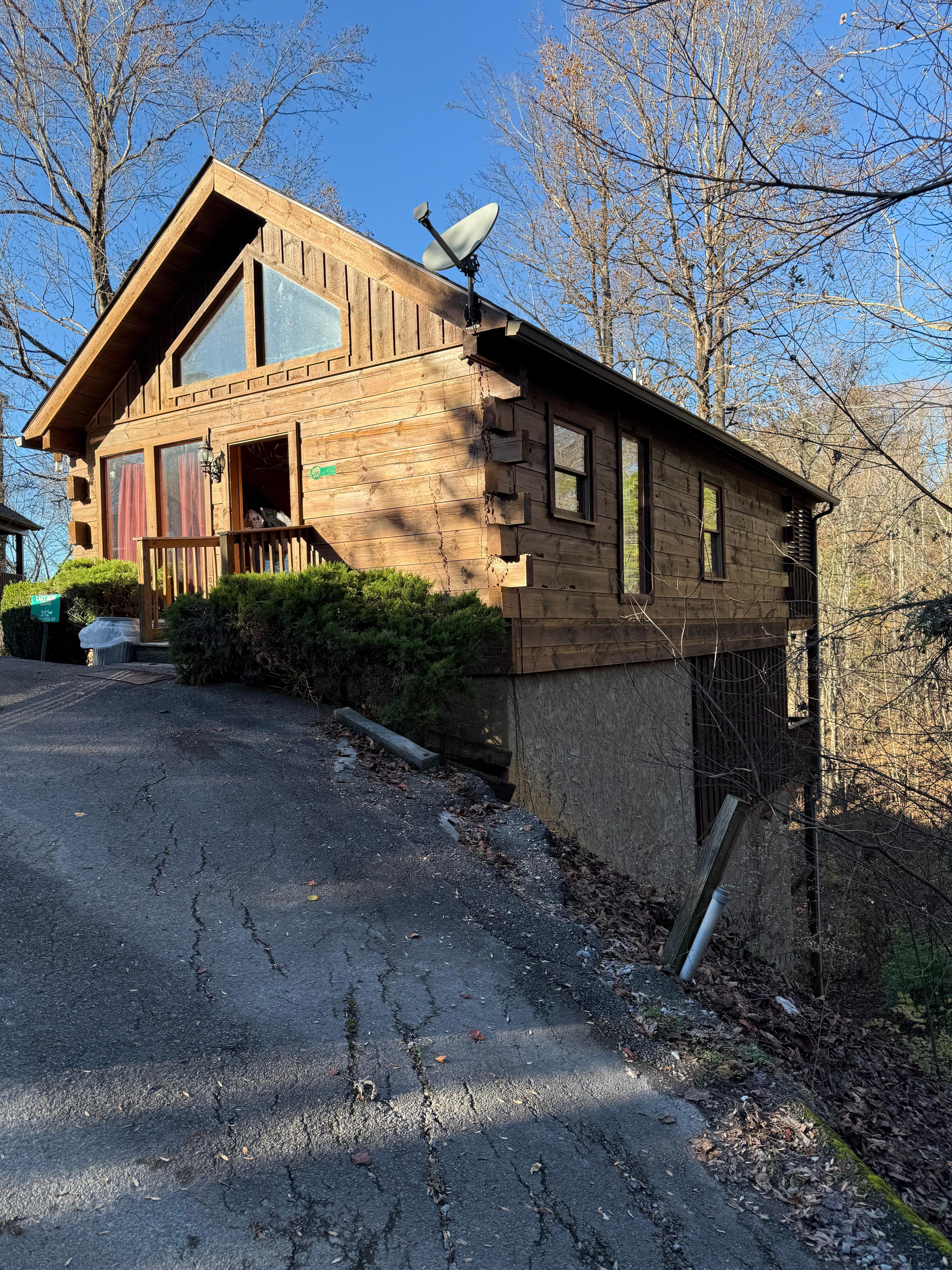 The cabin offers all the comforts you would expect in a Great Smoky Mountains vacation property. If you do not feel like going out to dinner, you can prepare meals in the fully equipped kitchen with all the modern appliances. The first floor features an open living area containing living room (with sleeper sofa and sleeper love seat), full kitchen, dining room, and electric fireplace. Also located on the main floor you will find the first bedroom with a king bed, full bath, relaxing Jacuzzi tub and flat screen TV. The main floor also boasts a large private deck with hot tub and porch swing. As you go downstairs you will find the game area with pool table, wooden checker gaming table, TV, and stack washer/dryer. The second bedroom is located downstairs and features a king bed, full bath, relaxing Jacuzzi tub and TV. A second deck is located downstairs off the bedroom and has two log rocking chairs and matching table. Definitely a wonderful place to enjoy your trip to East Tennessee and the Great Smoky Mountains.