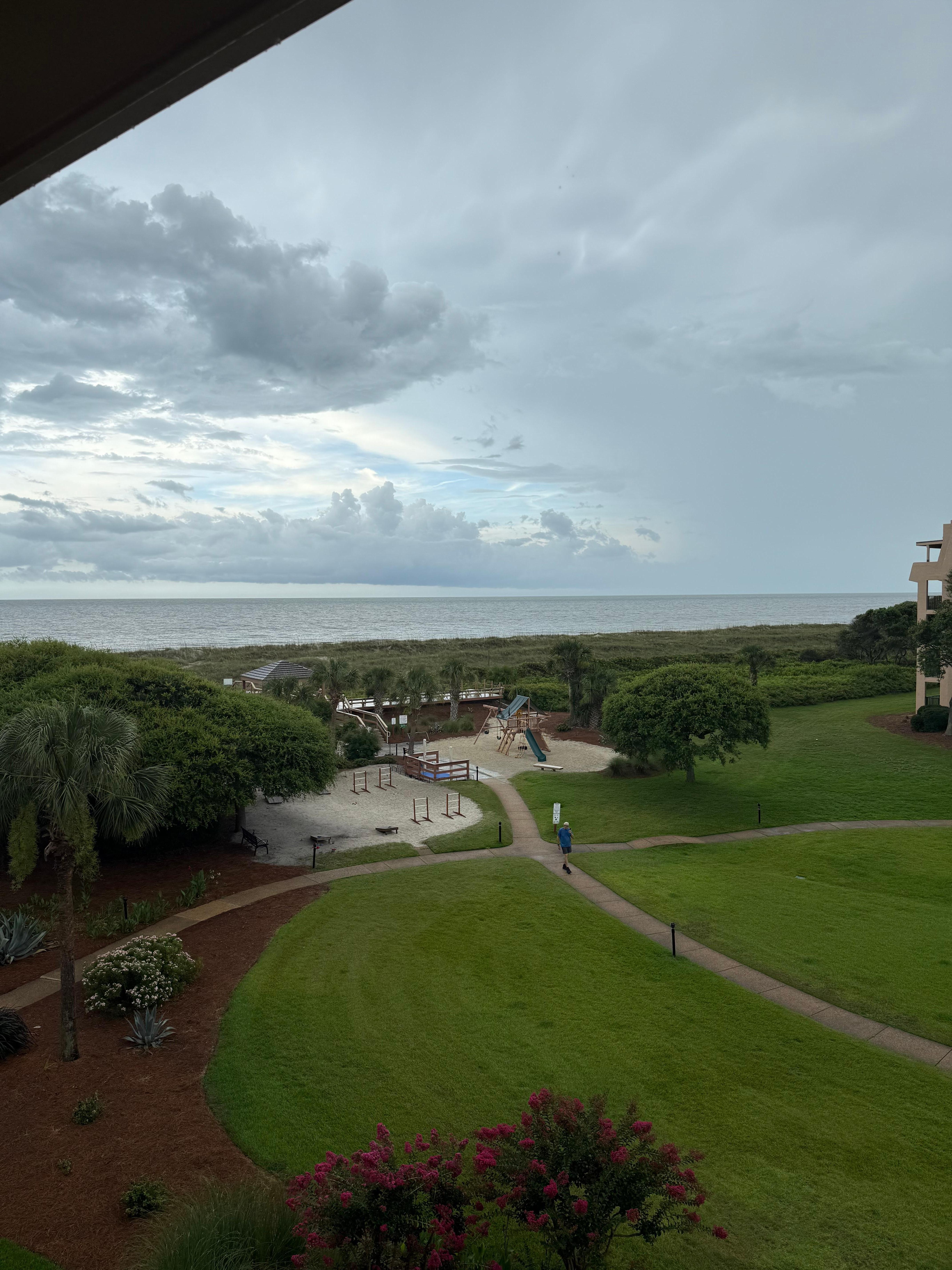 You can see, hear and smell the Atlantic Ocean from this fourth floor Island Club villa in an oceanfront building. From the balcony, you can watch the ocean as you sip your morning coffee and you can see panoramic views as you relax. The balcony overlooks the courtyard and looks to the ocean and is accessed from both the living room and the front bedroom.