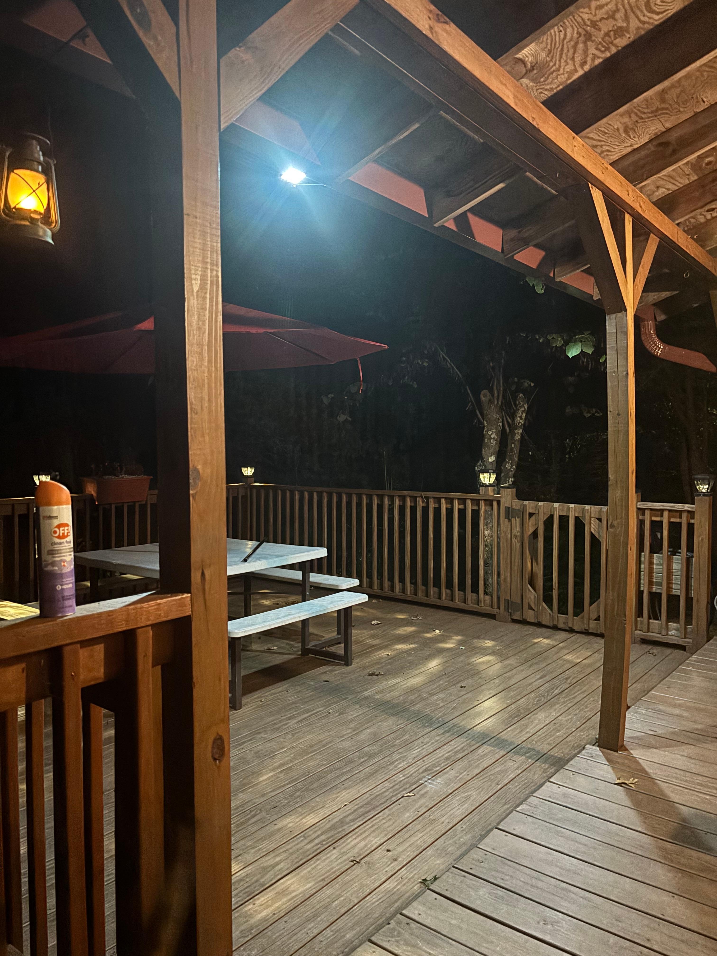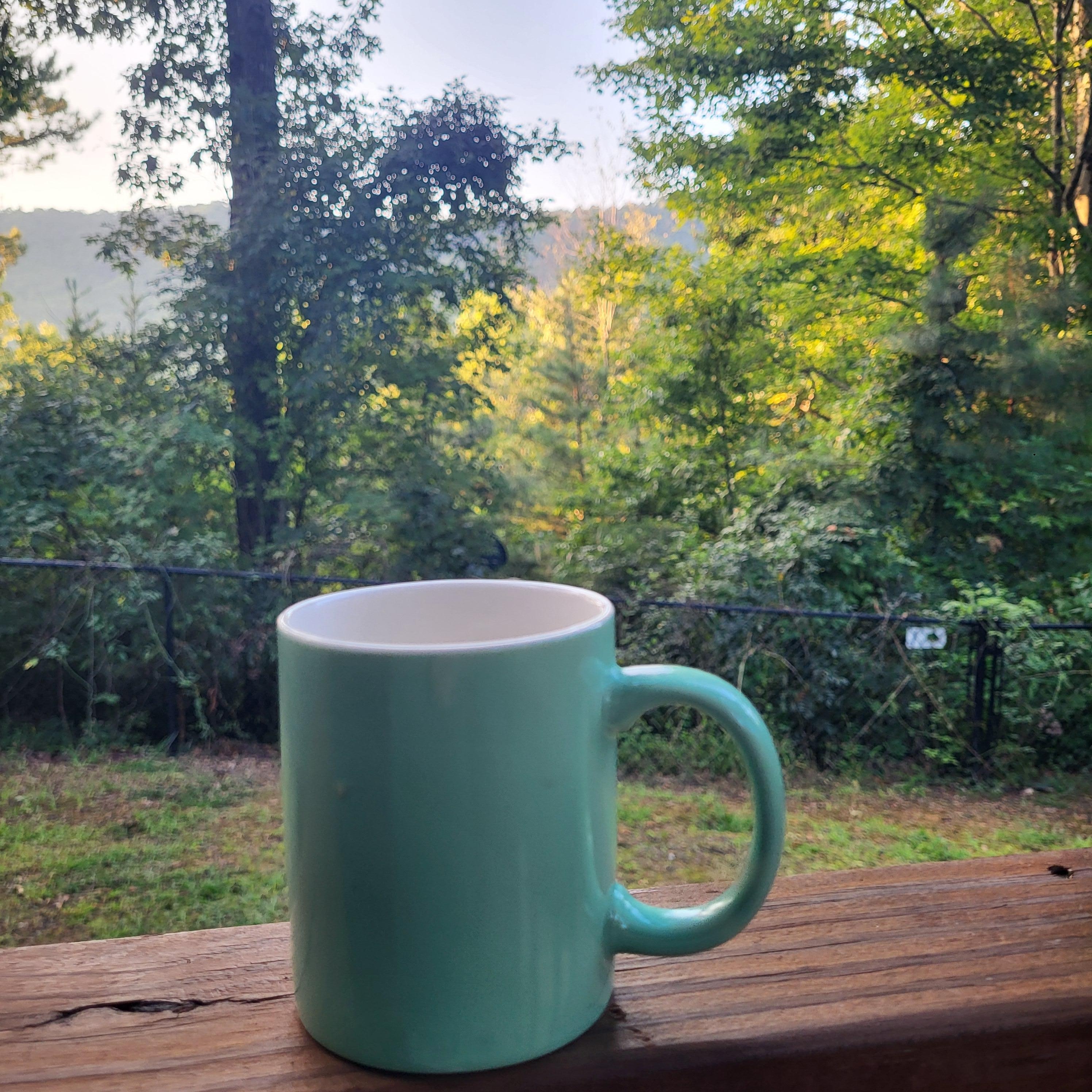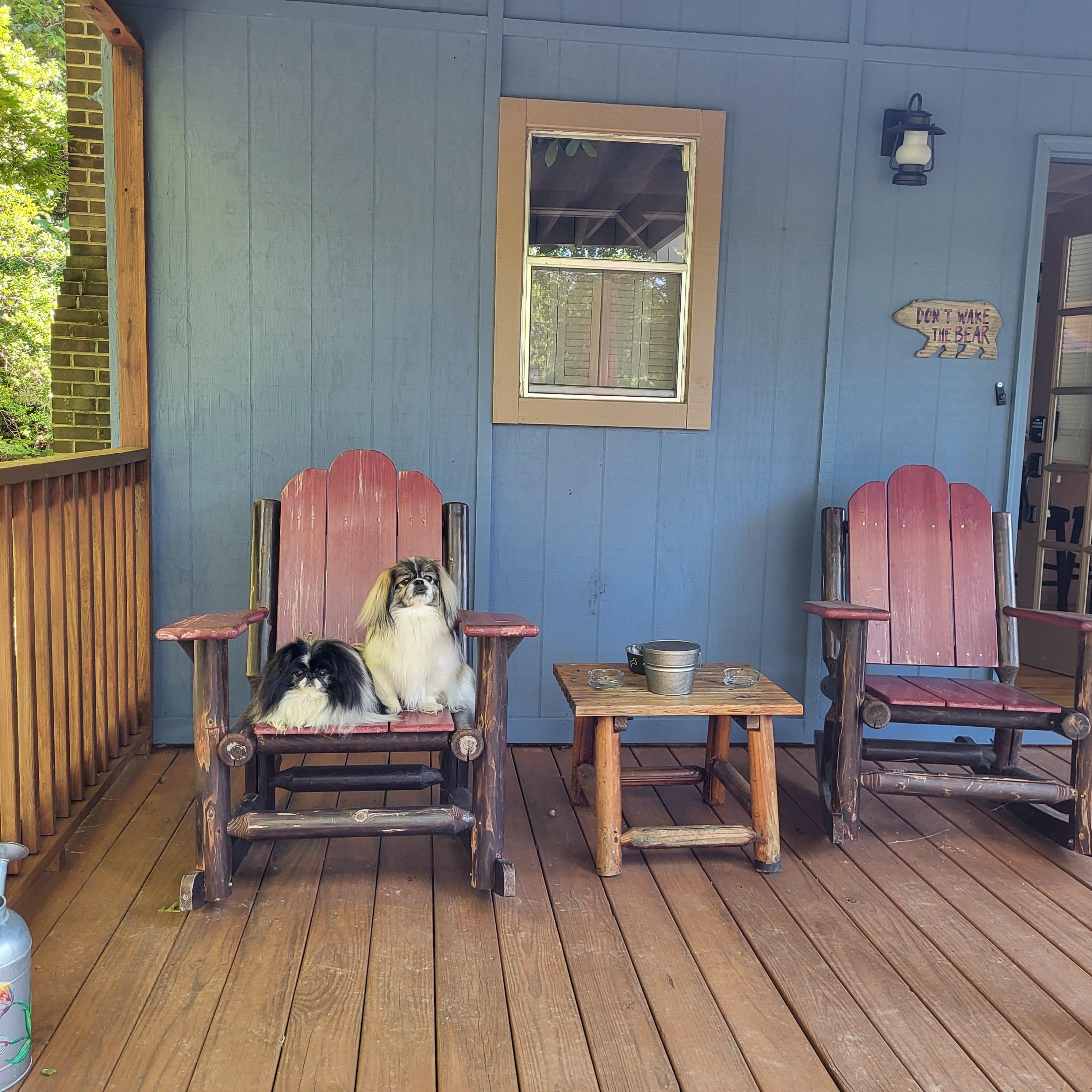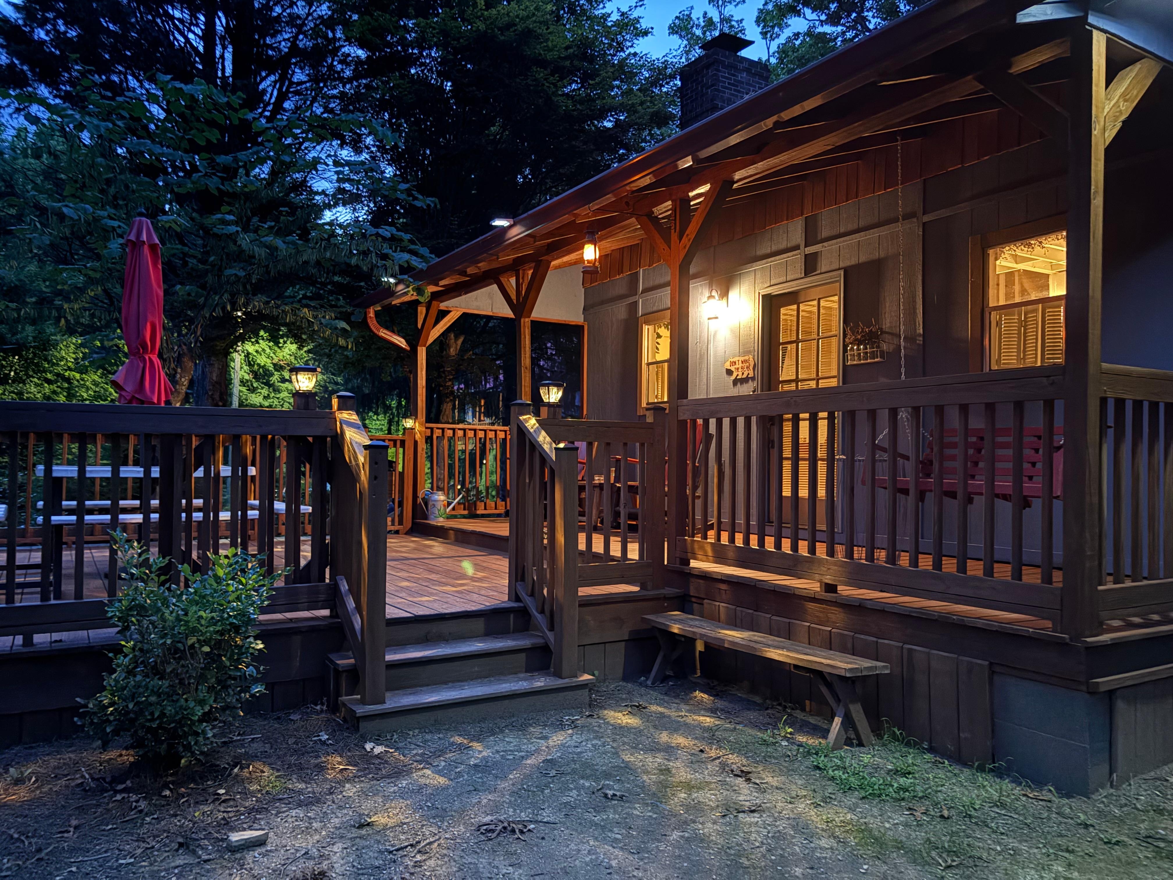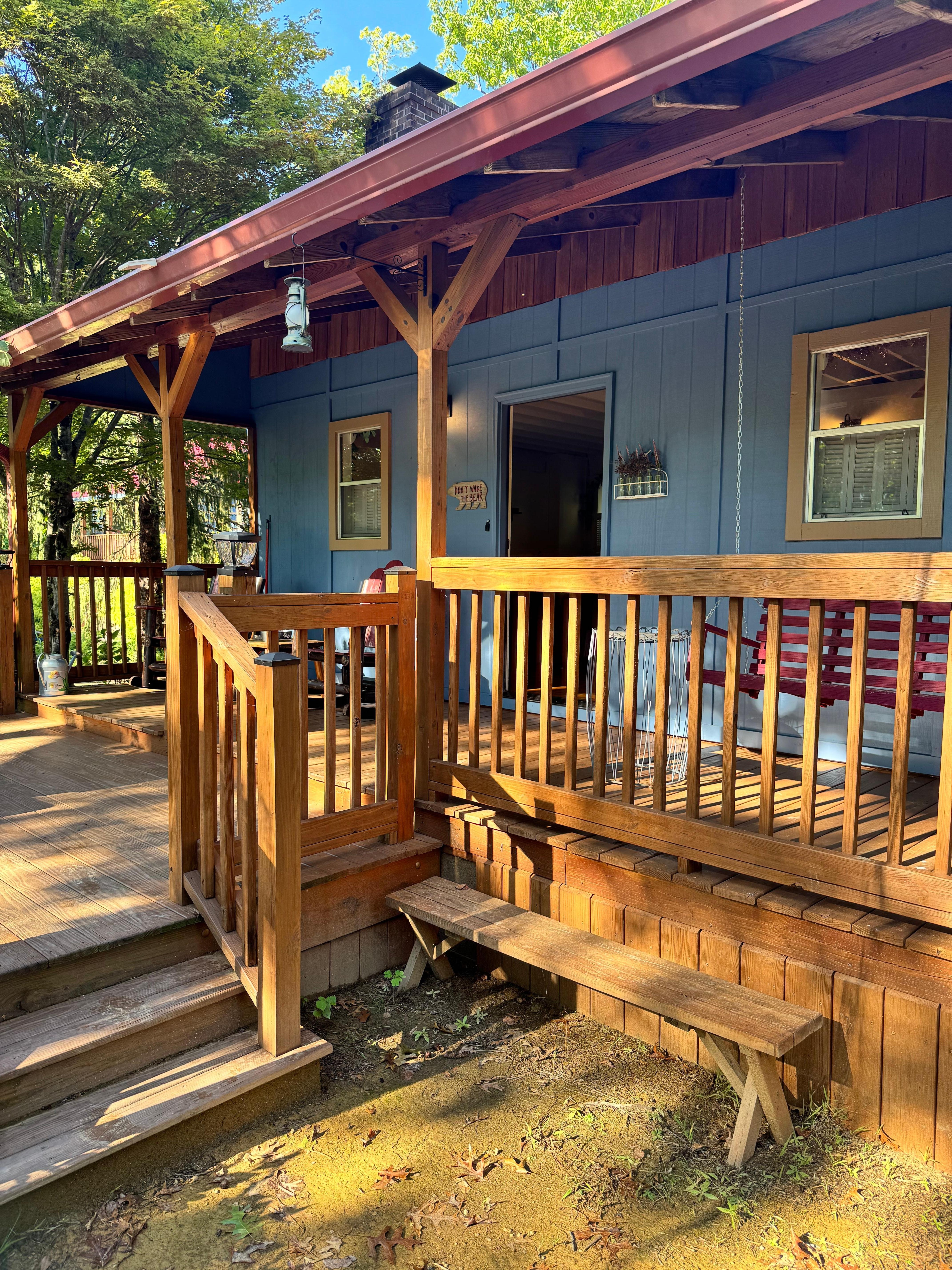 Front porch overlooks the ridge mountains to one side, the foothills to the other, and the other two cottages on the property. Spacious porch with swing and additional seating for those mornings and evenings when you want to simply relax and enjoy the view.