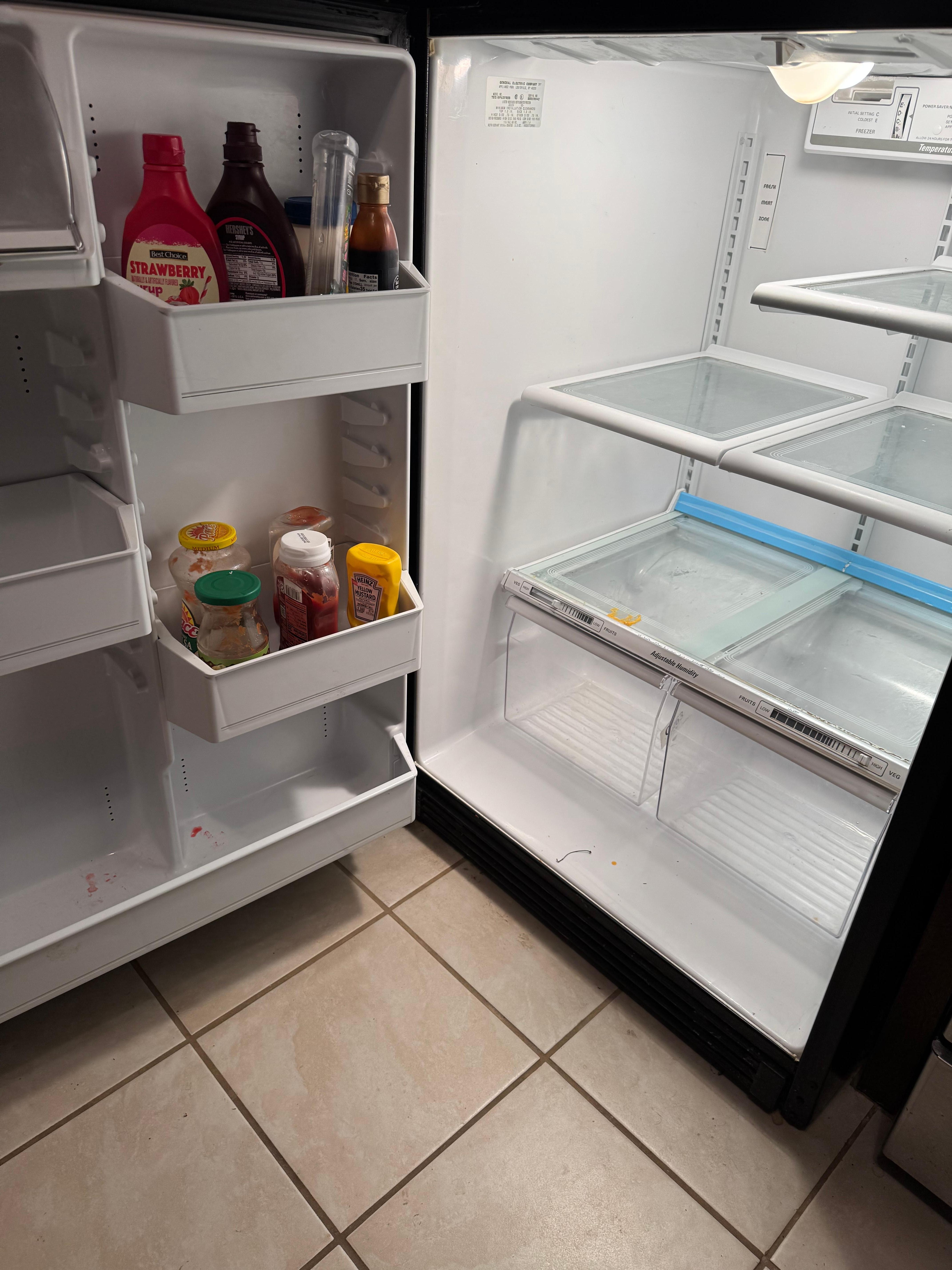 With no lights on, I got out with my flashlight and attempted to find the lock box. I didn't have instructions as to where it would be, so I was poking around for a bit (looking suspicious I'm sure). I headed up the stairs to the deck in order to try the doors up there. After traversing animal poop and one or two slightly broken steps, I tried the first door which appeared to be punched through. No lockbox. Tried the second door, which had a big deadbolt on it and still no lockbox. Finally, I found the lockbox on the third door and opened the door to be greeted with extremely hot, moldy smelling air. It was 93 degrees in the house because the AC had been left off. The second thing that greeted me were wasps that were flying around inside. There were some moths too, but the wasps really got to me. I turned on some lights and took note of the extremely gross, outdated carpet with holes burnt into it. Looked in the refrigerator to find some old spills and someone else's condiments from who knows when. The floorboard was warped and it was so hot and moldy smelling in there, we definitely did not feel comfortable sleeping there. After surveying the rest of the main floor, we decided that wasps, moldy air and 93 degrees was a little too much for us, so we turned around and headed back to The Cabins at Stockton Lake, where I woke my family from their sleep at 12:30 a.m. to let me in.