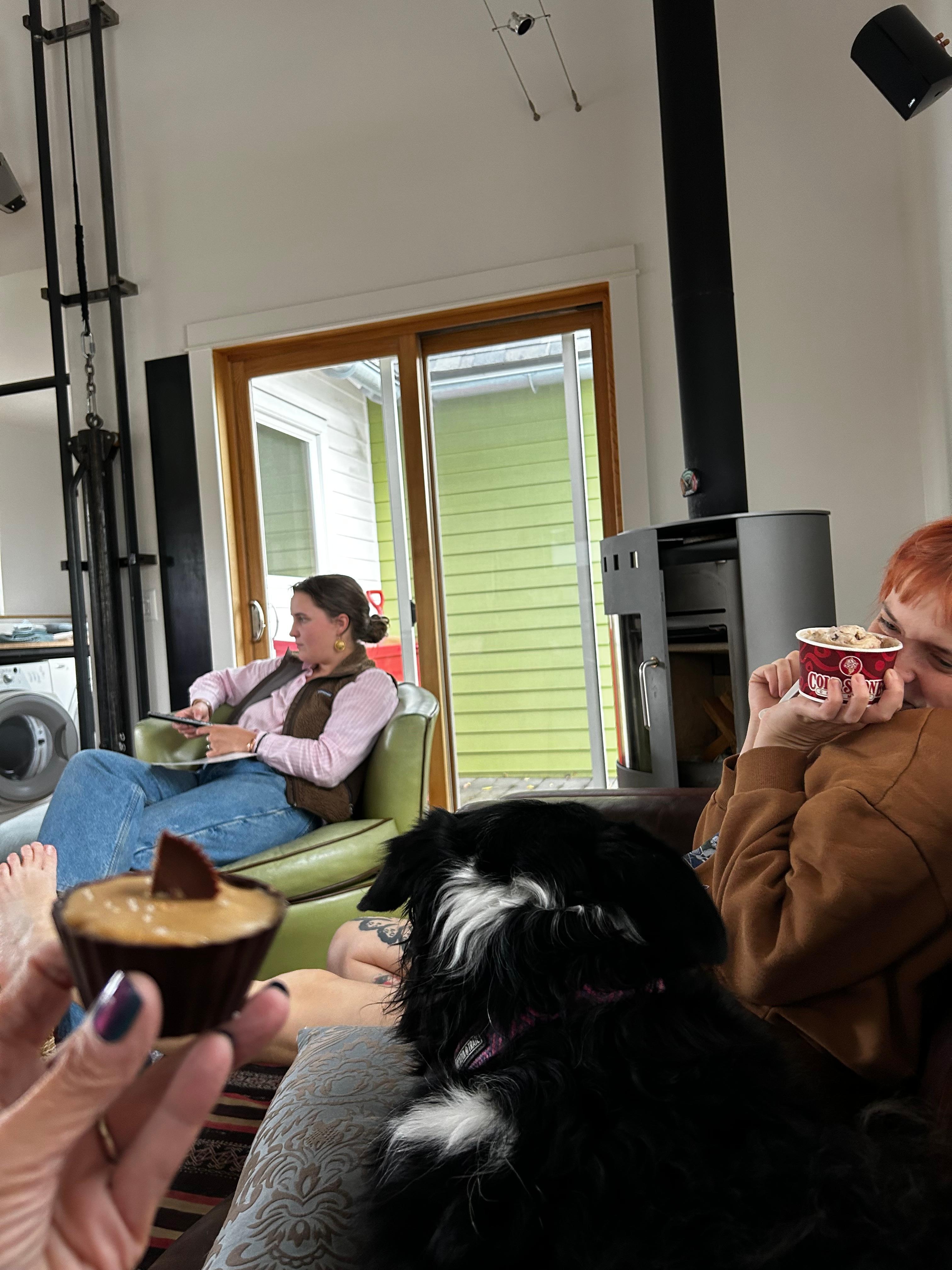 MAIN LIVING: on the 2nd floor -- lets you live downtown but still above the street and neighboring houses. Mountain views, especially during winter, when the leaves are off the deciduous trees.