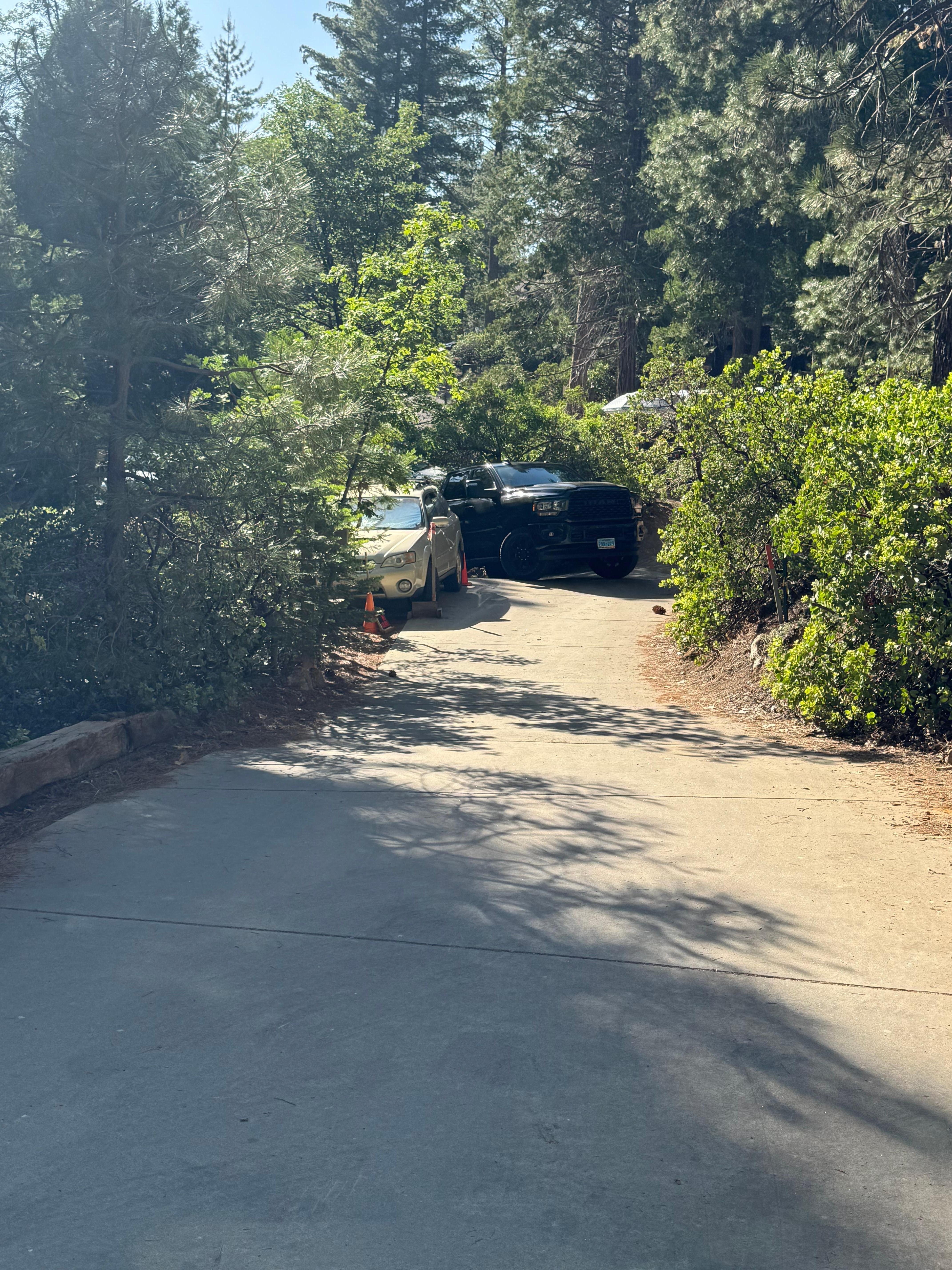 The driveway to this home has a short steep approach and is narrow. You must be able to back up when exiting but if you go slow it is quite doable.