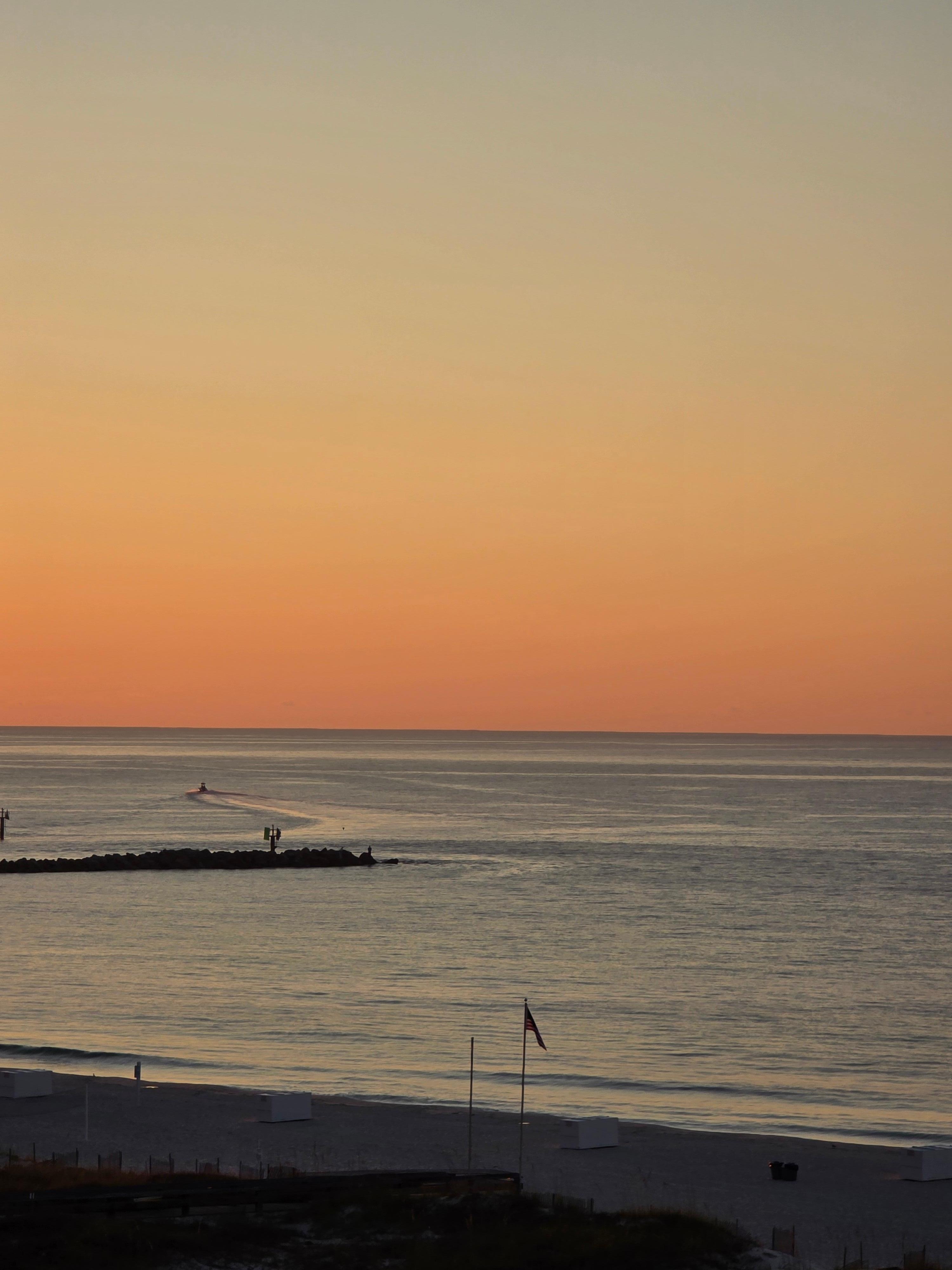 From the balcony, there is a great view of Perdido Pass. You can watch the boats going in and out from the pass or enjoy the sunrise or sunset along with the dolphins