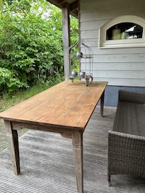 Viele viele Mängel: Mobiliar deutlich veraltet, Gasherd statt fünf Flammen nur auf zweien zu benutzen. Extrem !!! steile Treppe in die oberen Schlafzimmer. Gehbehindert geht garnicht. WC unten und Bad oben megaklein. Man sitzt im 90 Grad-Winkel auf dem Toilettentopf. Von Luxus kann nicht die Rede sein. Außer dass die Bäder ordentlich gefliest sind. In der Dusche oben ( die einzige im Hausteil) funktioniert die Handbrause nur mässig und das Wasser läuft nicht in der Dusche ab, sondern verteilt sich schön im Bad und dem davor liegenden Holzboden . Katastrophe!! Und das Haus ist zwar einigermaßen eingezäunt doch was nicht im Vorfelde / Objektbeschreibung kommuniziert wird, ist die Tatsache dass im hinteren Hausteil zwei weitere Appartements vermietet sind und im hinteren Gartenteil noch ein weiteres Ferienhaus sich befindet. Ganz schlecht für Hundehalter. Insgesamt eine große Herausforderung an uns als Urlauber. Fazit: Kurzurlaub ohne nennenswerte Erholungsmöglichkeiten. Das ist eigentlich keiner Bewertung mehr würdig, sondern eher eine Warnung.