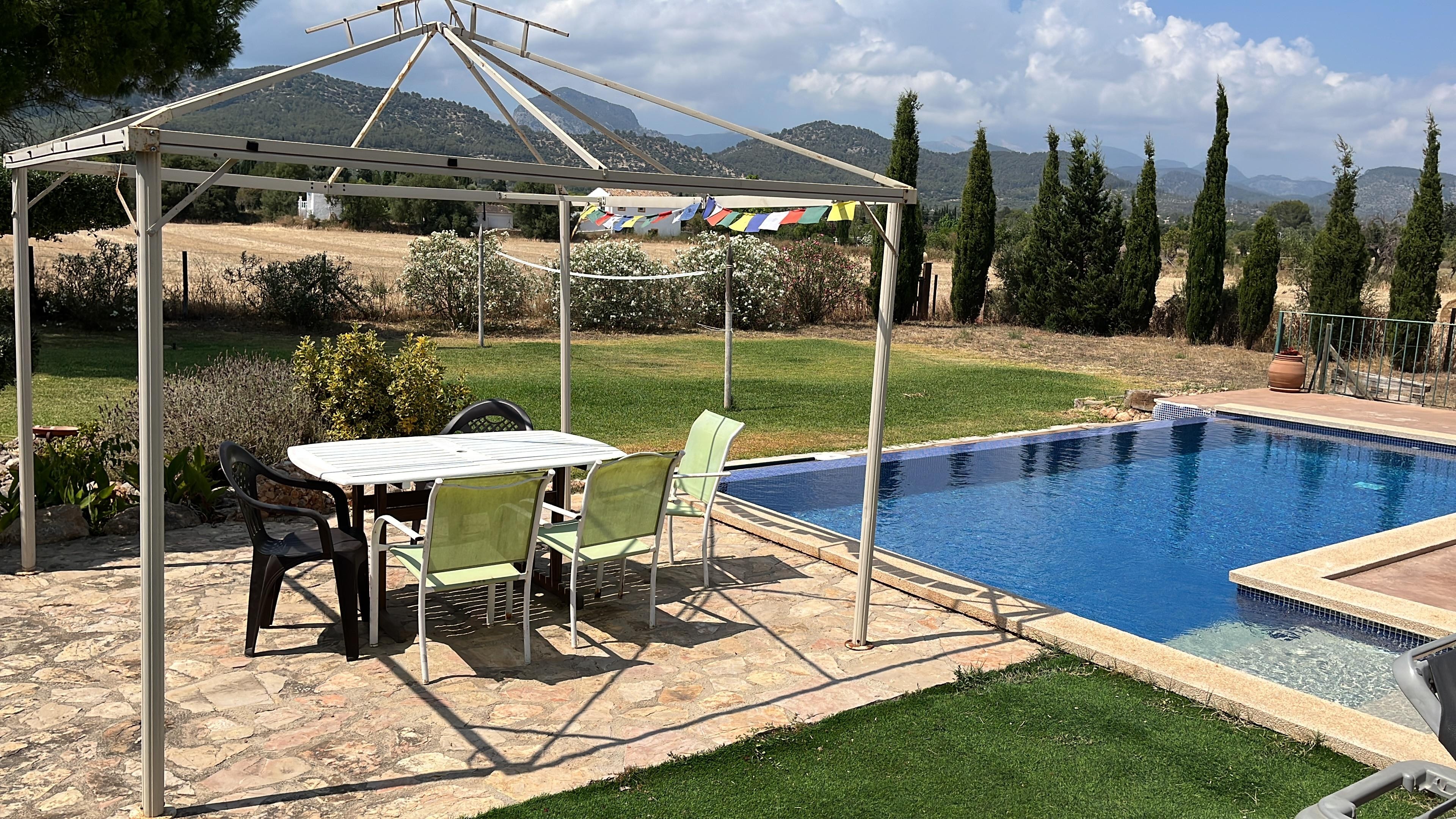 Welcome to Torre seca a 70000-meter estate with views of the Serra de Tramuntana and a lot of tranquility and privacy. Starry nights and days in the sun of Mallorca. House with three rooms with air conditioning, beautiful infinity pool, with wifi inside and outside the house. private parking Twenty minutes from the capital Palma and ideal starting point for any place in Mallorca, located in Binissalem, a town with a lot of wine tradition, surrounded by wineries throughout the area, as well as having a variety of bars and restaurants in the same town and 1.5 km from the farm, binissalem also has a train station. An inspiring place.