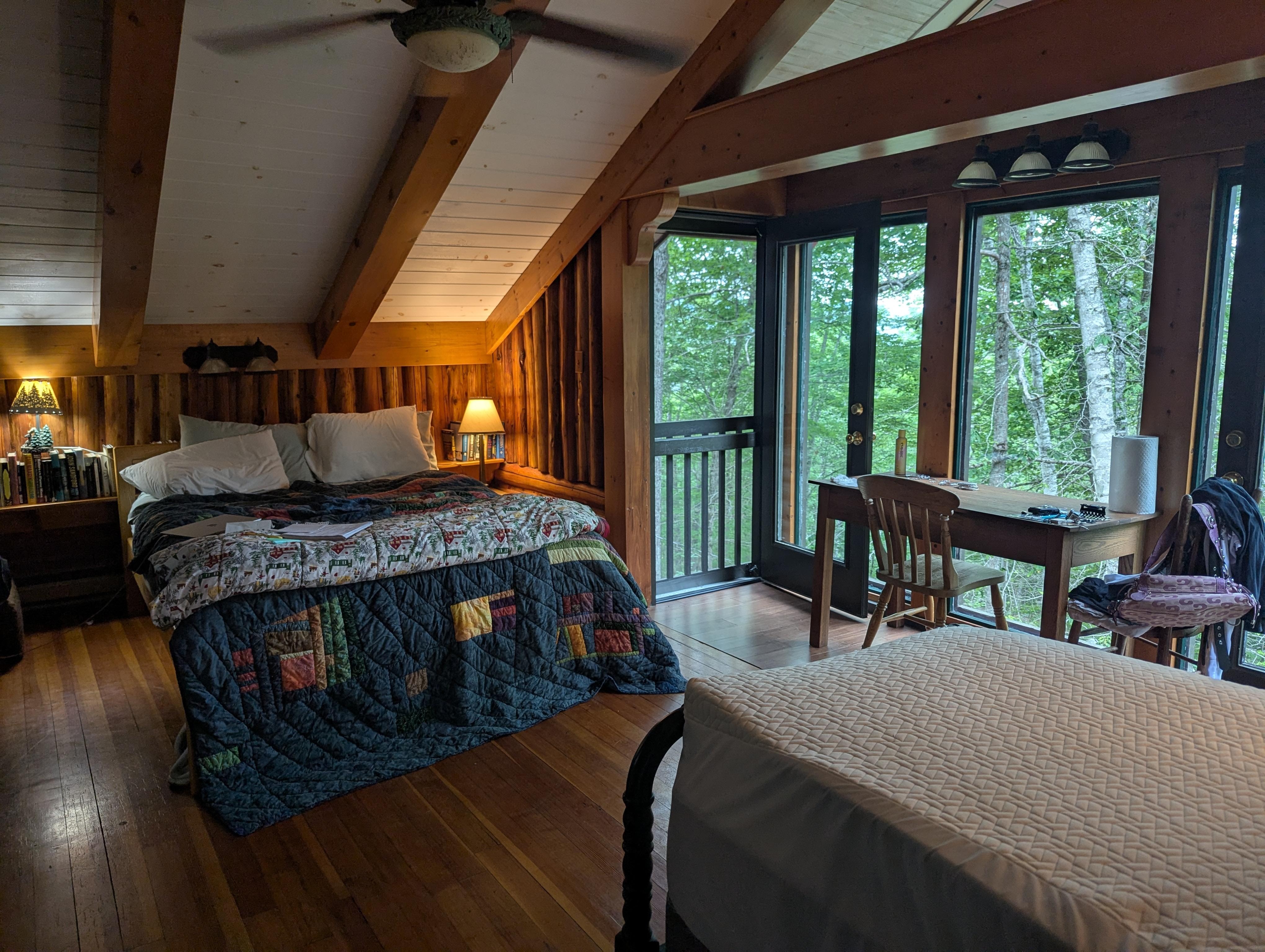 Built by Finnish carpenters over a 100 years ago, the cabin is located at the top of a hill that looks down on Phillips Lake. The cabin is the perfect place to relax while roasting marshmallows, watching the stars and listen to the loons cry.