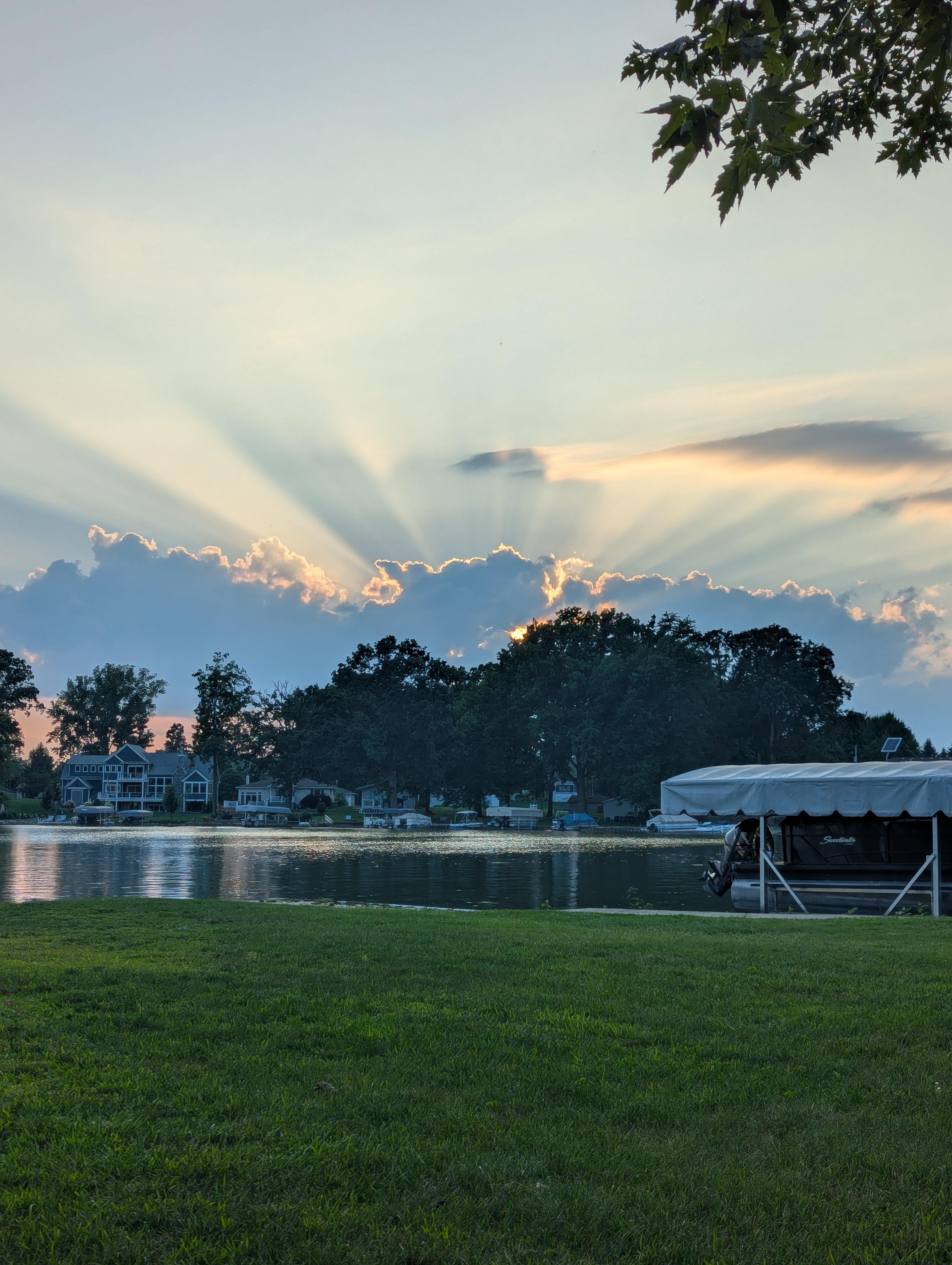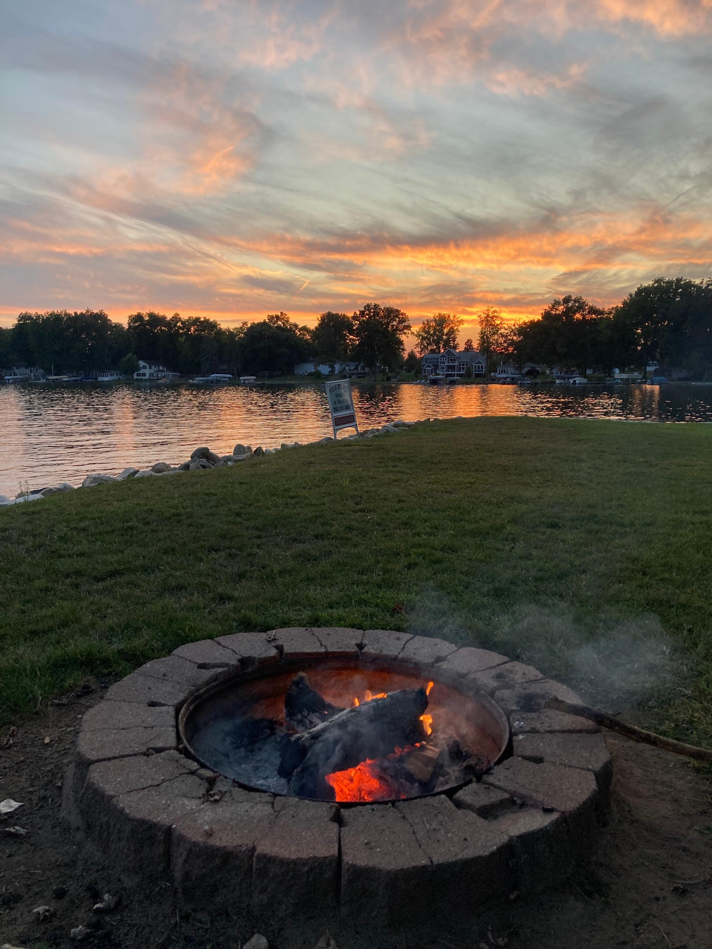 When it’s time for dinner, cook today’s catch on the Weber charcoal grill. After dinner, get the fire-pit fired up and watch the skiers get one more run in on the glassy water before the beautiful sunset over the lake.